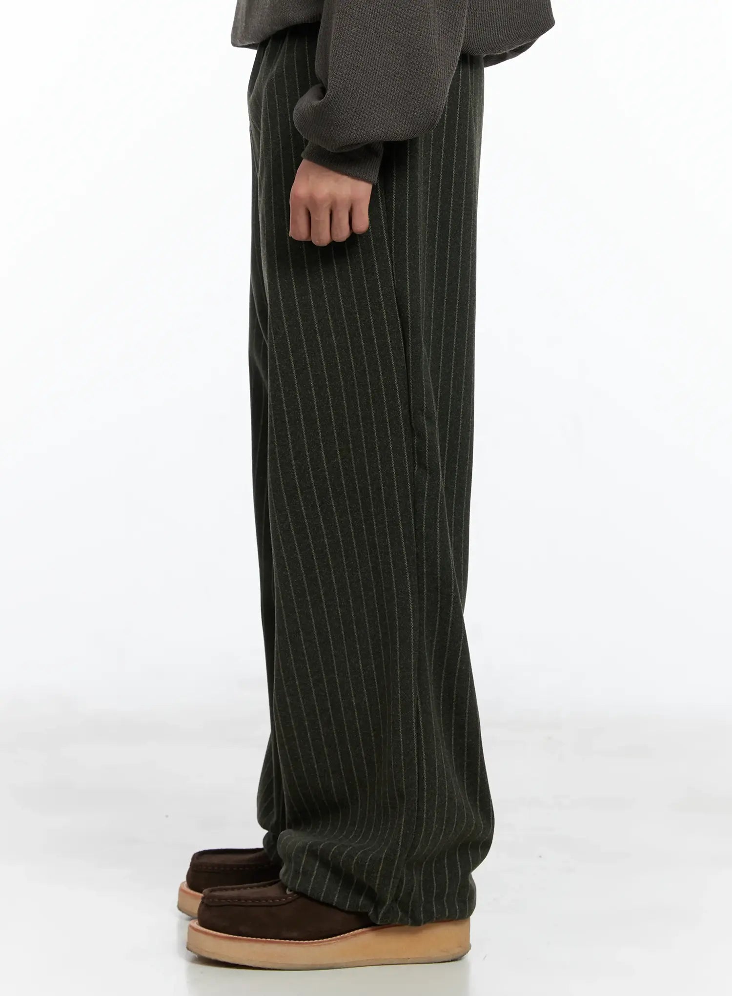 Men's Stripe Wide Leg Pants (Dark Green) IN518