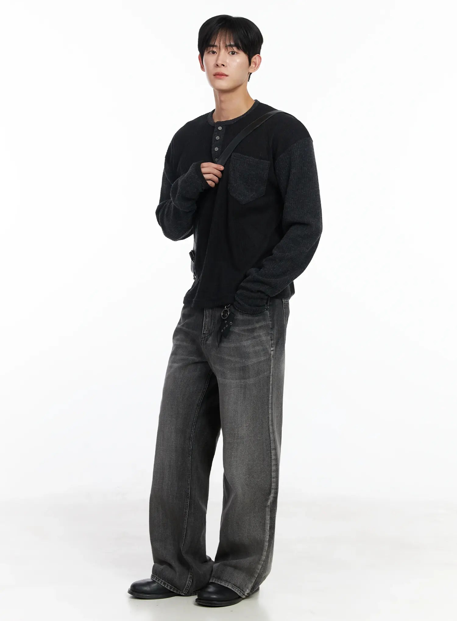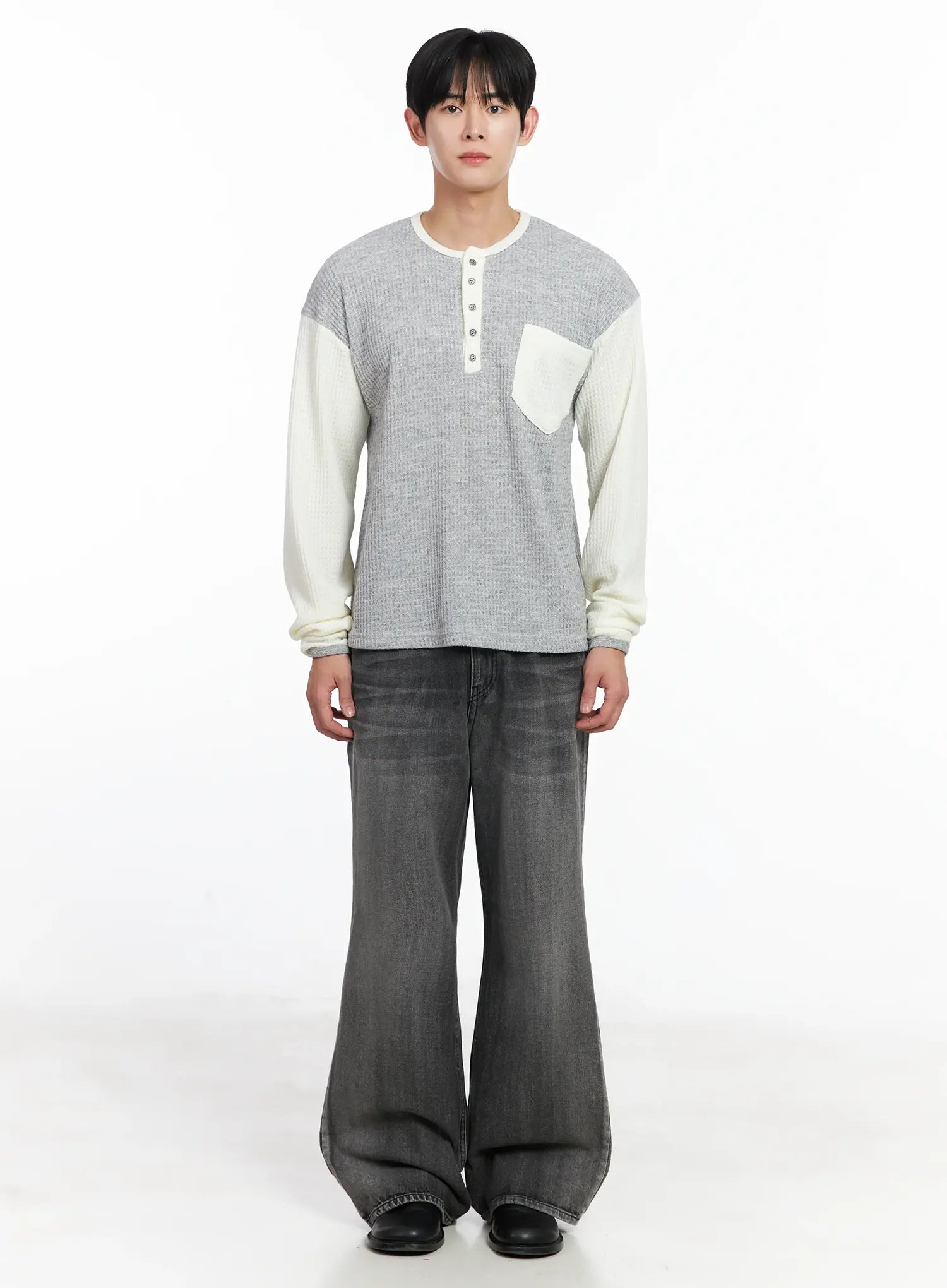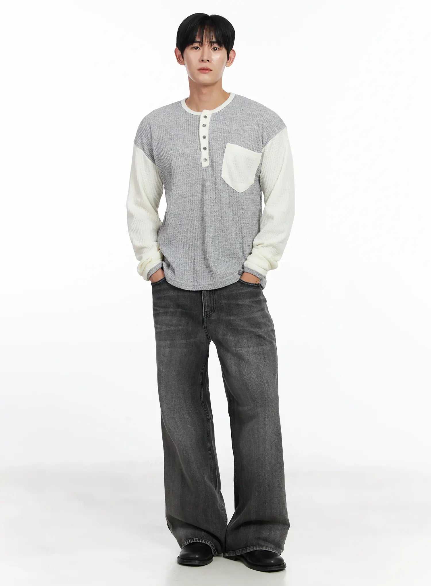 Men's Two-Toned Wool Knit Long-Sleeve Top IJ521