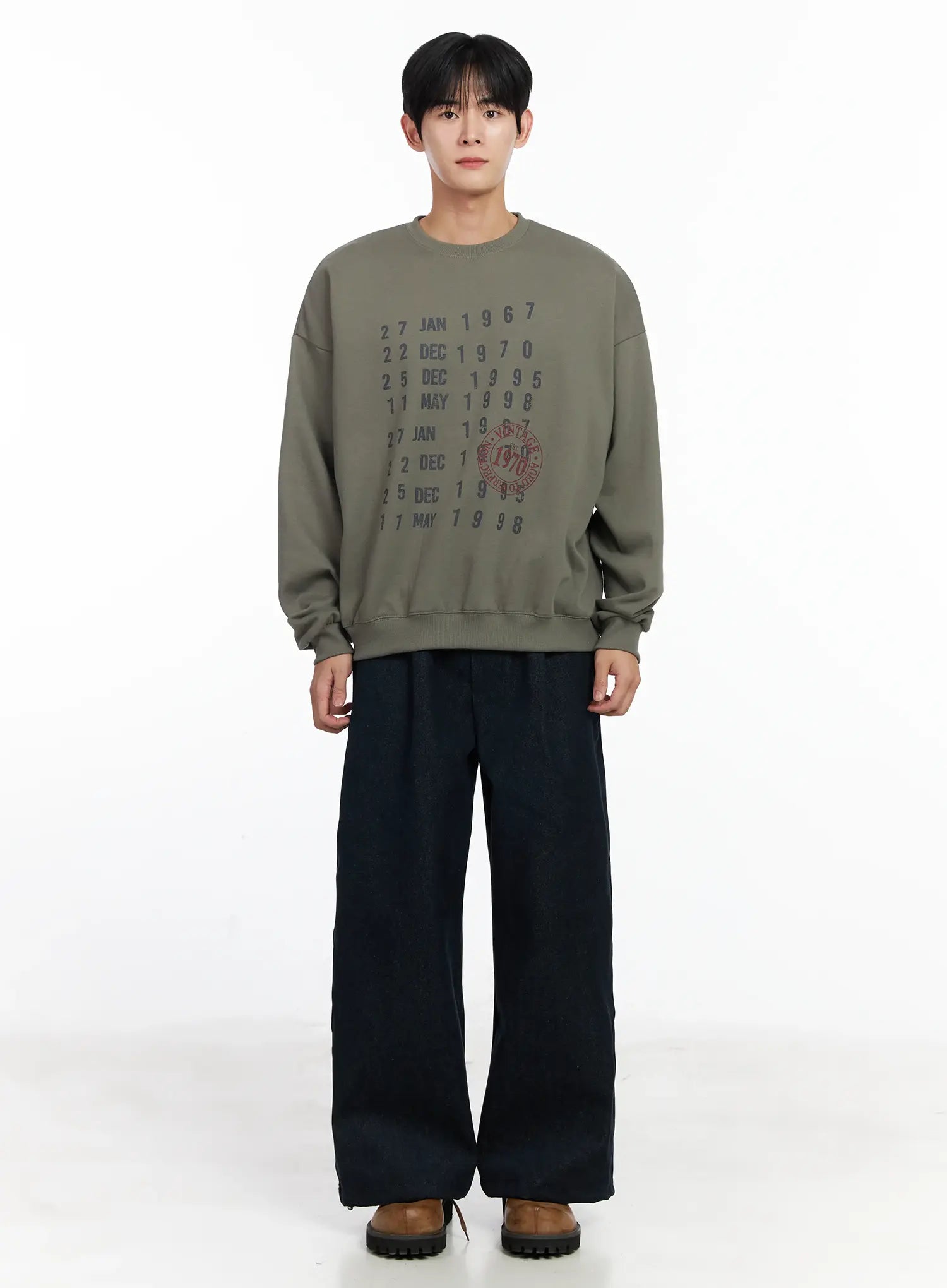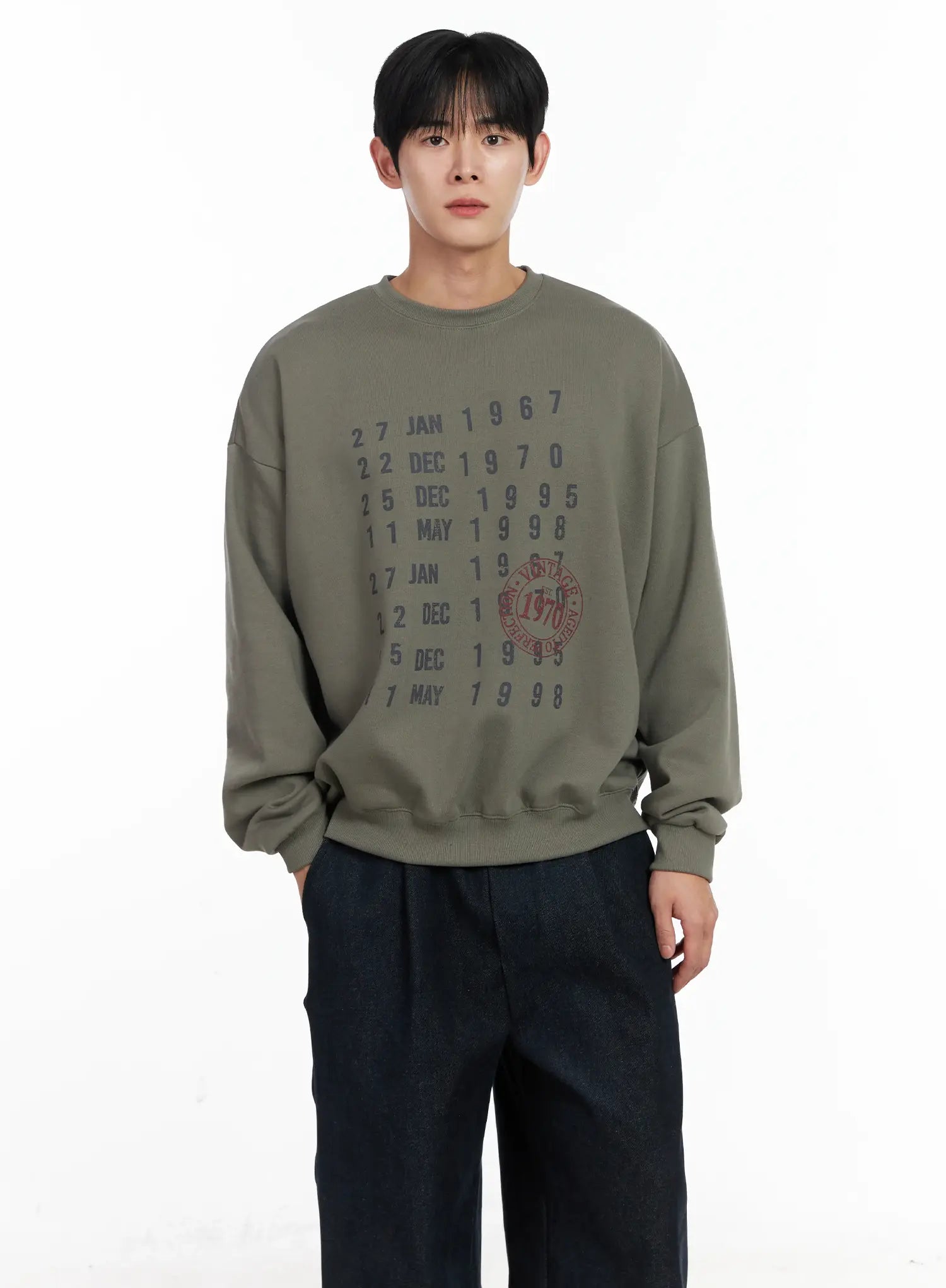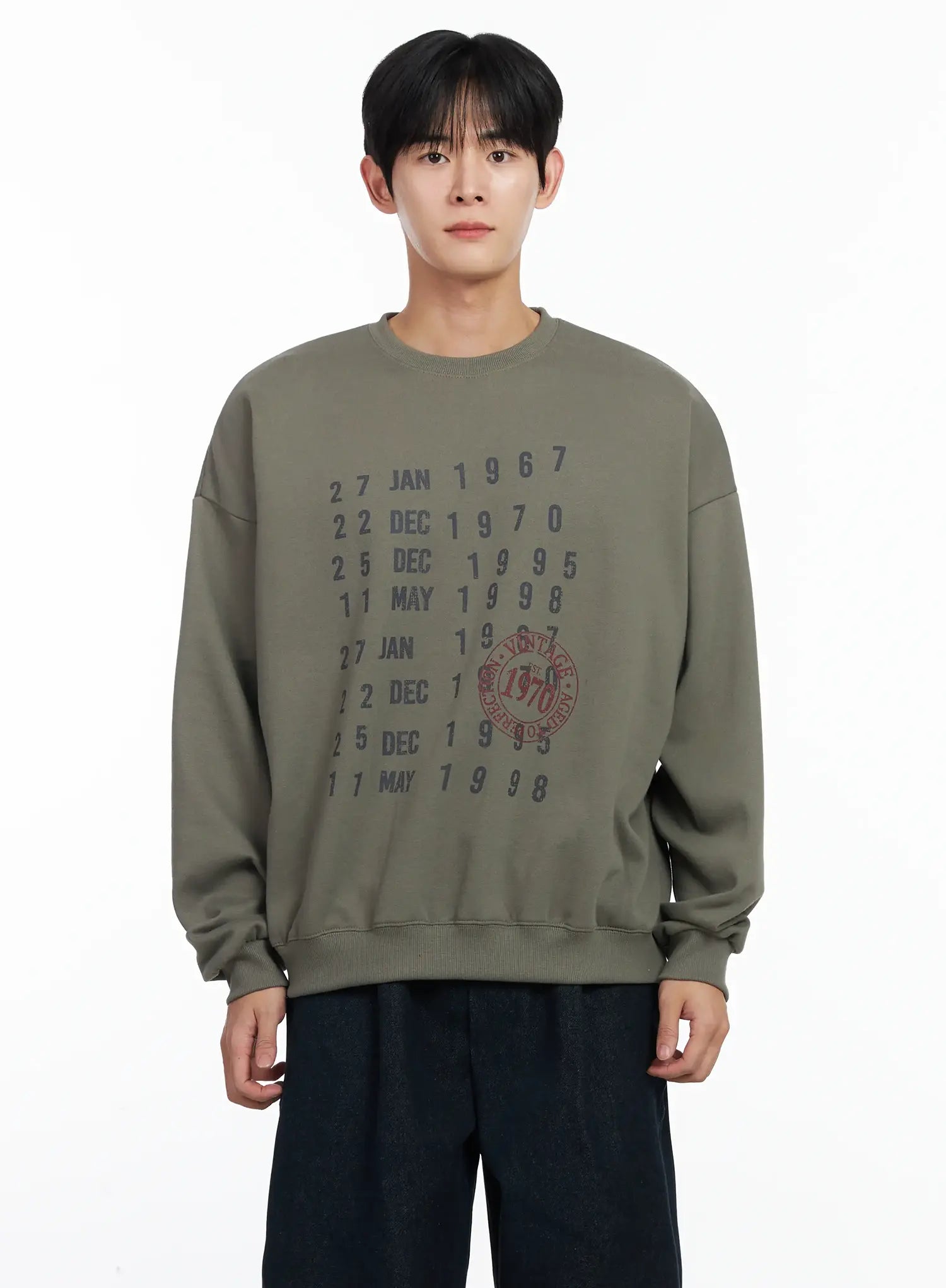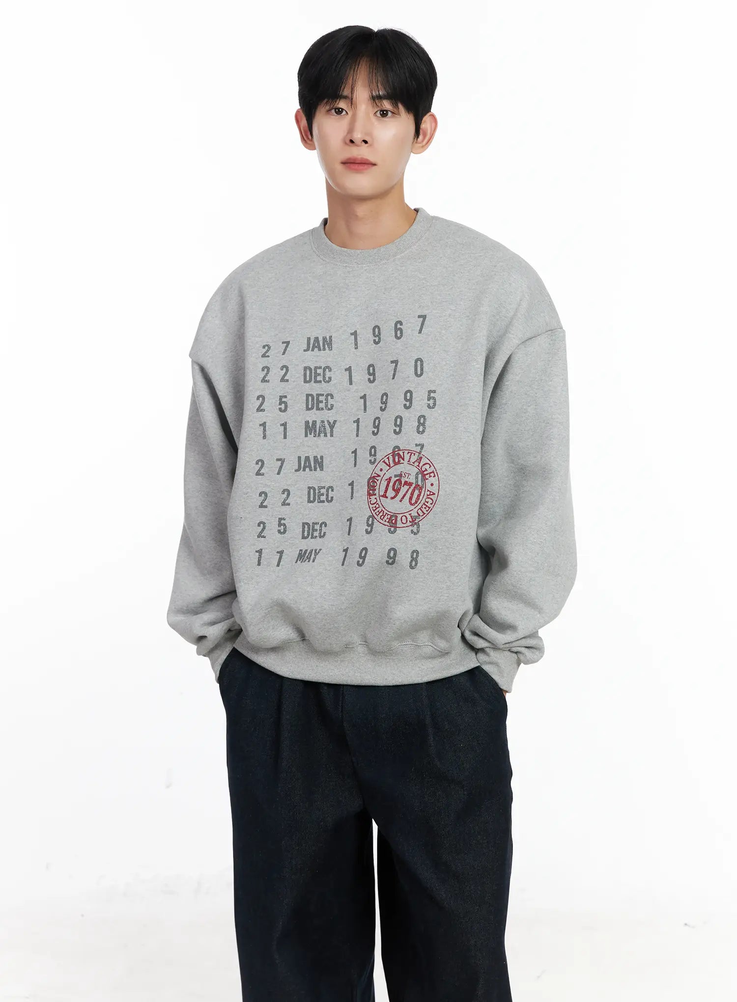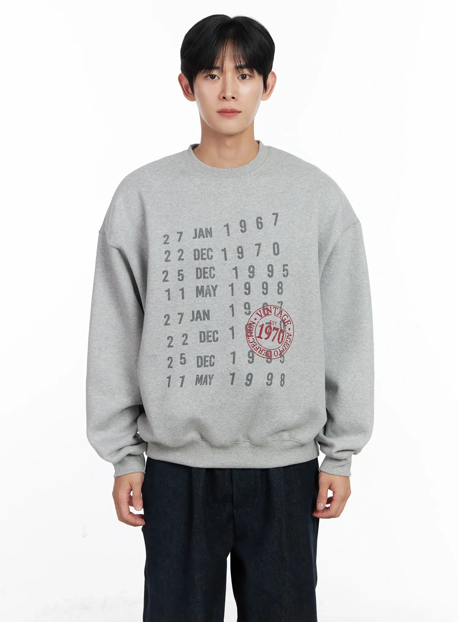 Men's Vintage Date Print Sweatshirt IJ521
