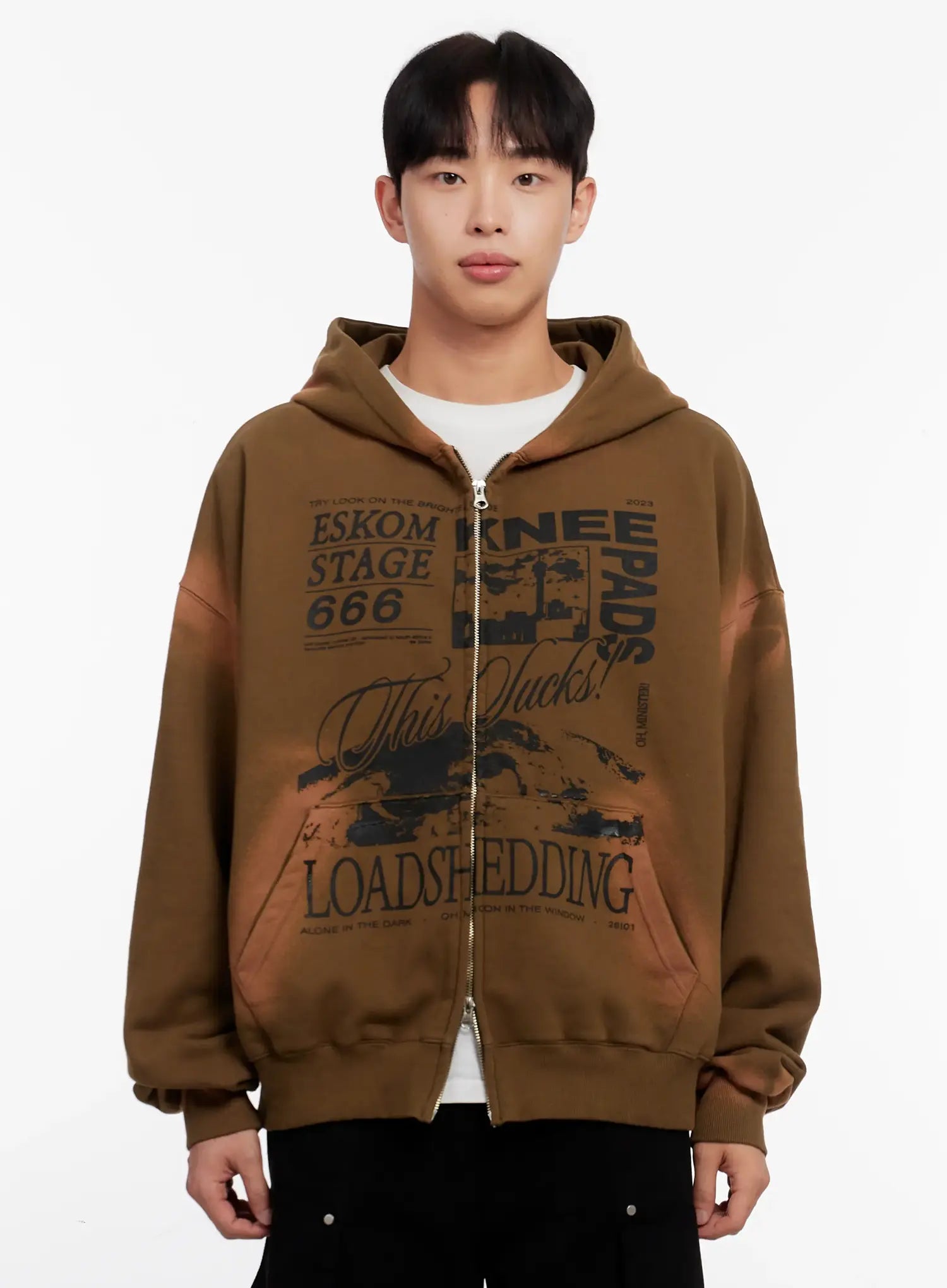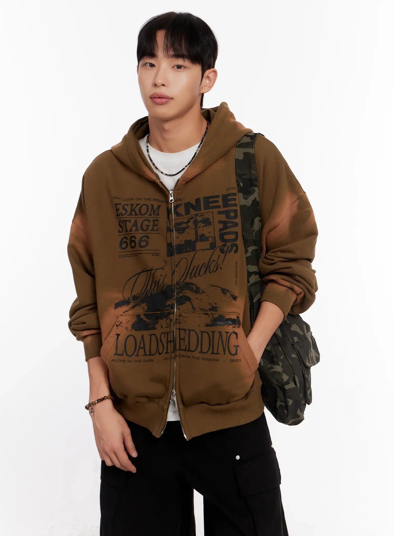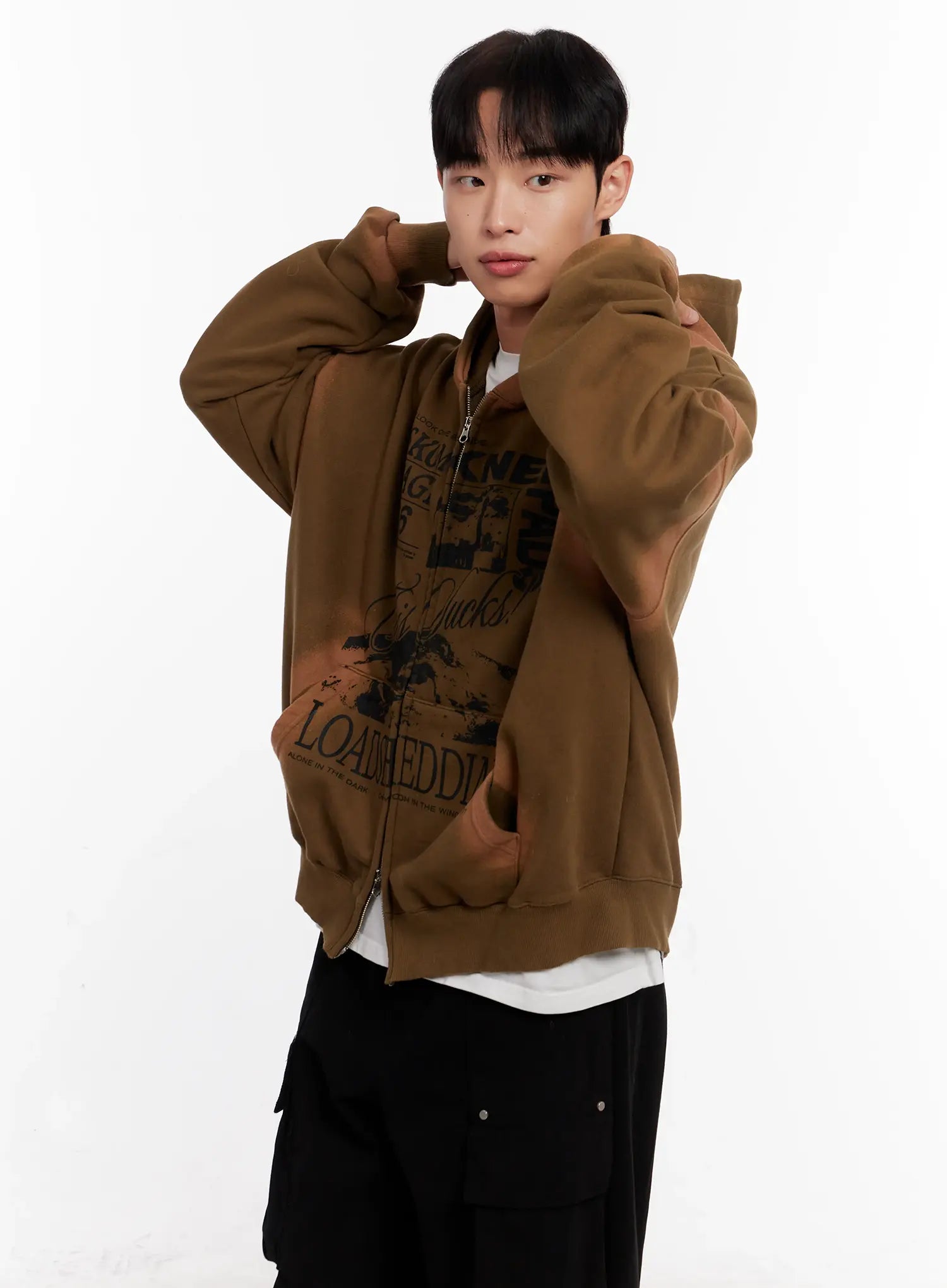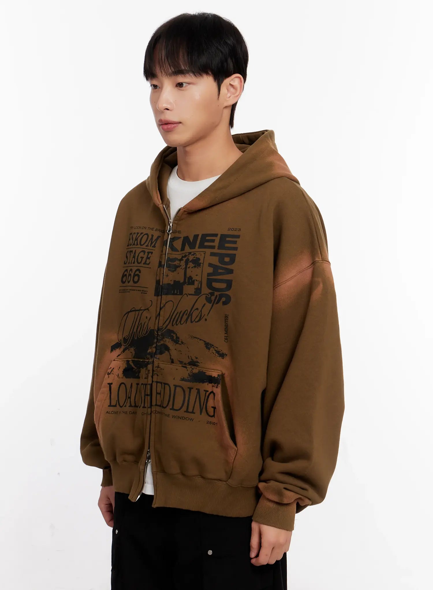 Men's Vintage Wash Graphic Zip-Up Hoodie IO523