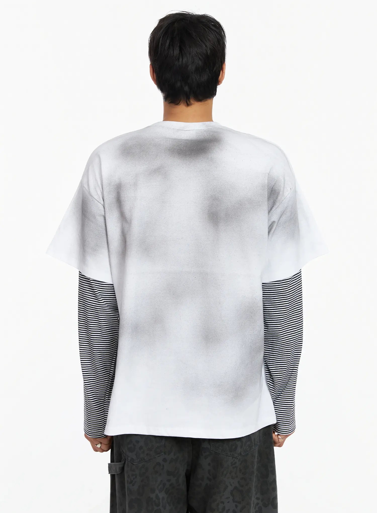 Men's White Vintage Graphic Layered Long Sleeve Tee IJ527