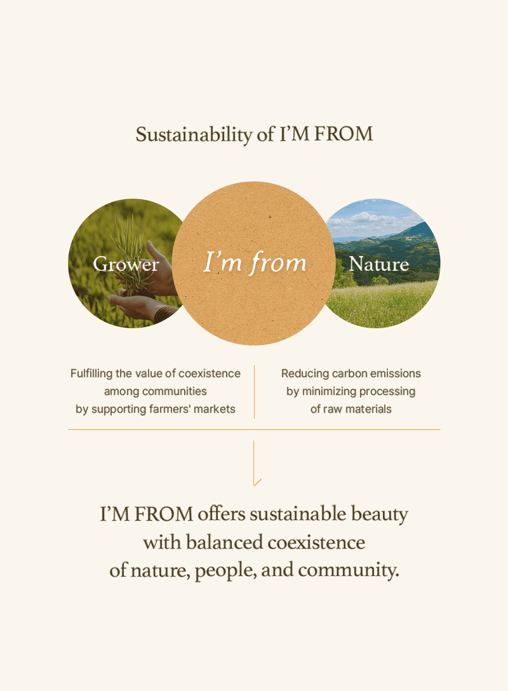 I'm From is a Korean skincare brand known for using natural ingredients to create gentle and effective products. They transparently disclose the source of their ingredients and feature products made with regional specialties.