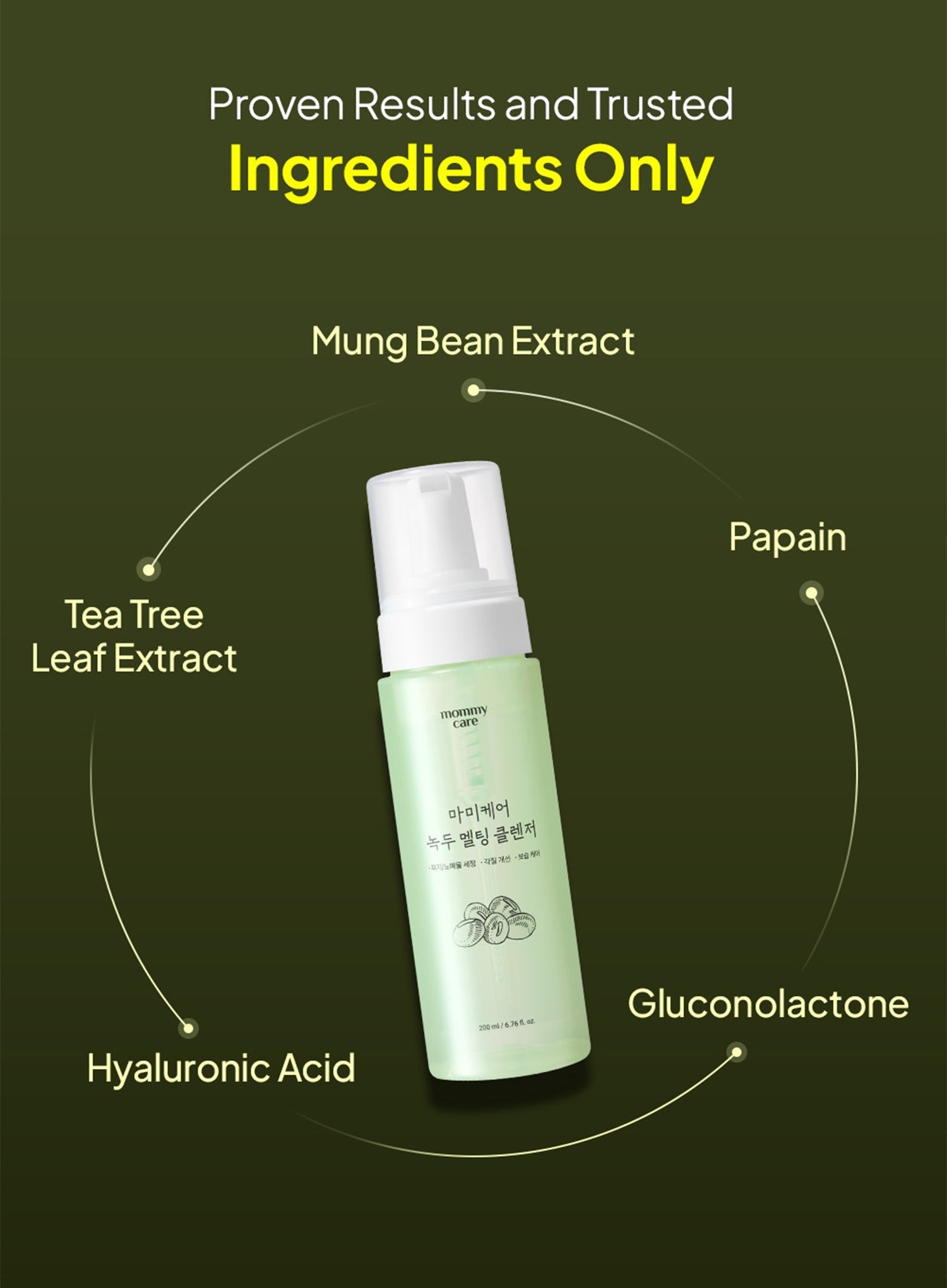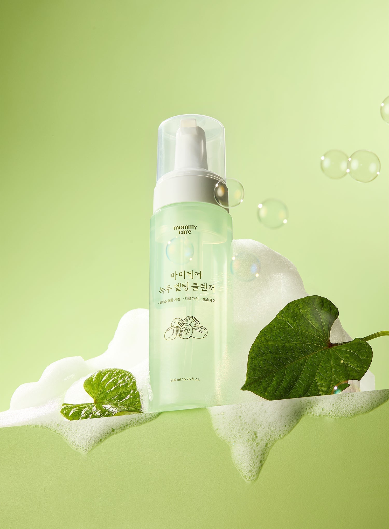 Naturally derived mung bean bubbles melt makeup without leaving residue.