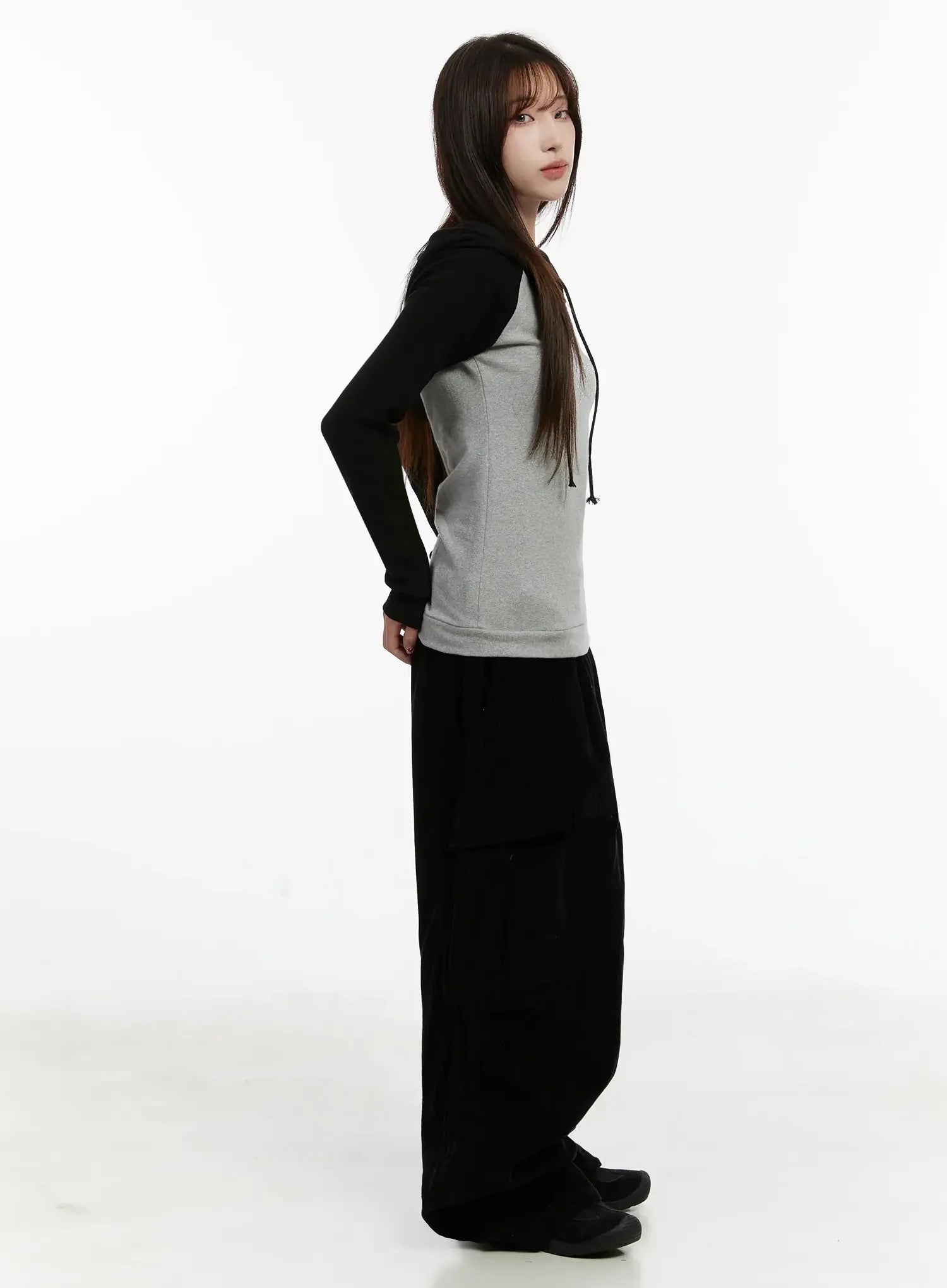 Off-Shoulder Hooded Lettering Top IJ521