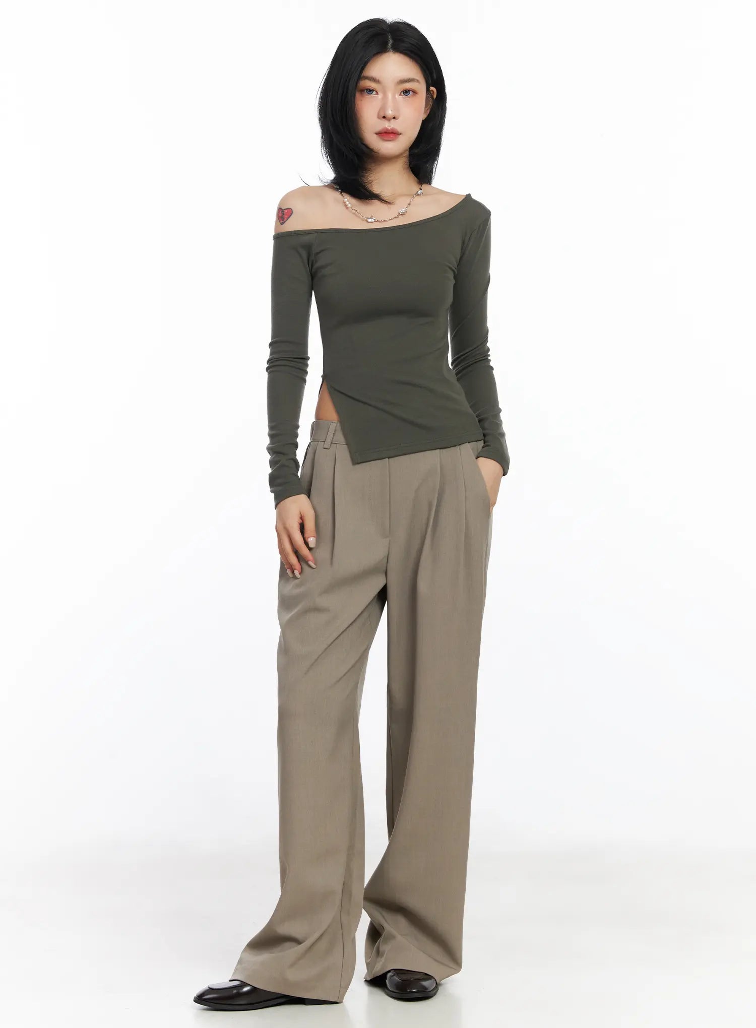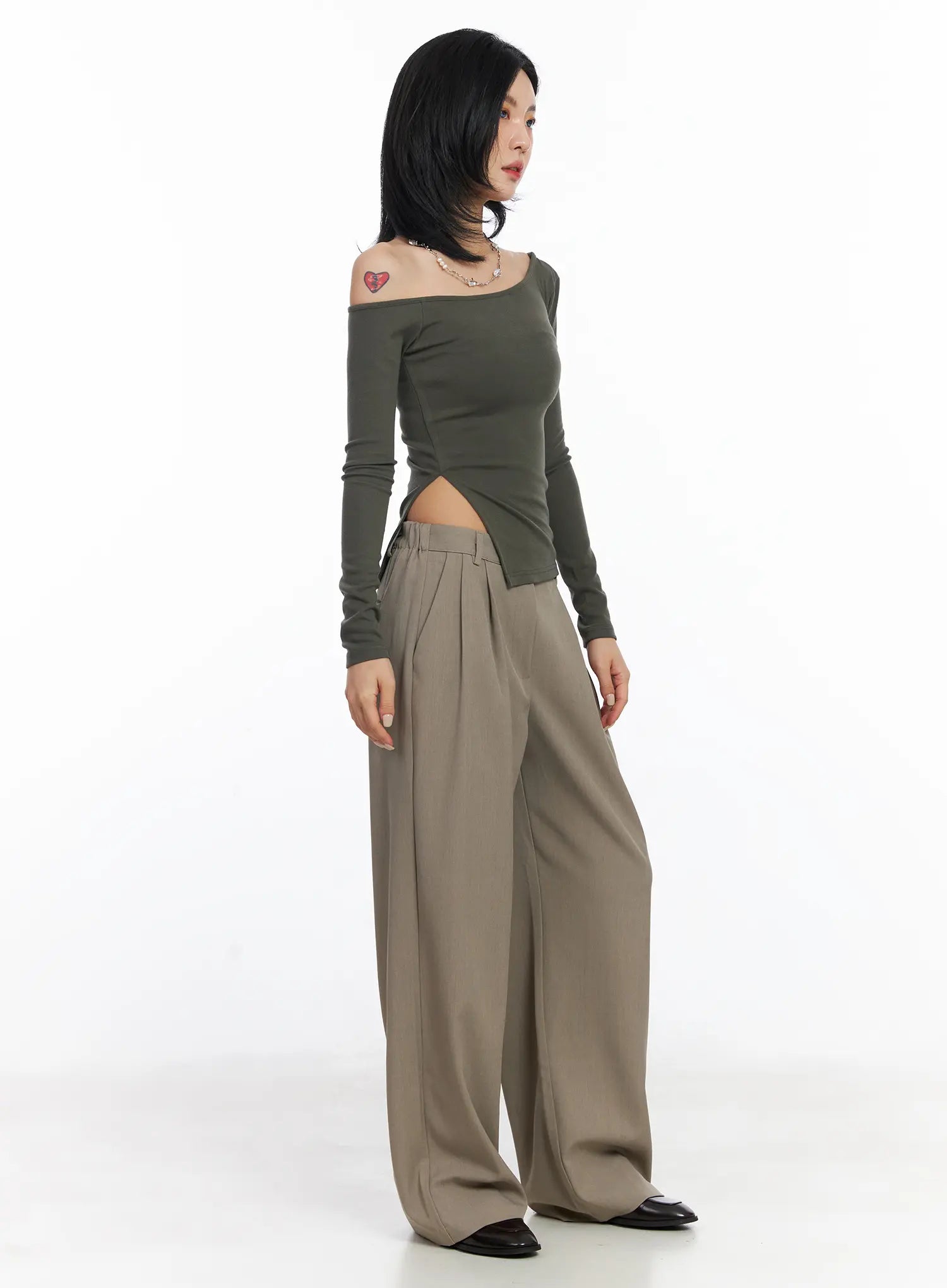 One-Shoulder Side Slit Long Sleeve Top CJ522