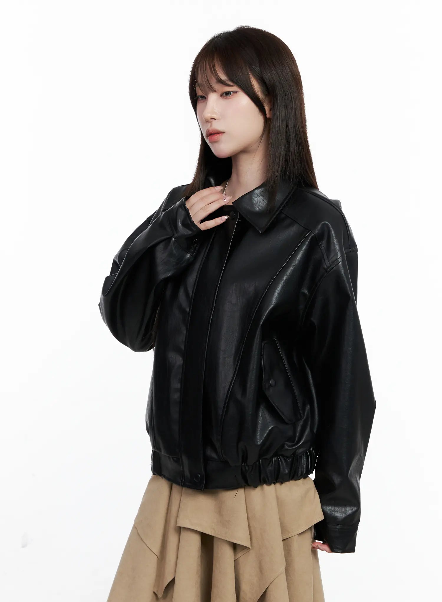 Oversized Faux Leather Jacket CO521