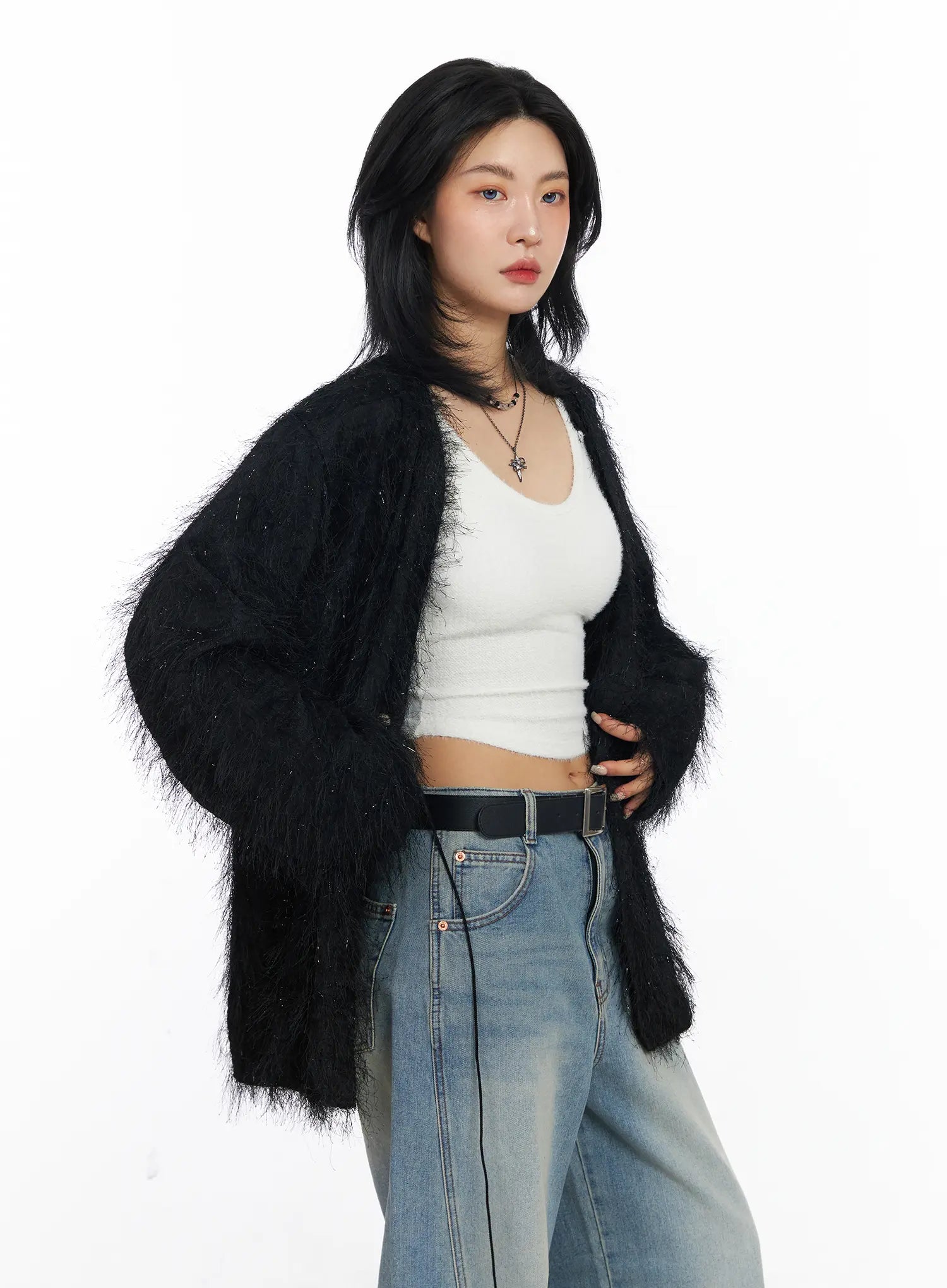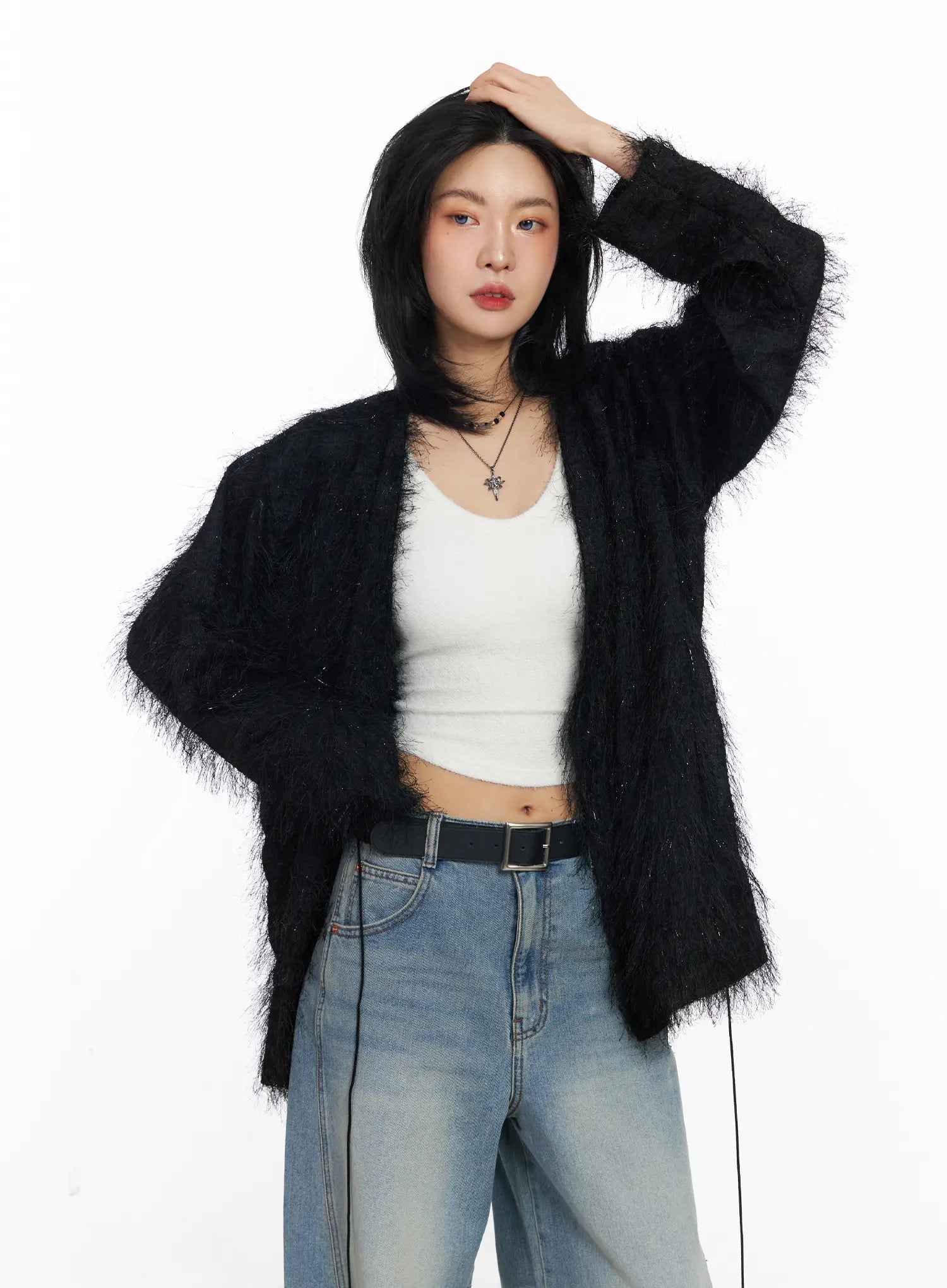 Oversized Fuzzy Knit Cardigan CJ523