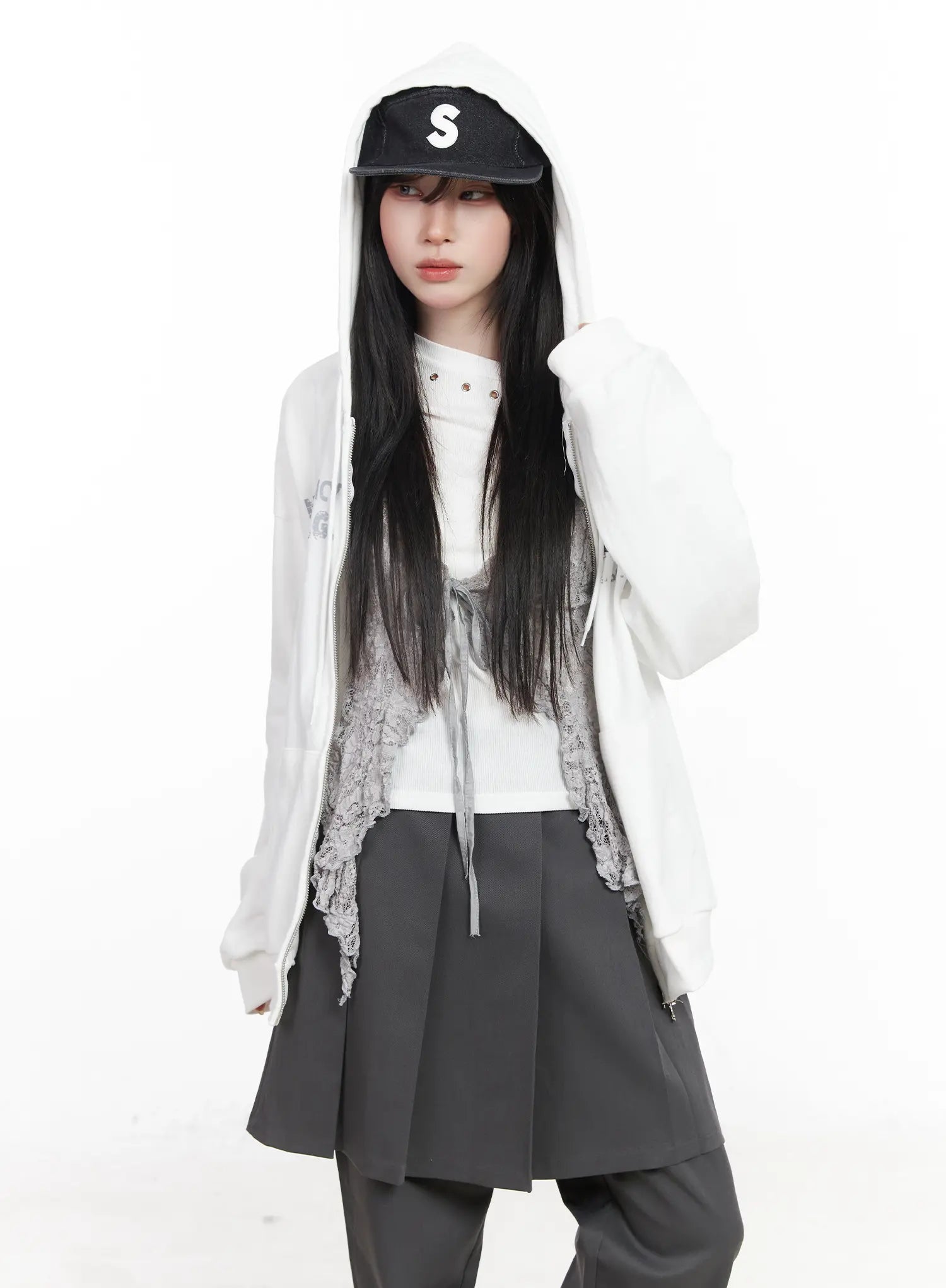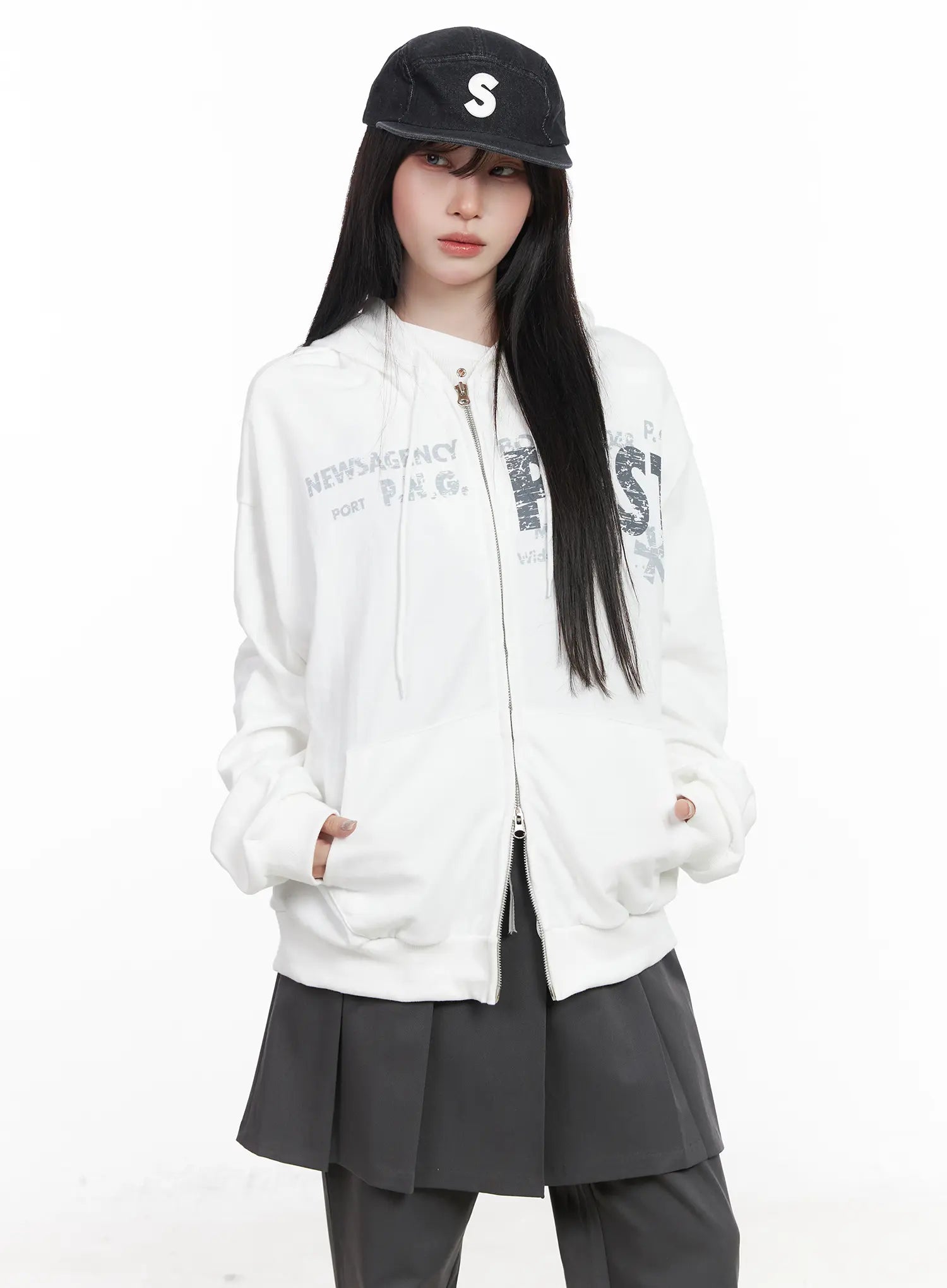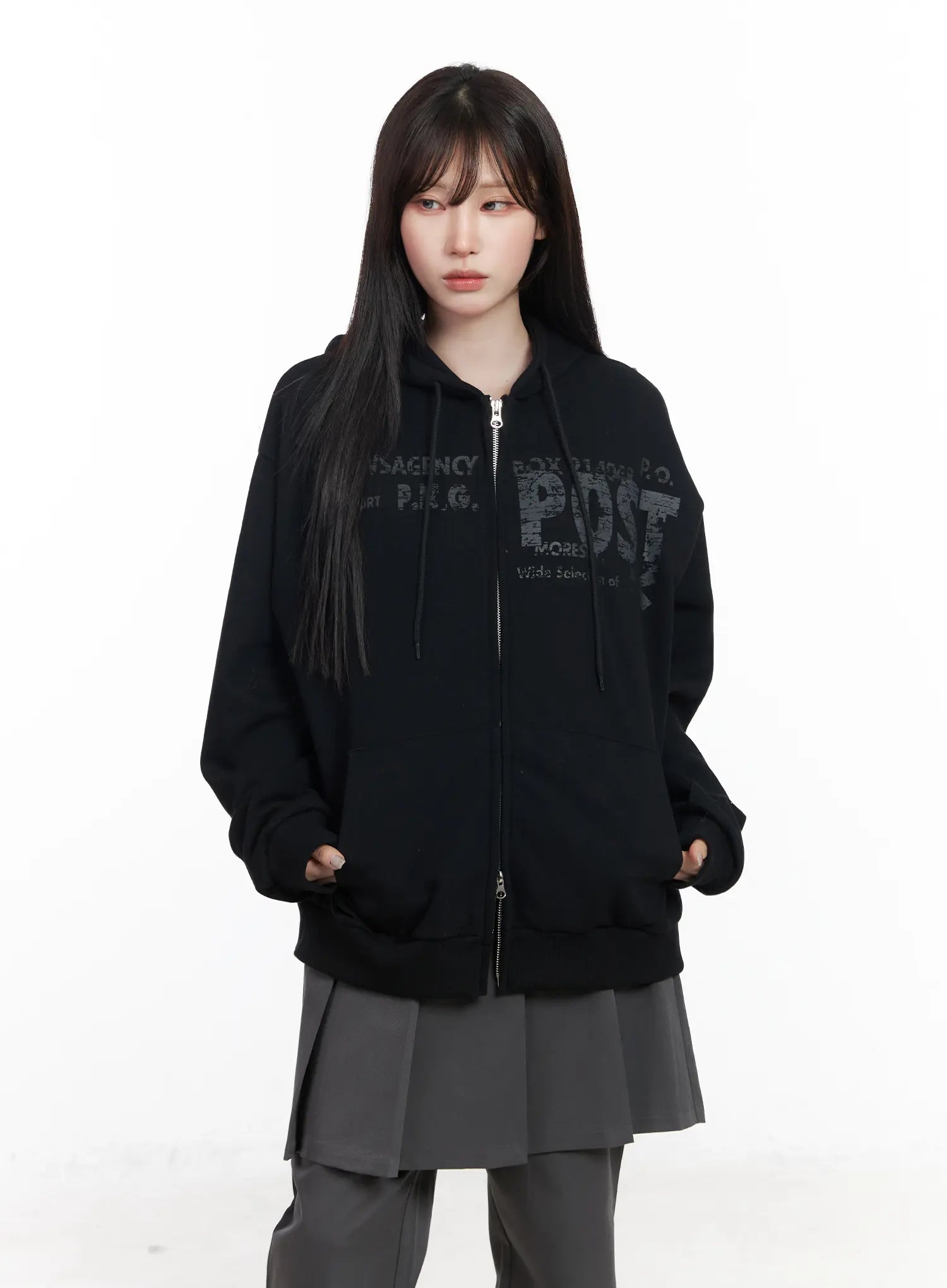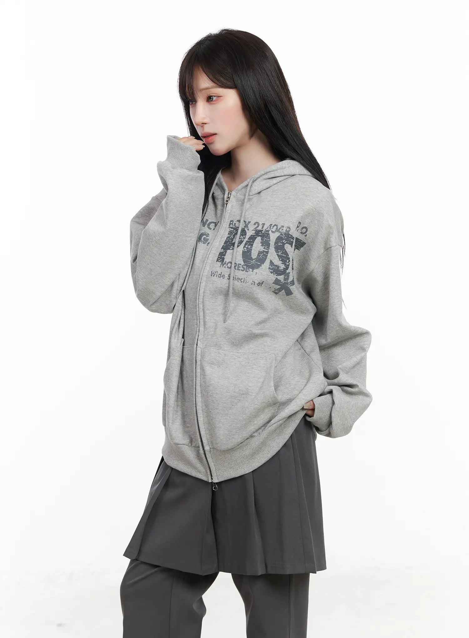 Oversized Graphic Zip-Up Hoodie CF523