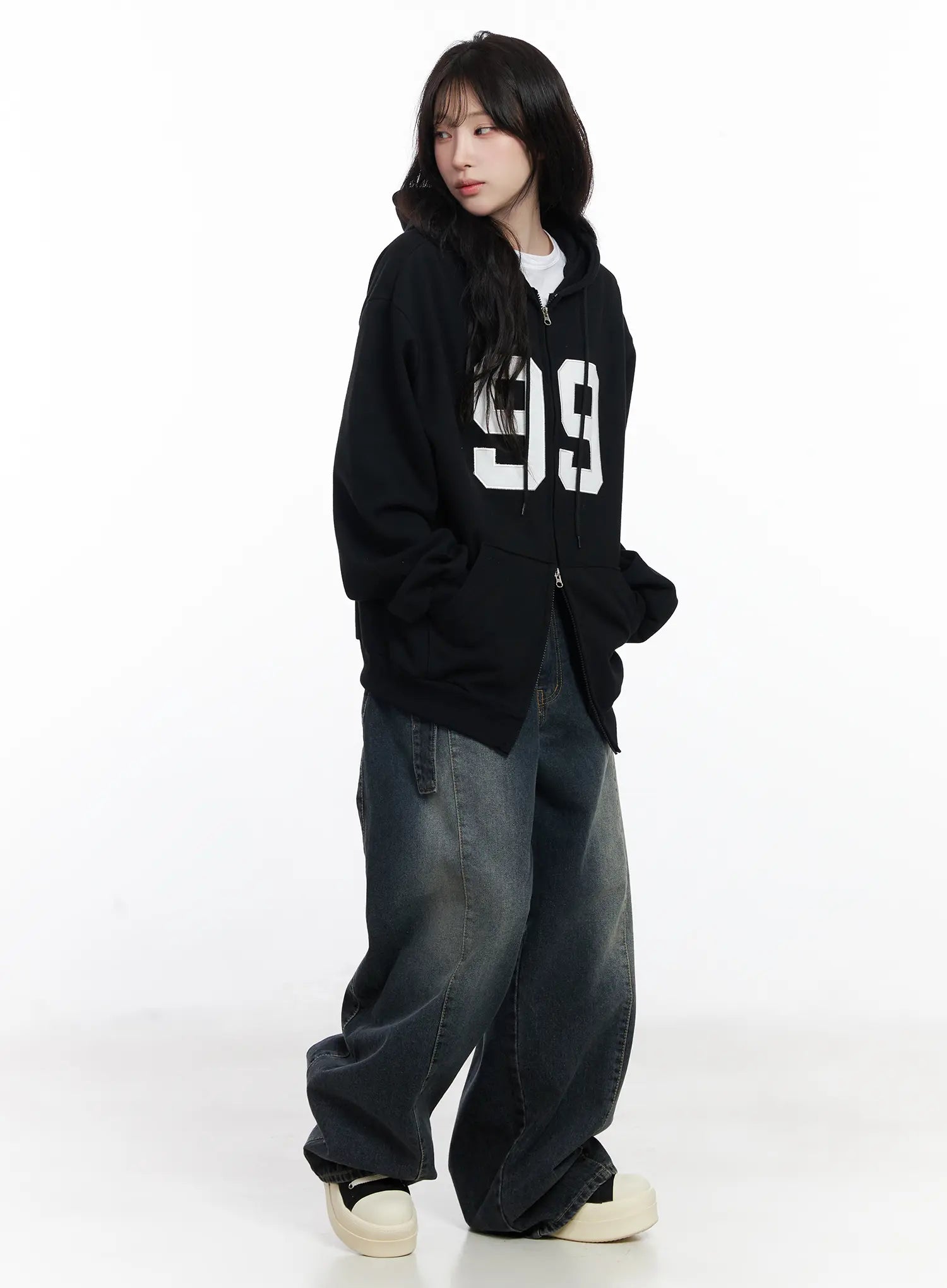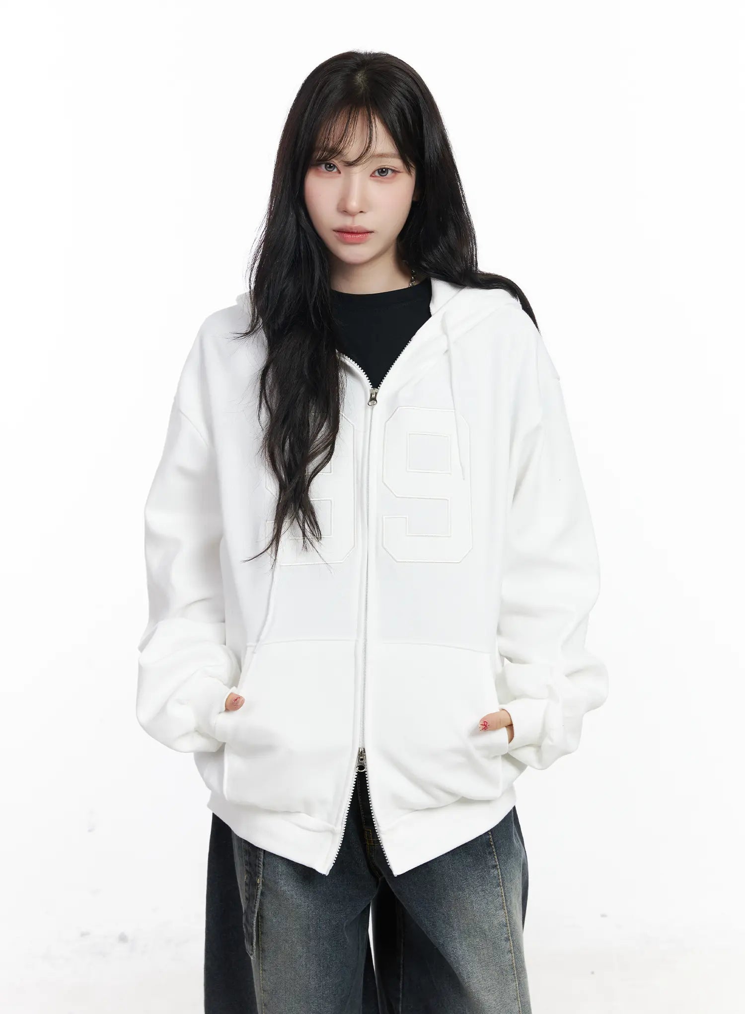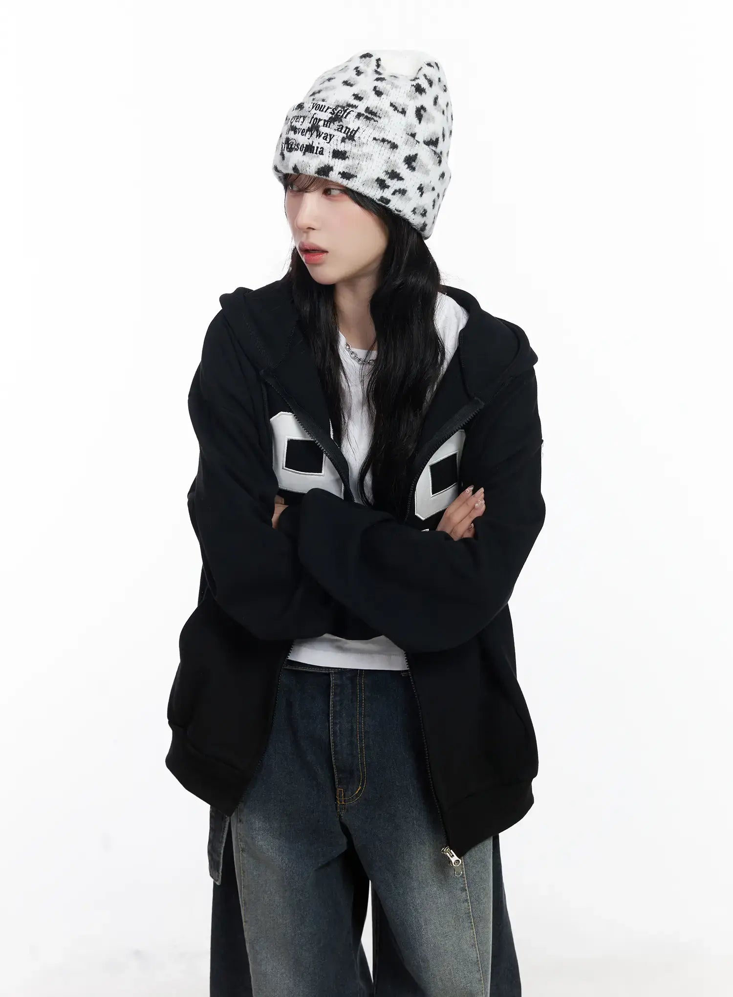 Oversized Lettering Zip-Up Hoodie CJ527