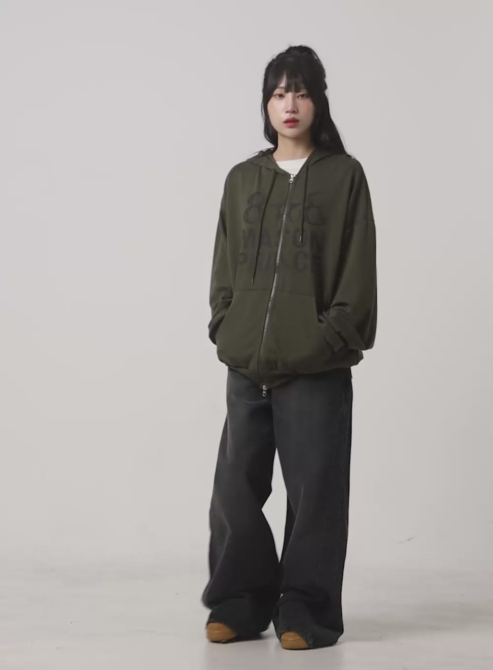 Oversized Lettering Zip-Up Sweat Hoodie CG421
