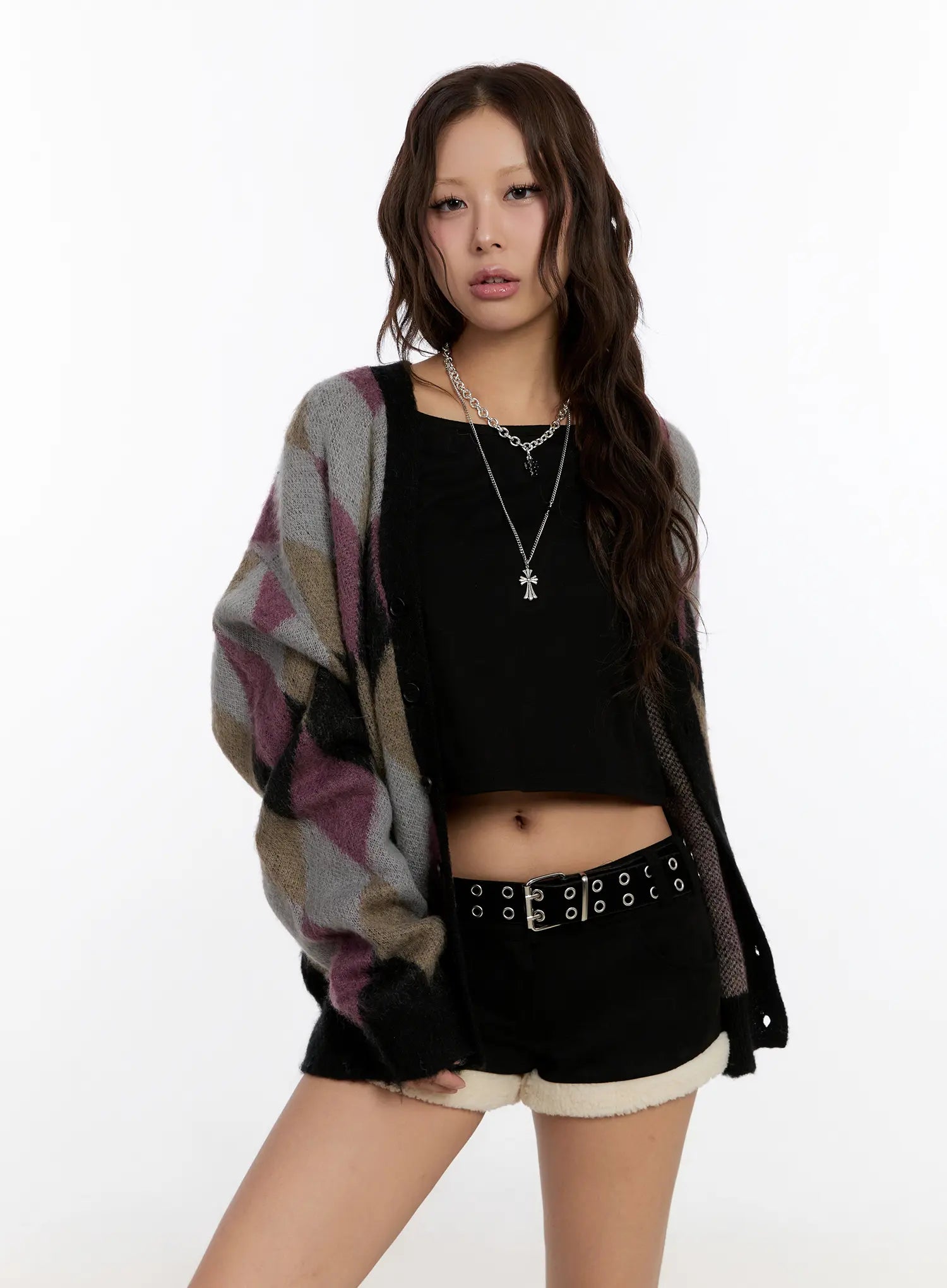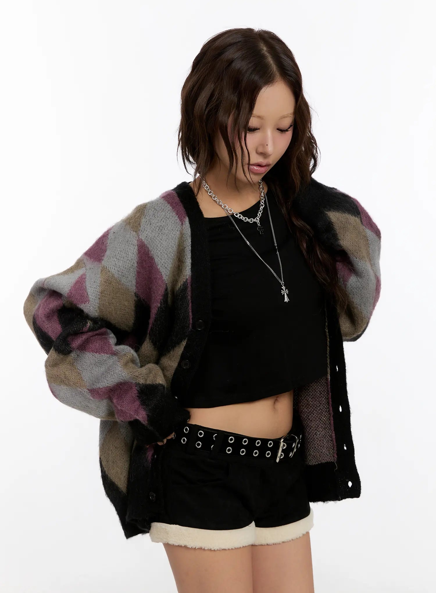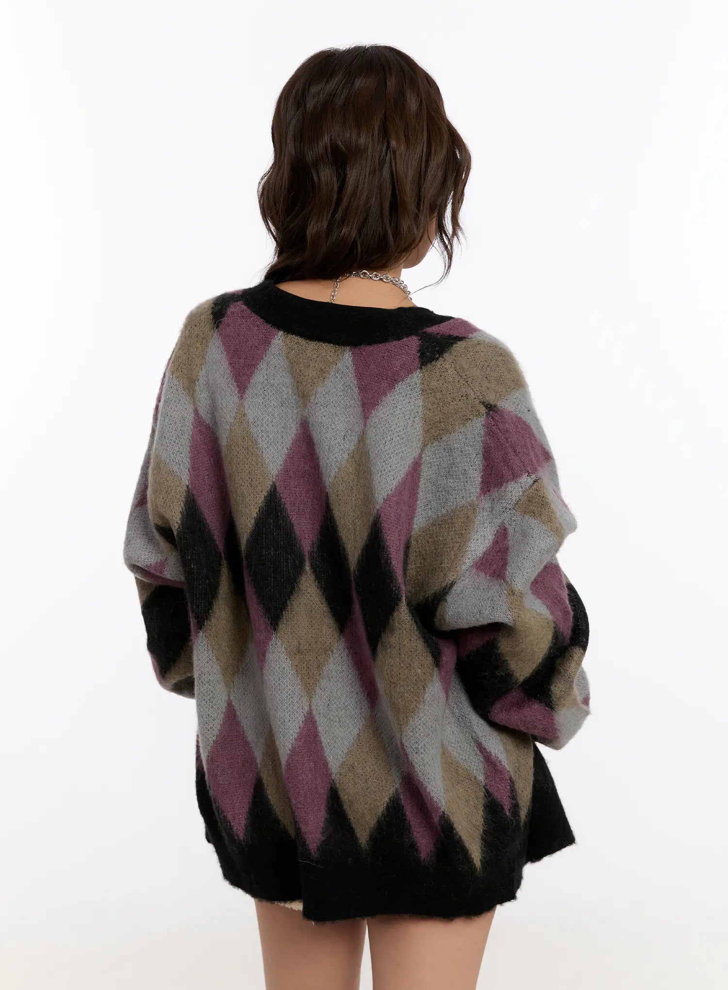 Oversized Multi Color Argyle Knit Cardigan CN527