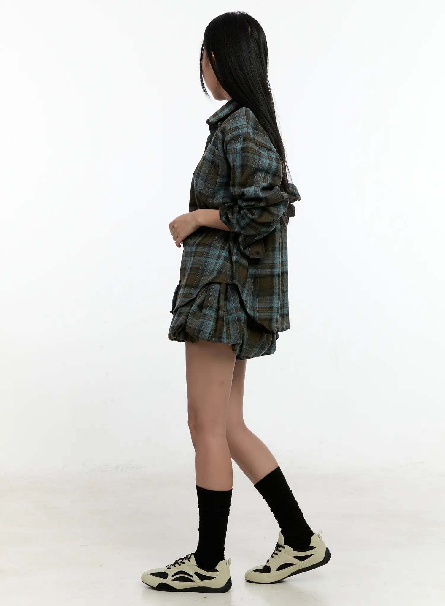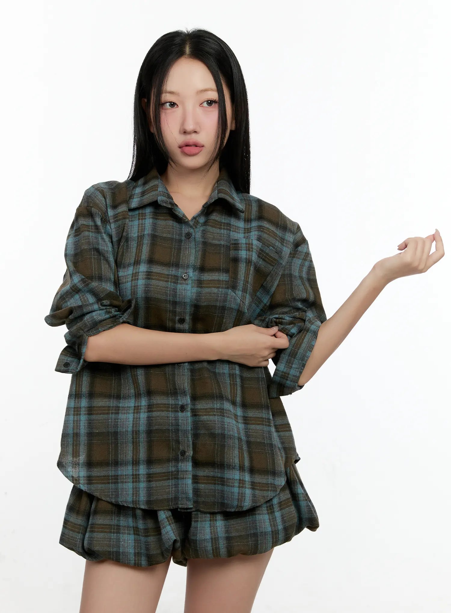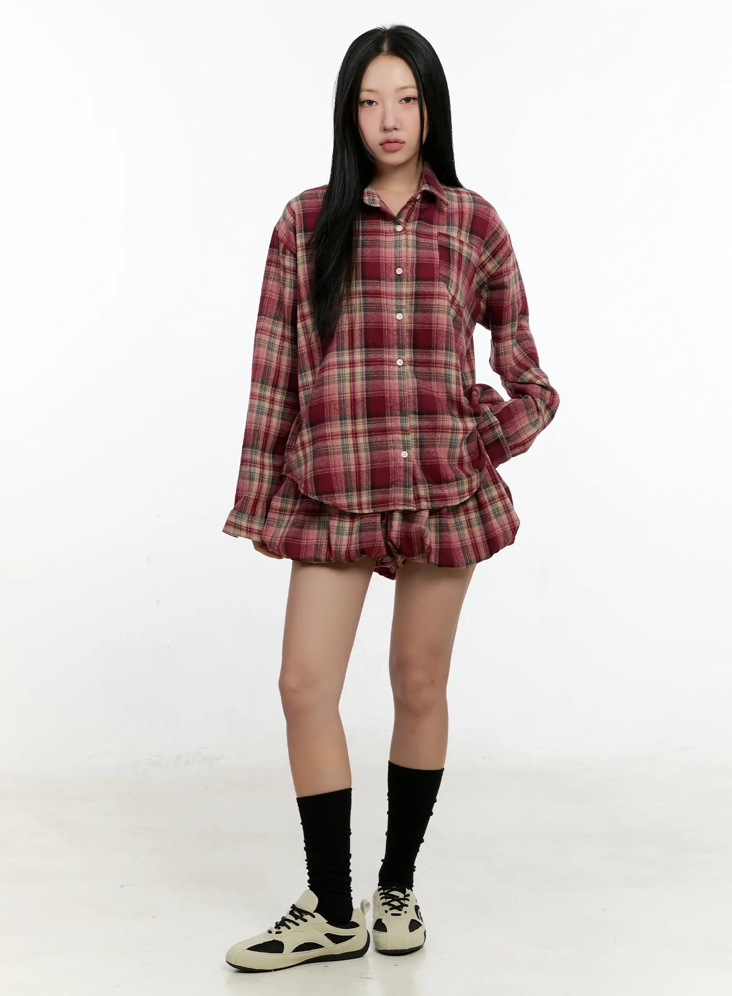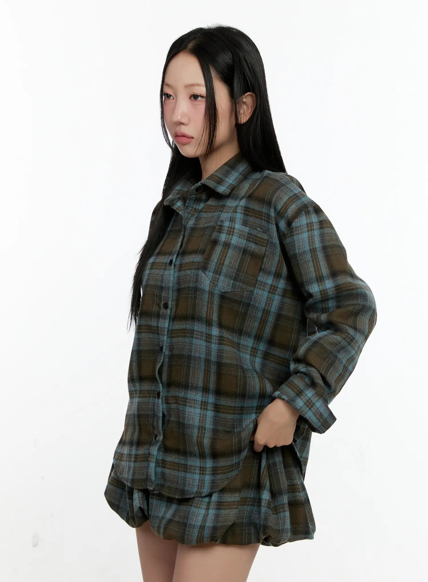 Oversized Plaid Check Long Sleeve Shirt CN505