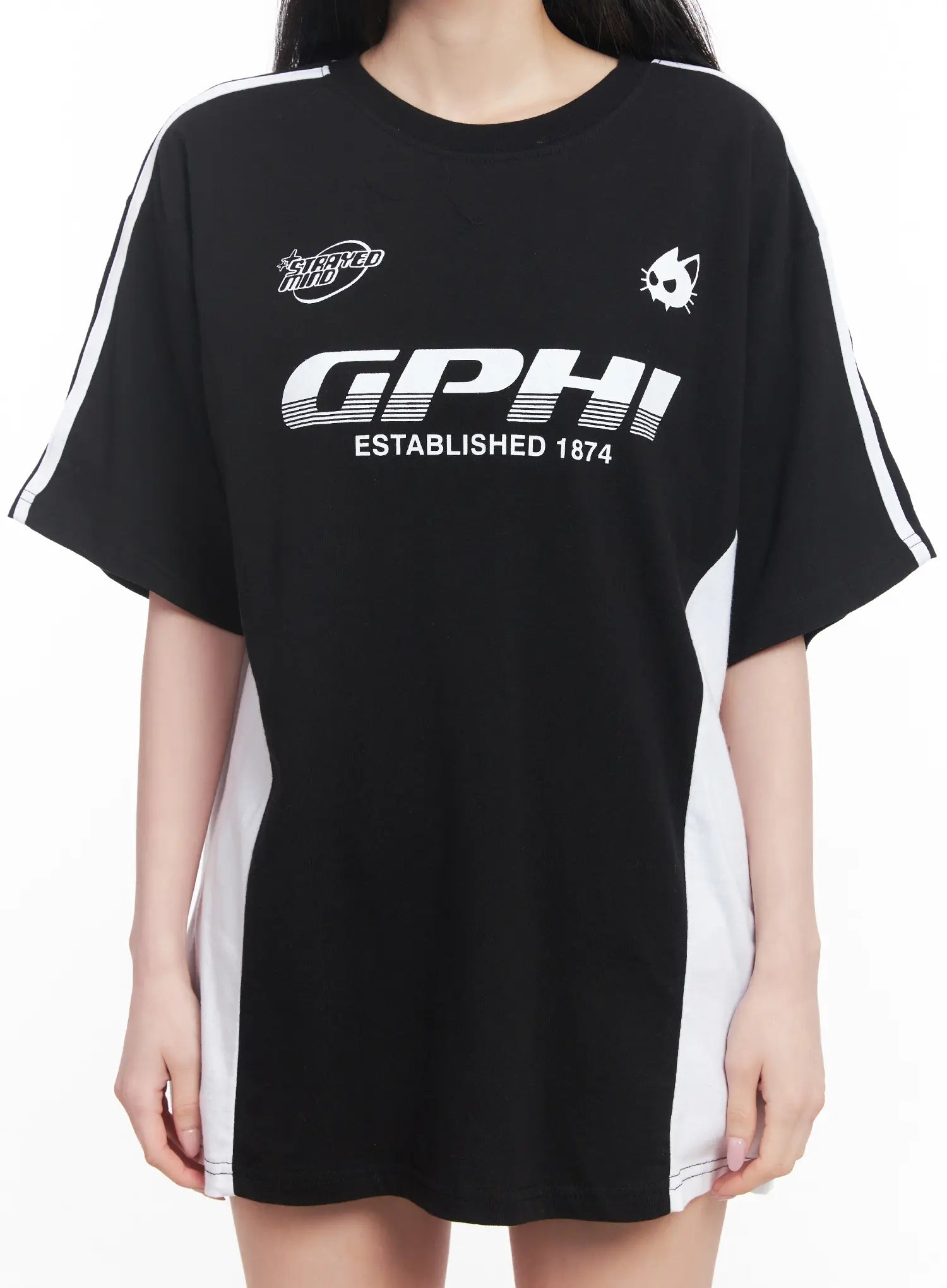 Oversized Striped Graphic Tee CU511