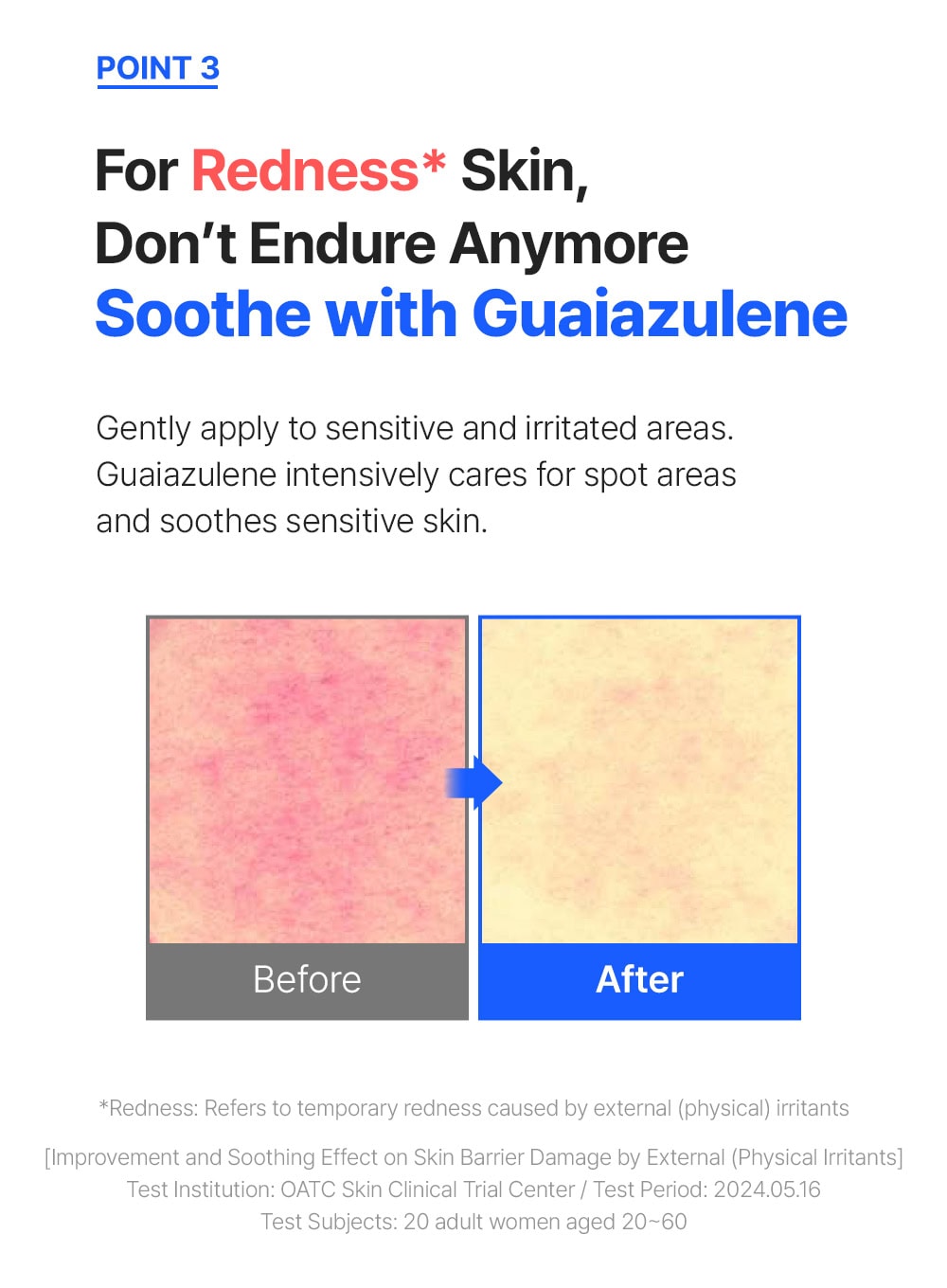 - Centella Asiatica, Juniper Berry, and Ginseng Berry extracts help fortify the skin barrier and defend against external irritants.