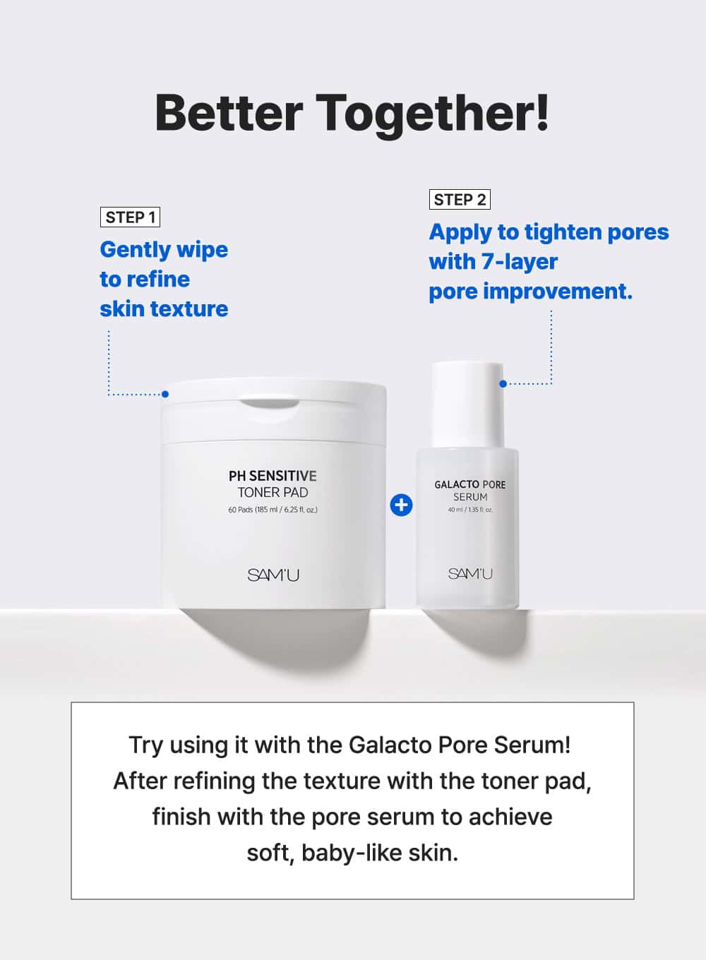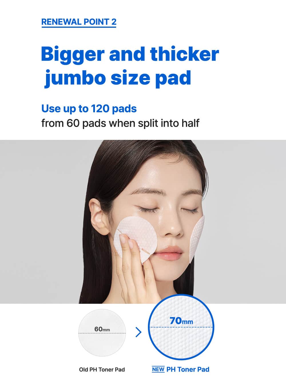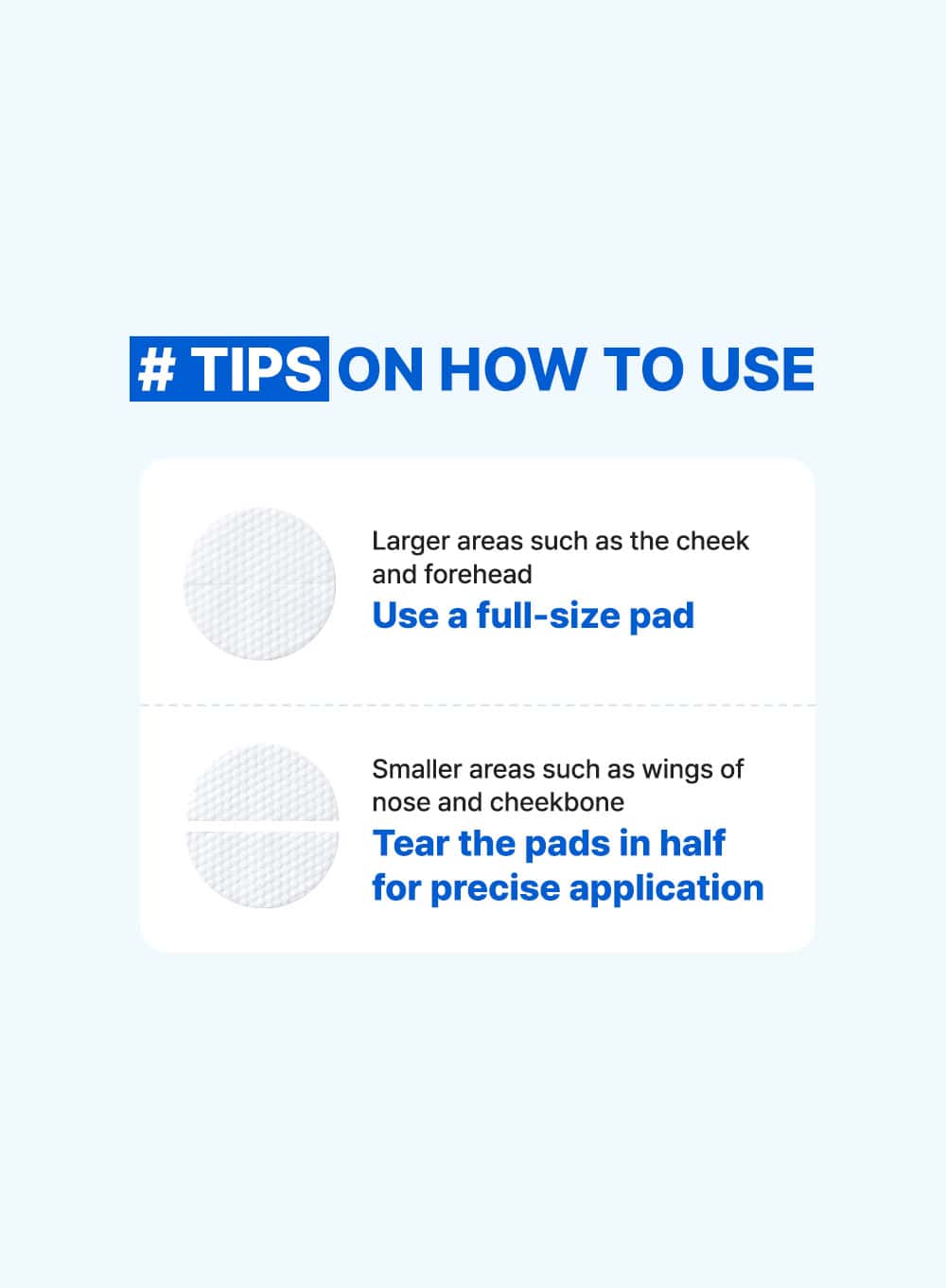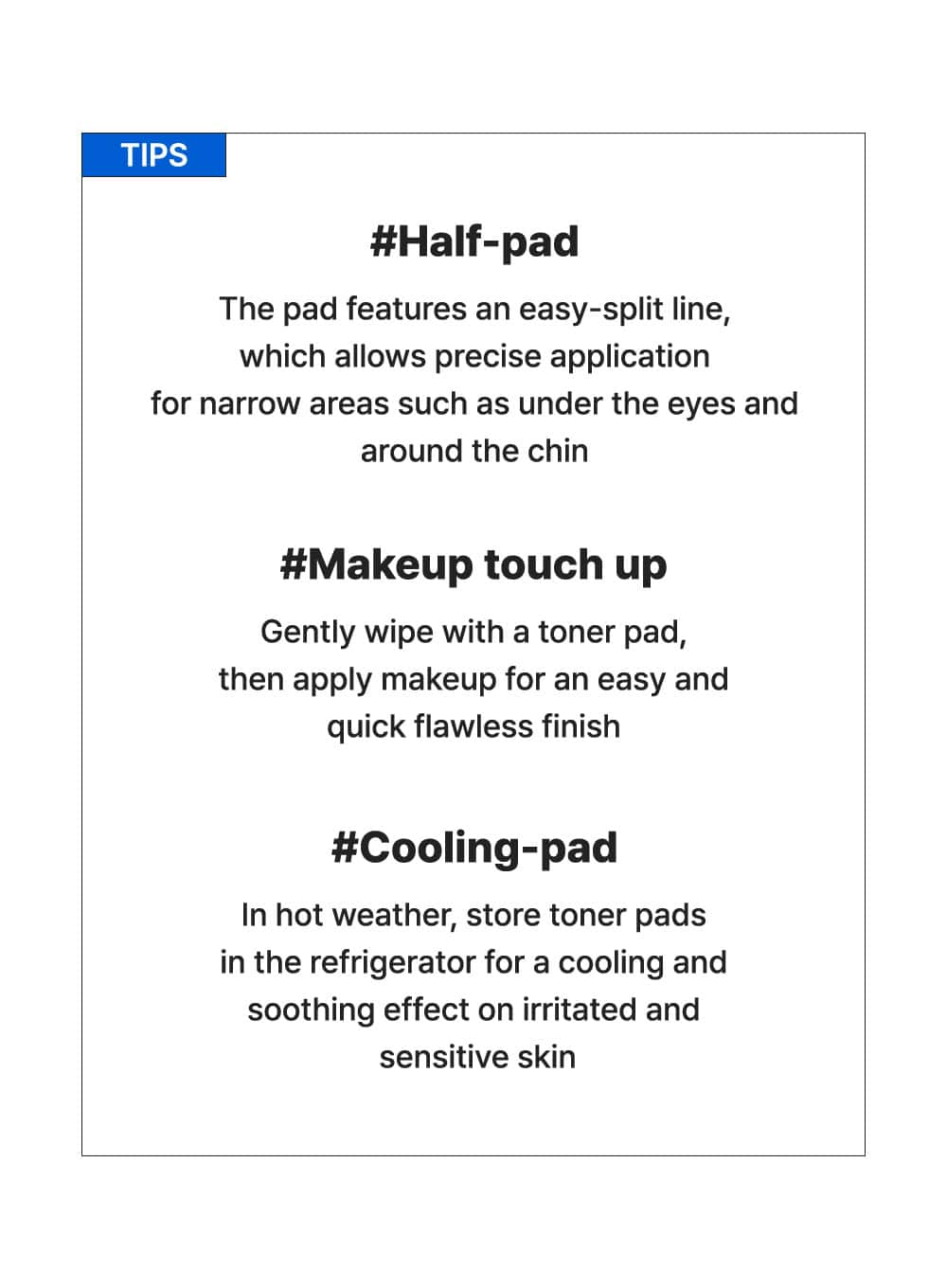 - The embossed side of the pad gently exfoliates, refining skin texture and removing impurities.
