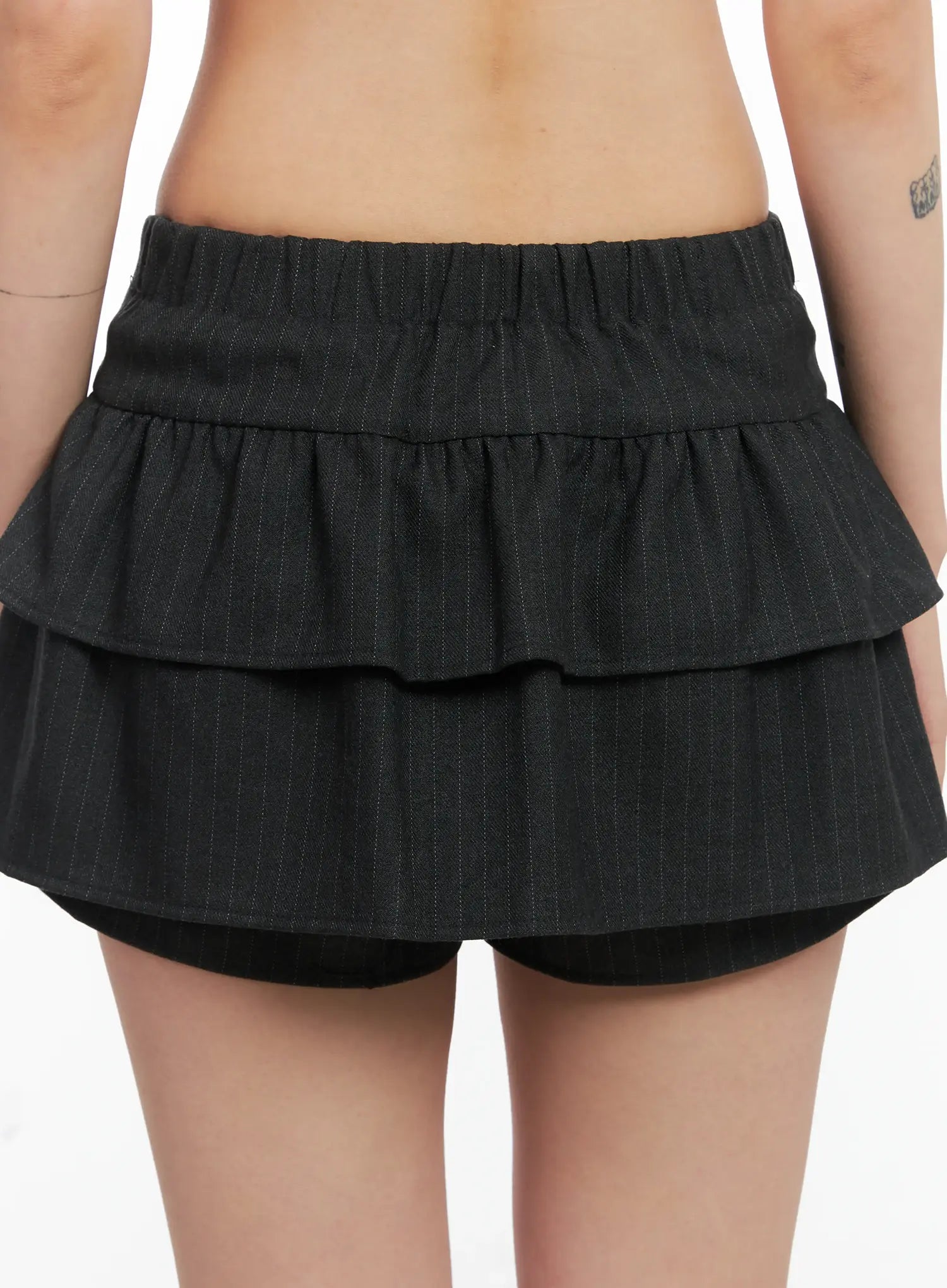Pinstripe Tiered Ruffle Mini Skirt CD502