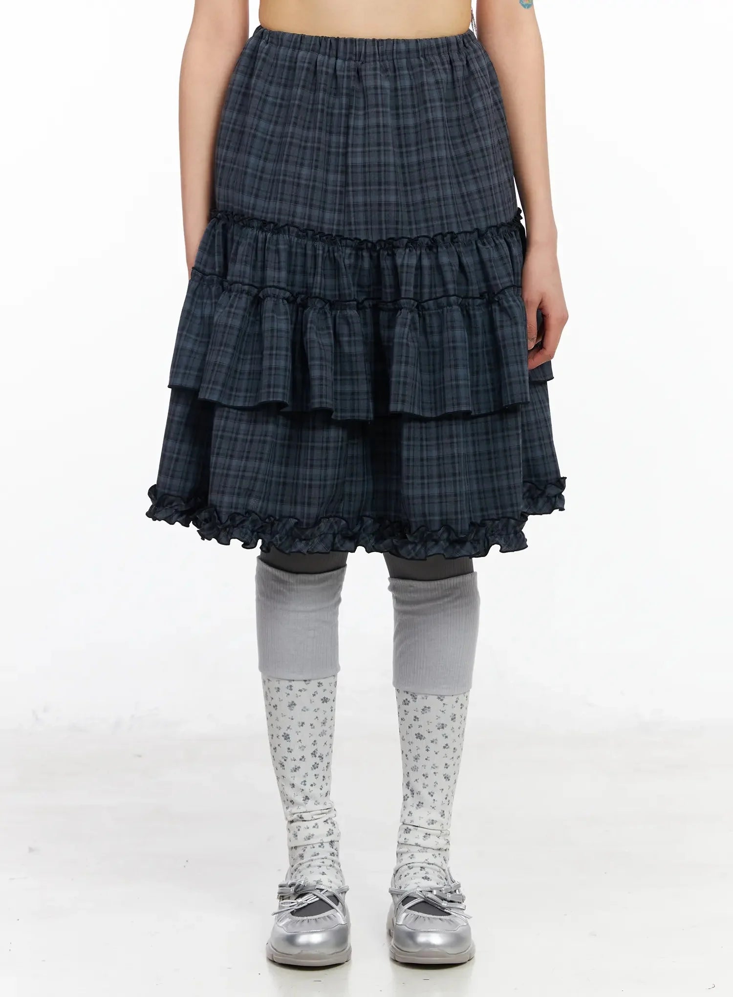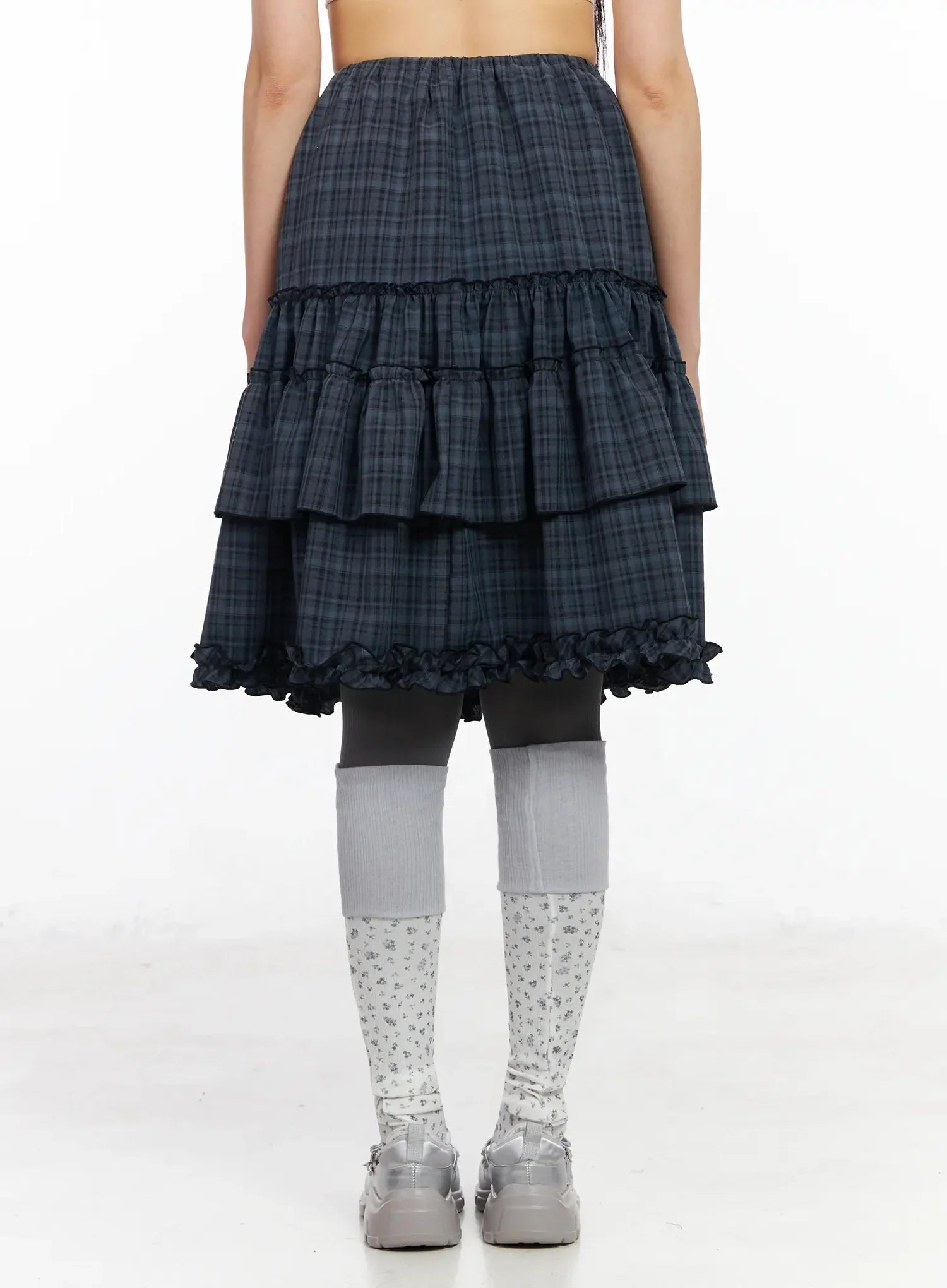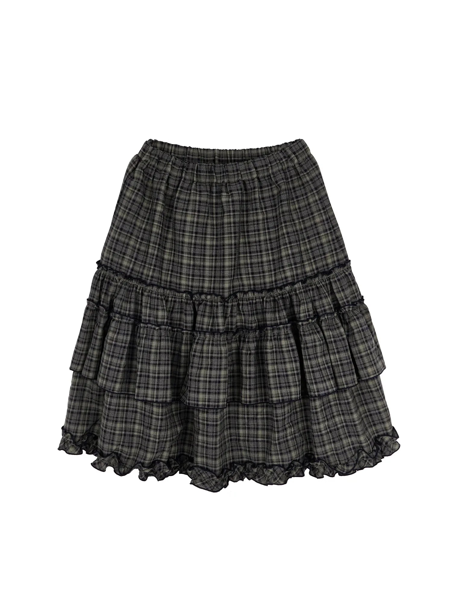 Plaid Frill Tiered Midi Skirt IA523