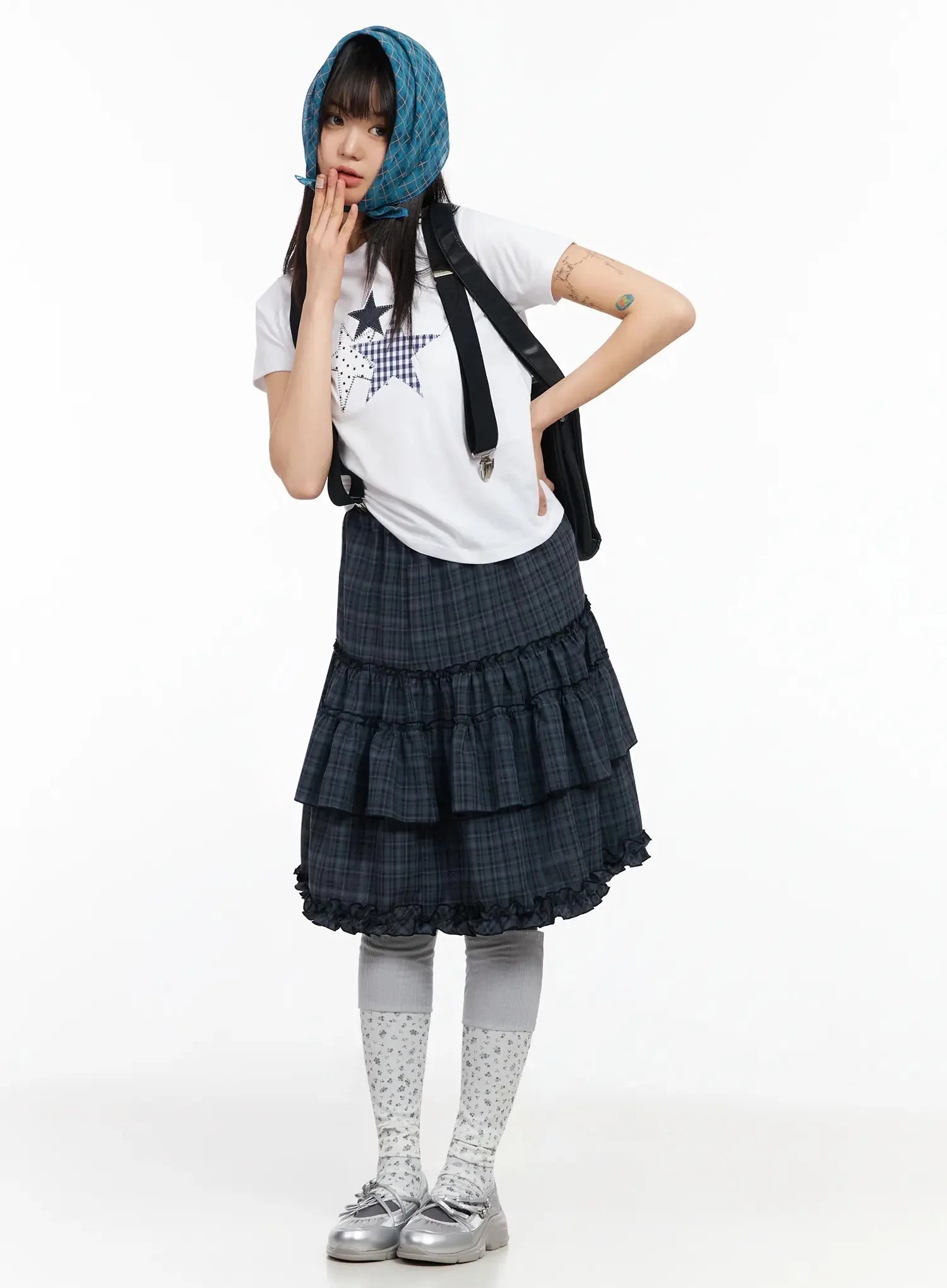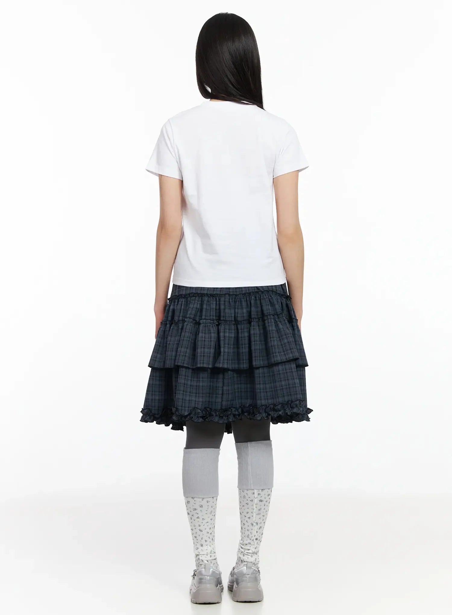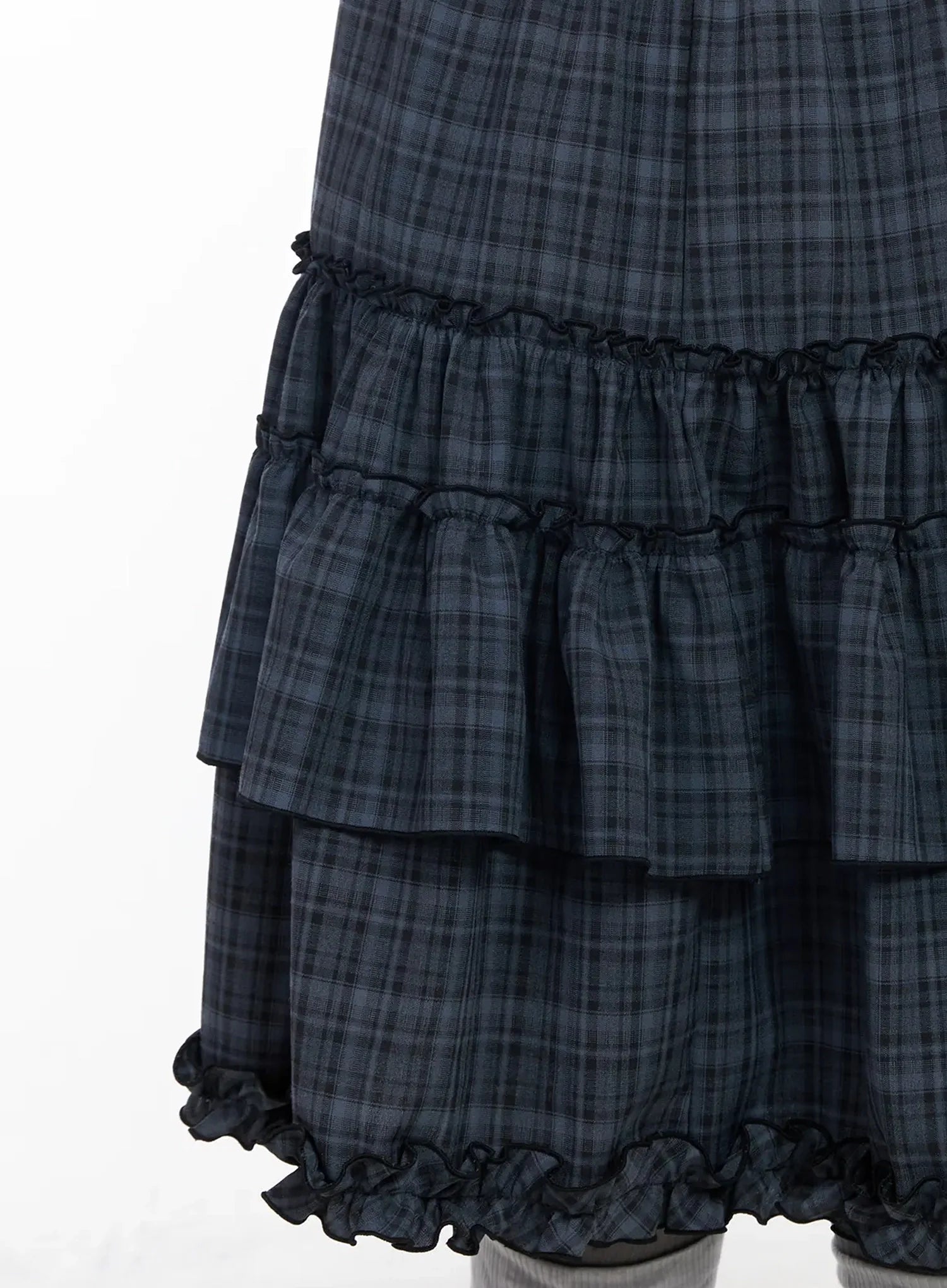 Plaid Frill Tiered Midi Skirt IA523