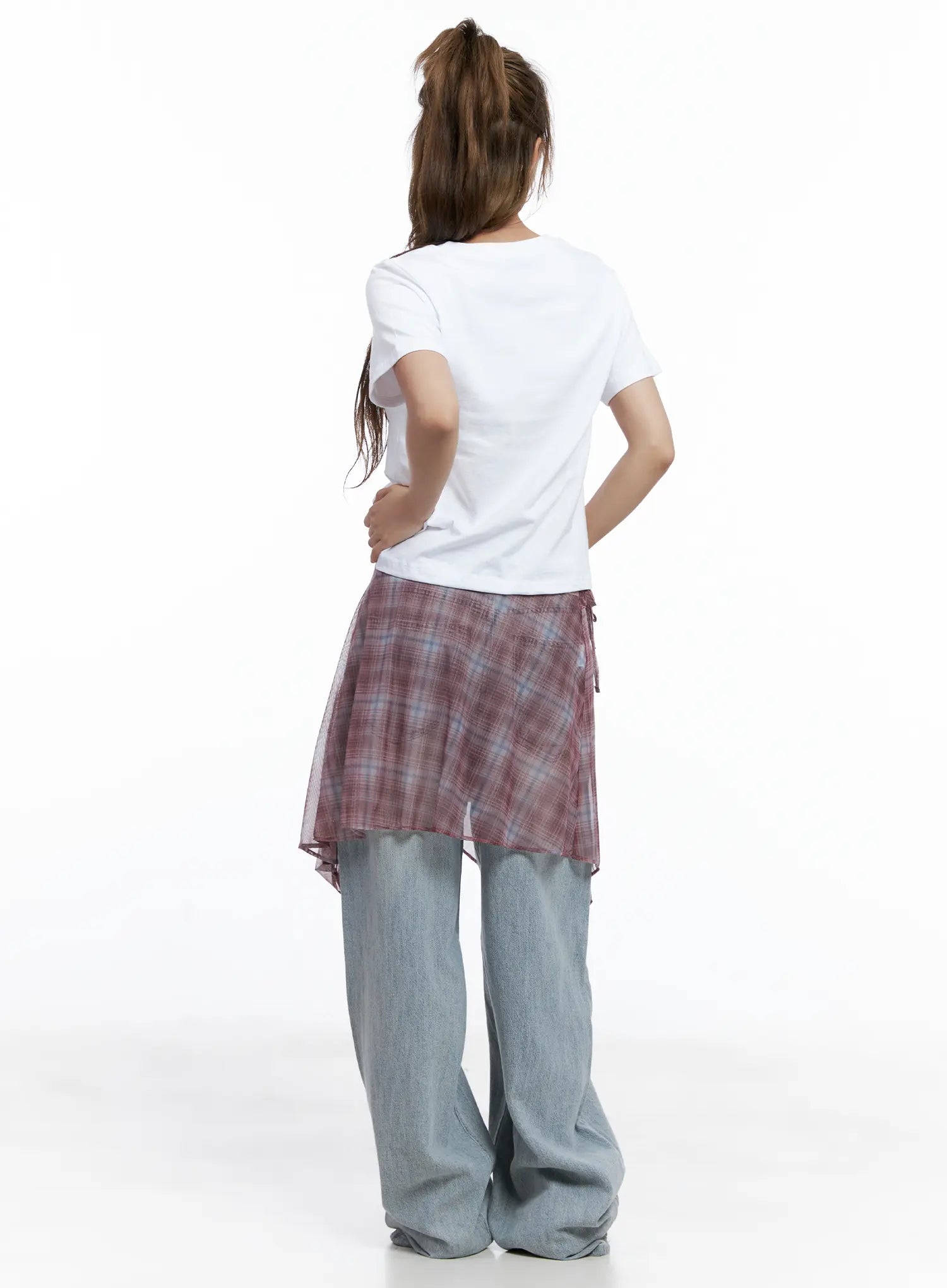 Plaid Mesh Layered Wrap Midi Skirt CL511