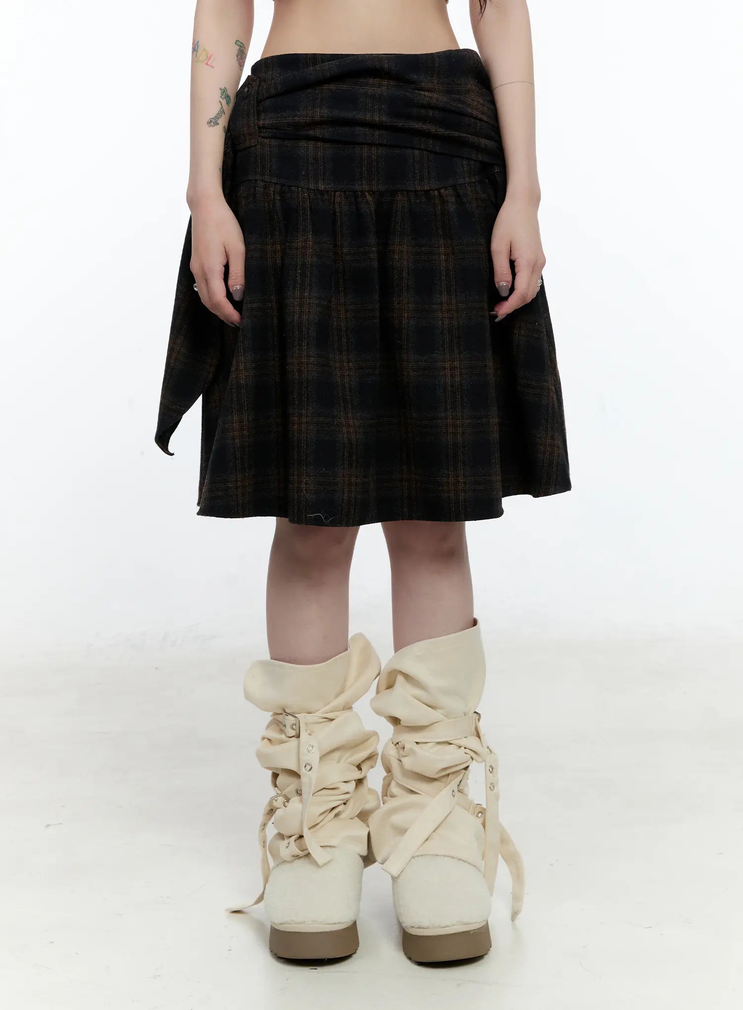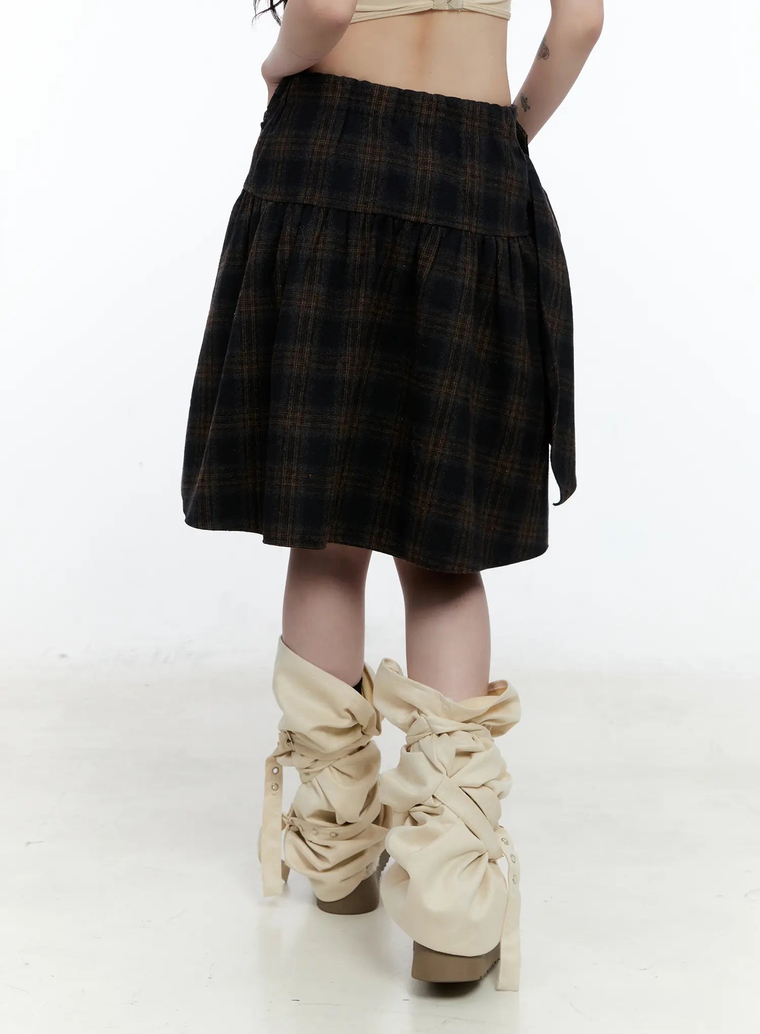 Plaid Tie-Wrap Midi Skirt CN517