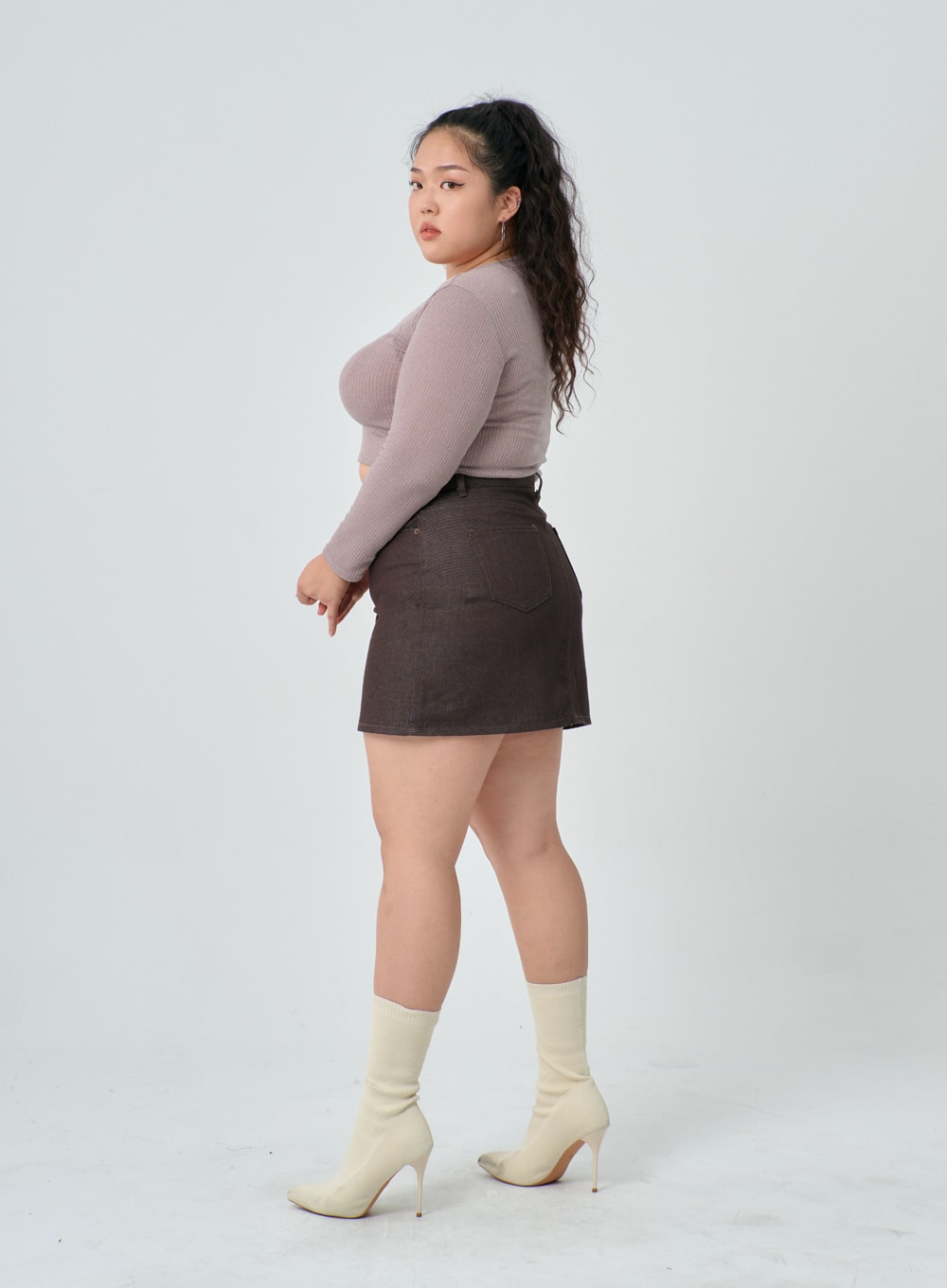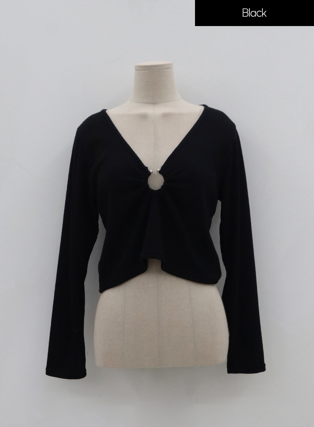 Plus Sexy V-Neck Crop Metal Ring T-Shirt IN04
