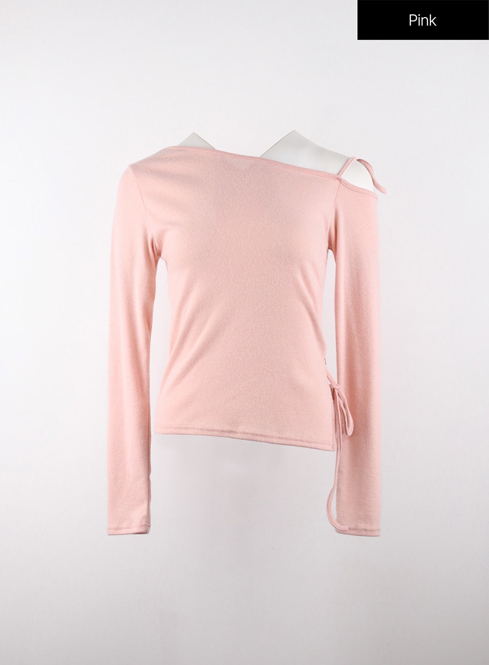 Rib and Shoulder Asymmetrical Drawstring Tee OD320