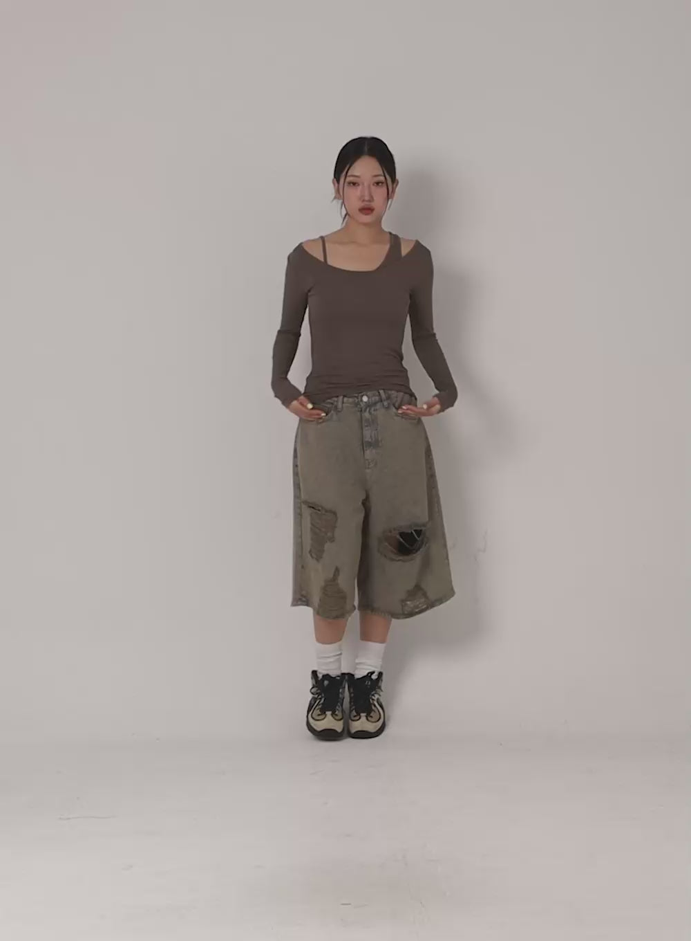 Ribbed Layered Cami and Long Sleeve Top CG316
