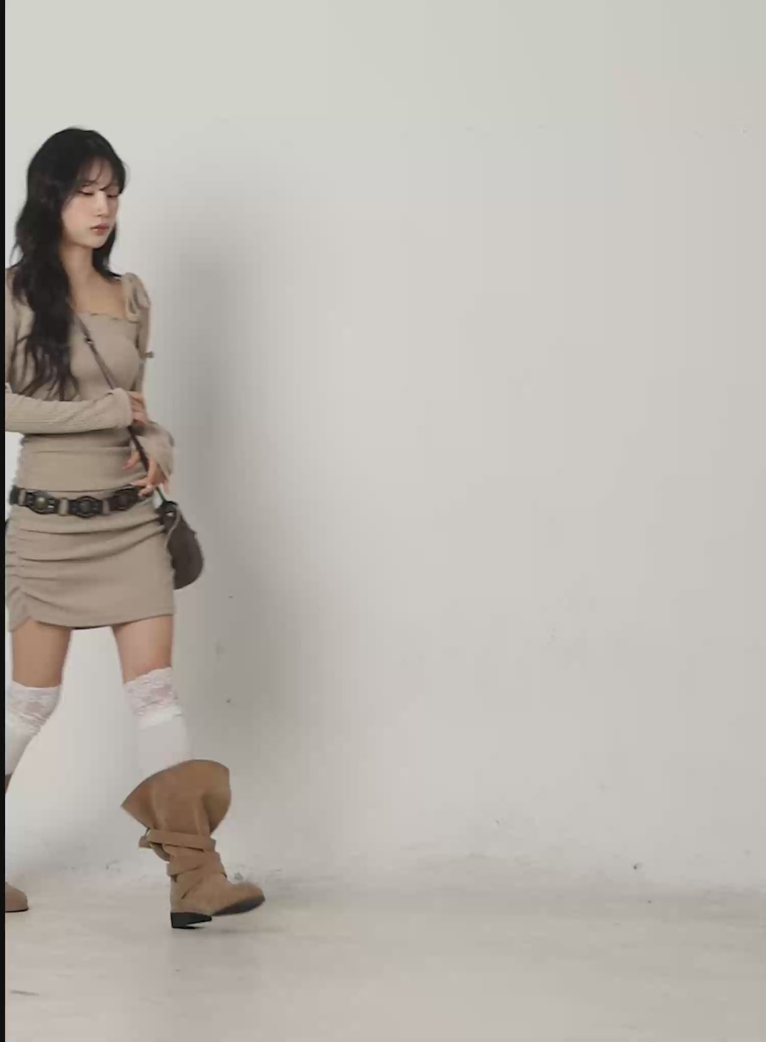 Model is wearing size S/M and the color Beige.