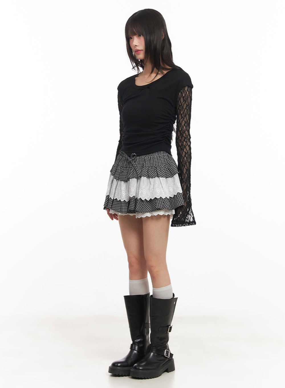 Model is wearing size S/M and the color Black.