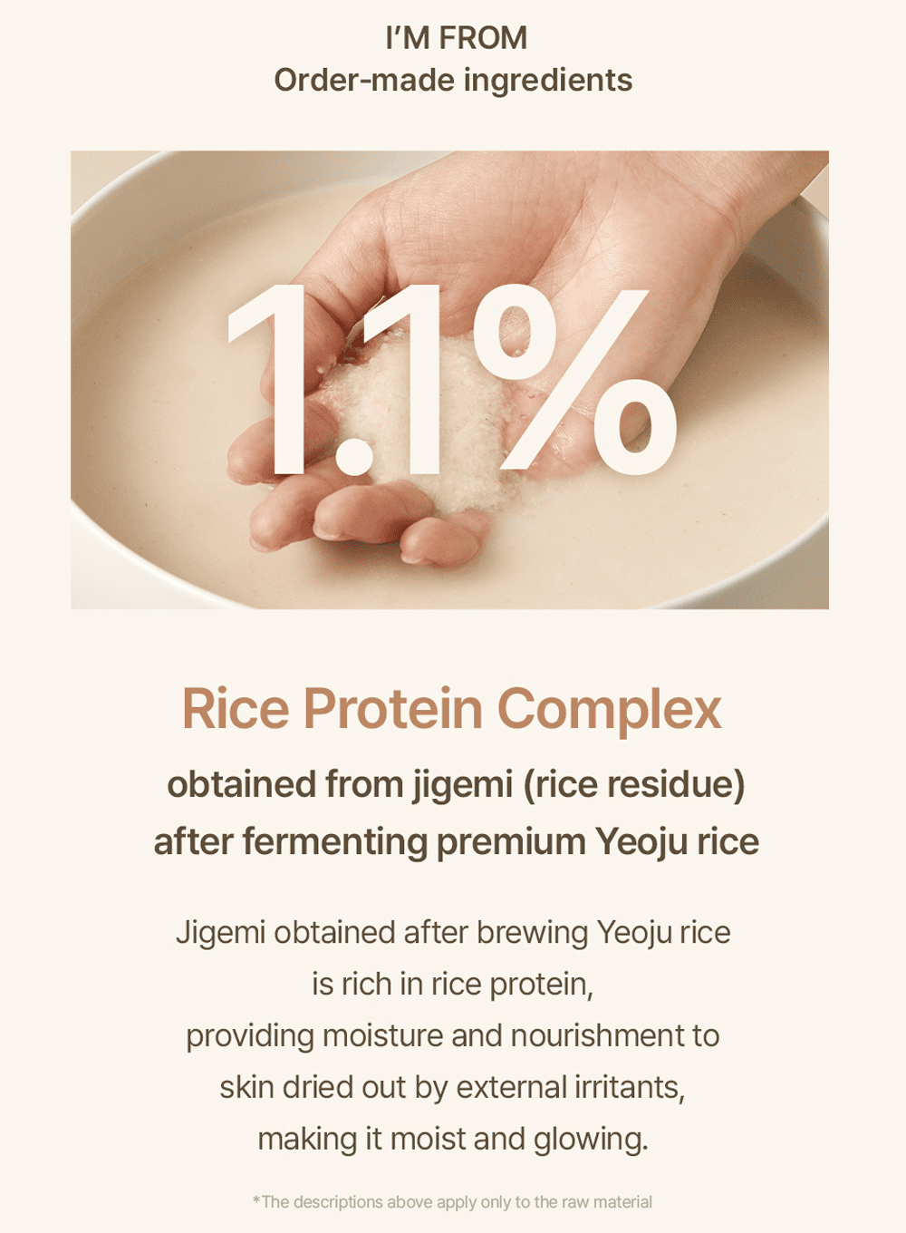 - Enriched with 1.1% fermented rice protein complex extracted from Yeoju rice residues to deliver deep moisture and essential nutrients.