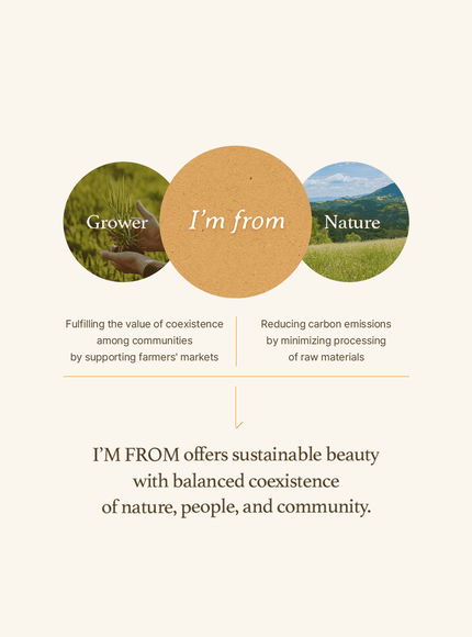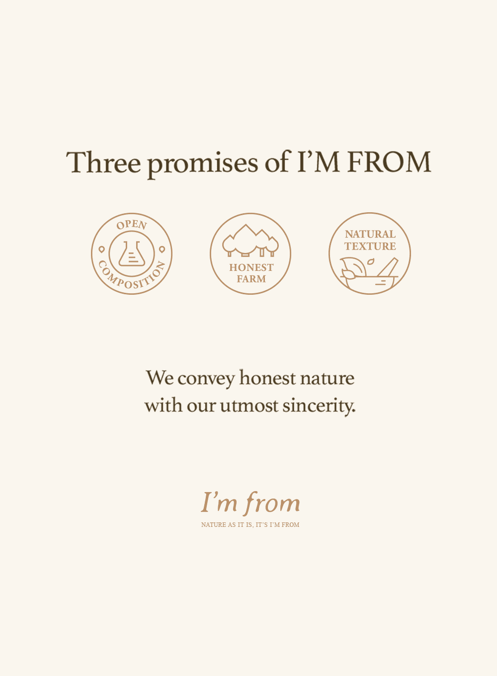 I'm From is a Korean skincare brand known for using natural ingredients to create gentle and effective products. They transparently disclose the source of their ingredients and feature products made with regional specialties.