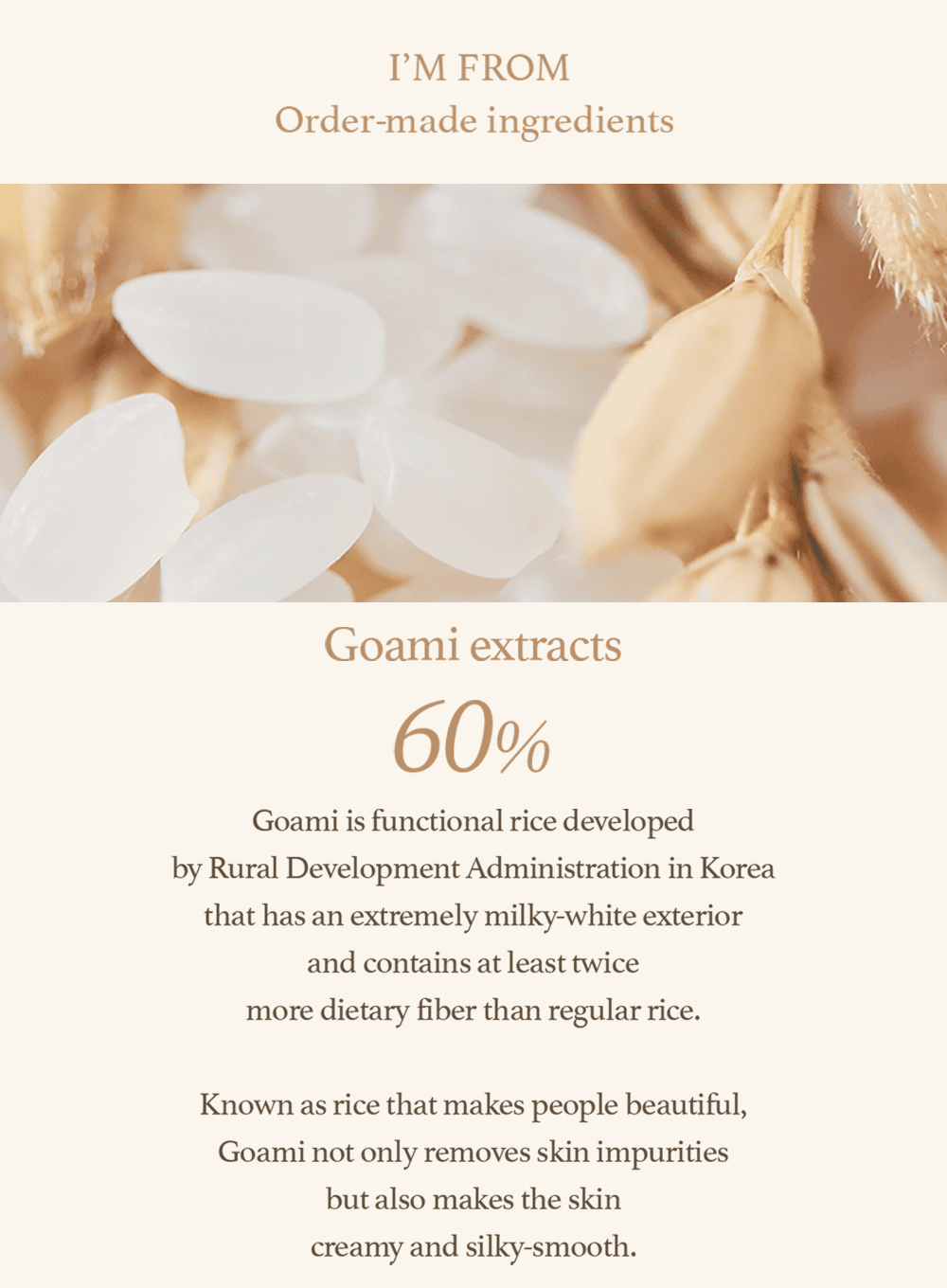 - Enriched with premium rice, rich in dietary fiber, amino acids, and gamma oryzanol, for smooth and glowing skin.