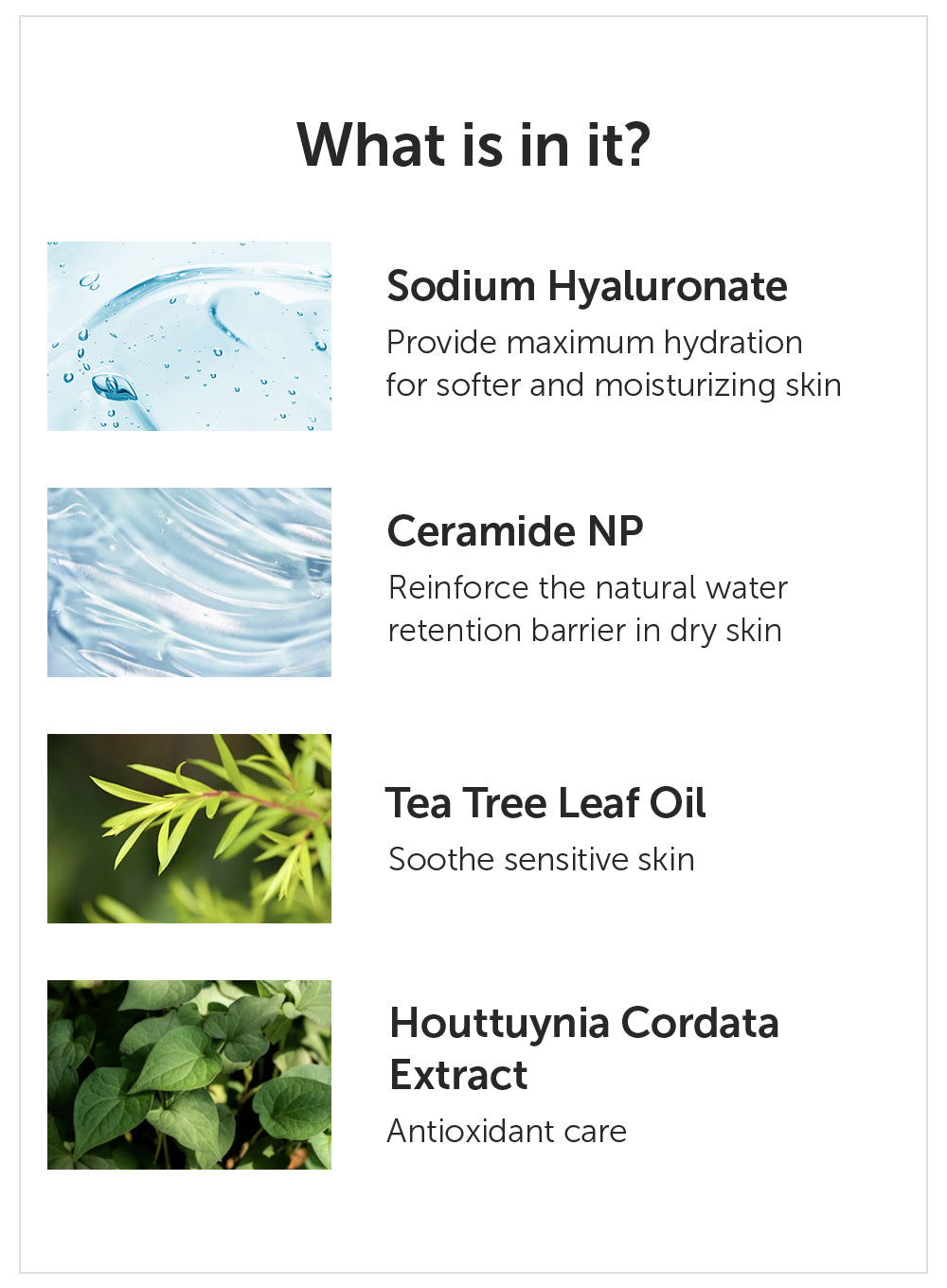 - Enriched with Glycerin, Panthenol, and Ceramide NP, it helps lock in moisture and nourish the skin.