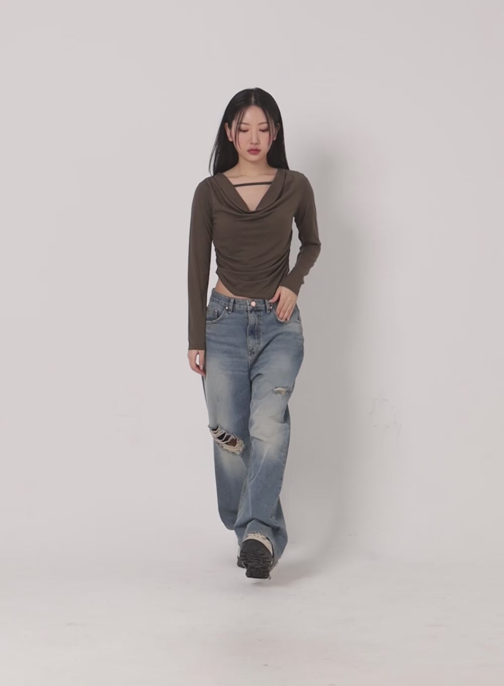 Ripped Washed Wide-Leg Jeans CJ426