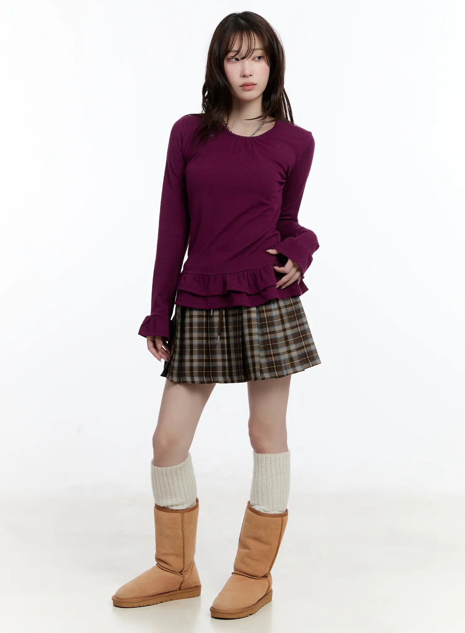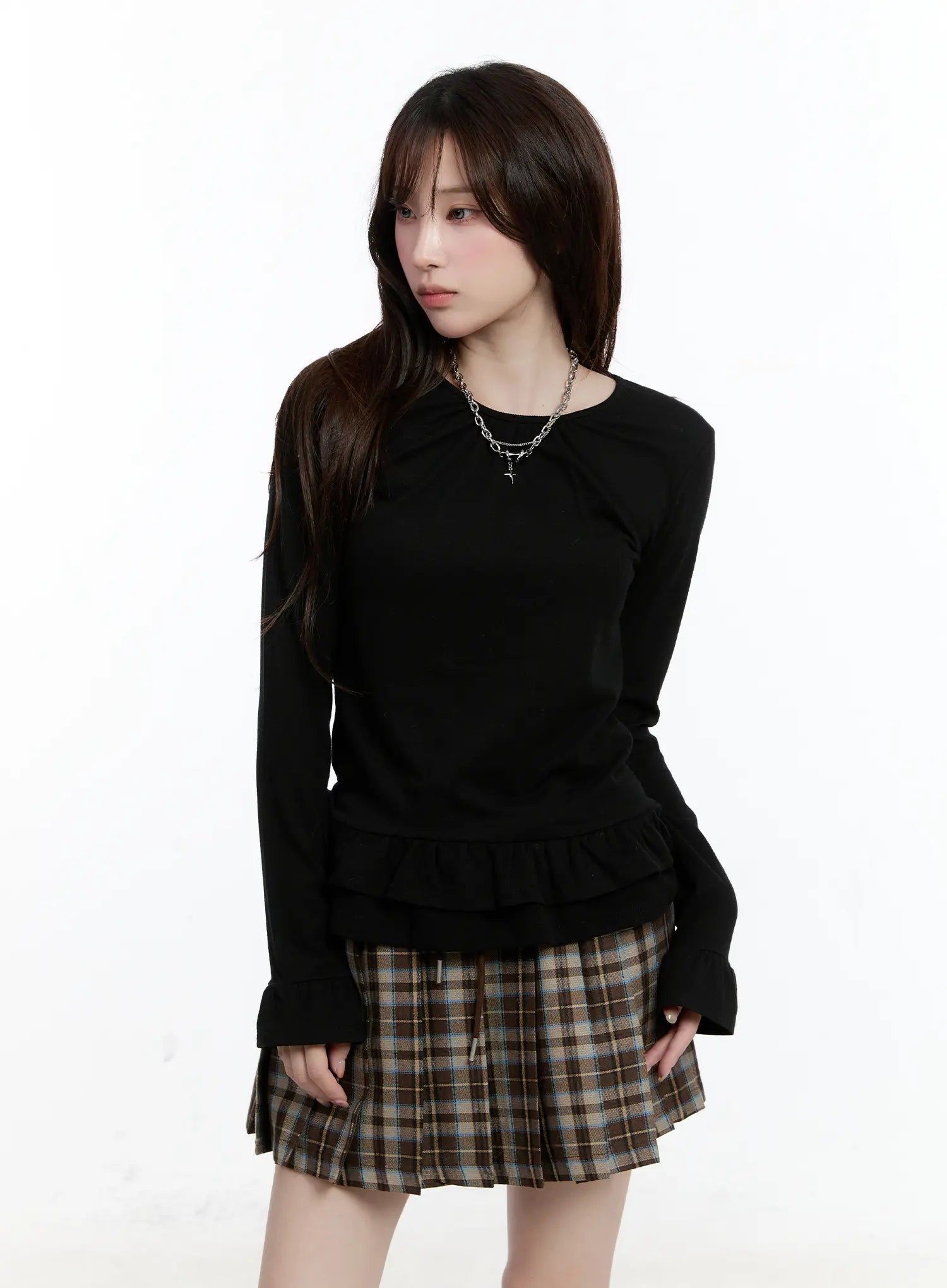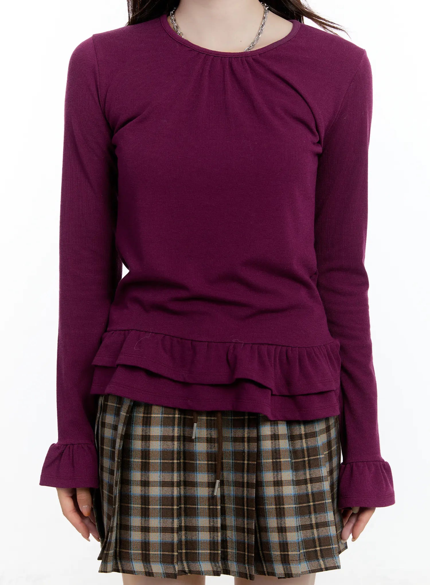 Ruffled Frill Hem U-Neck Blouse CN525