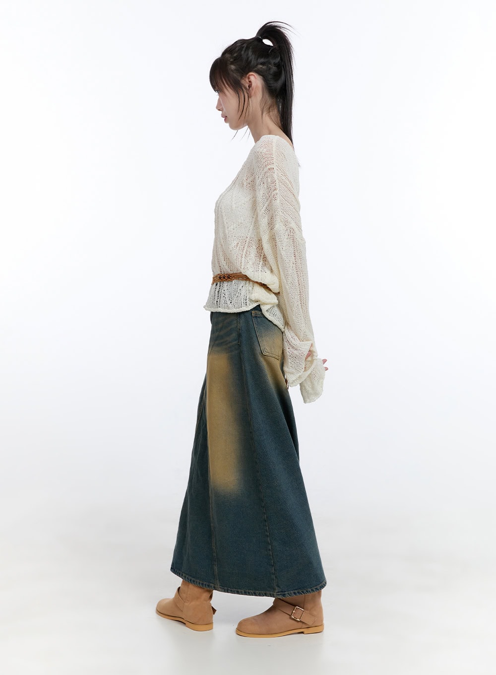 Model is wearing size S/M and the color Light beige.