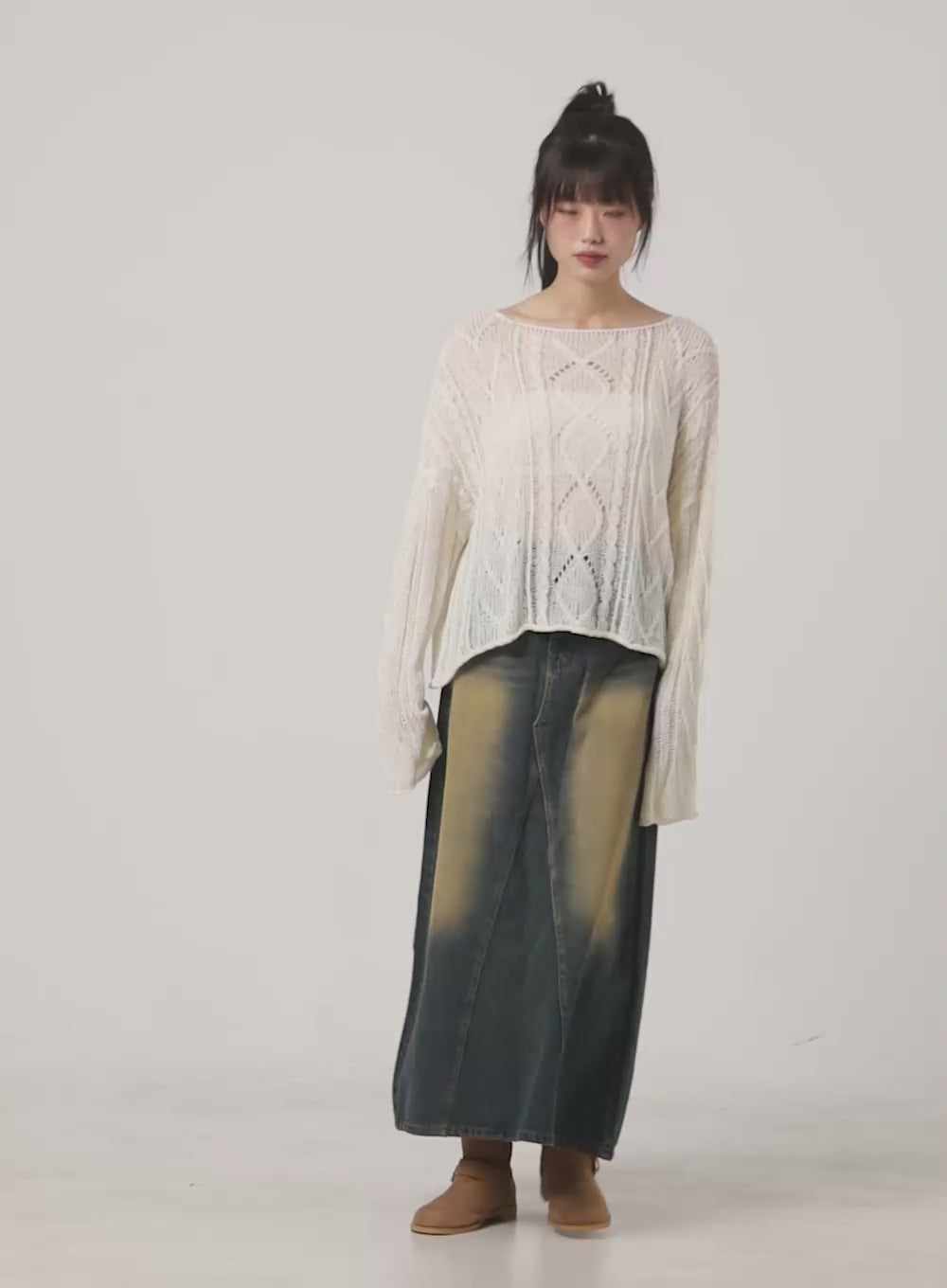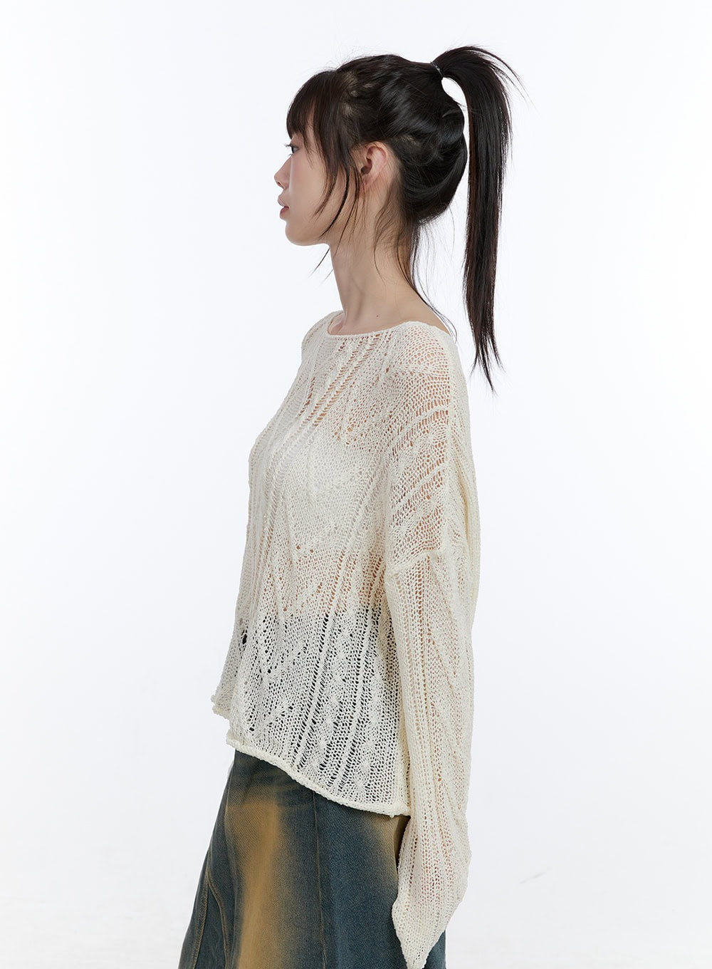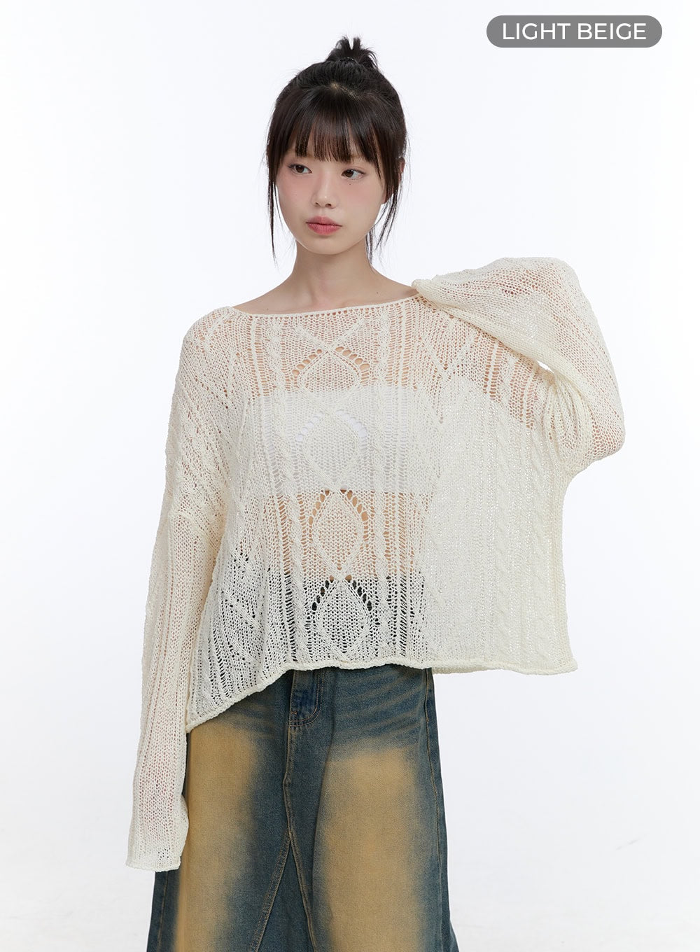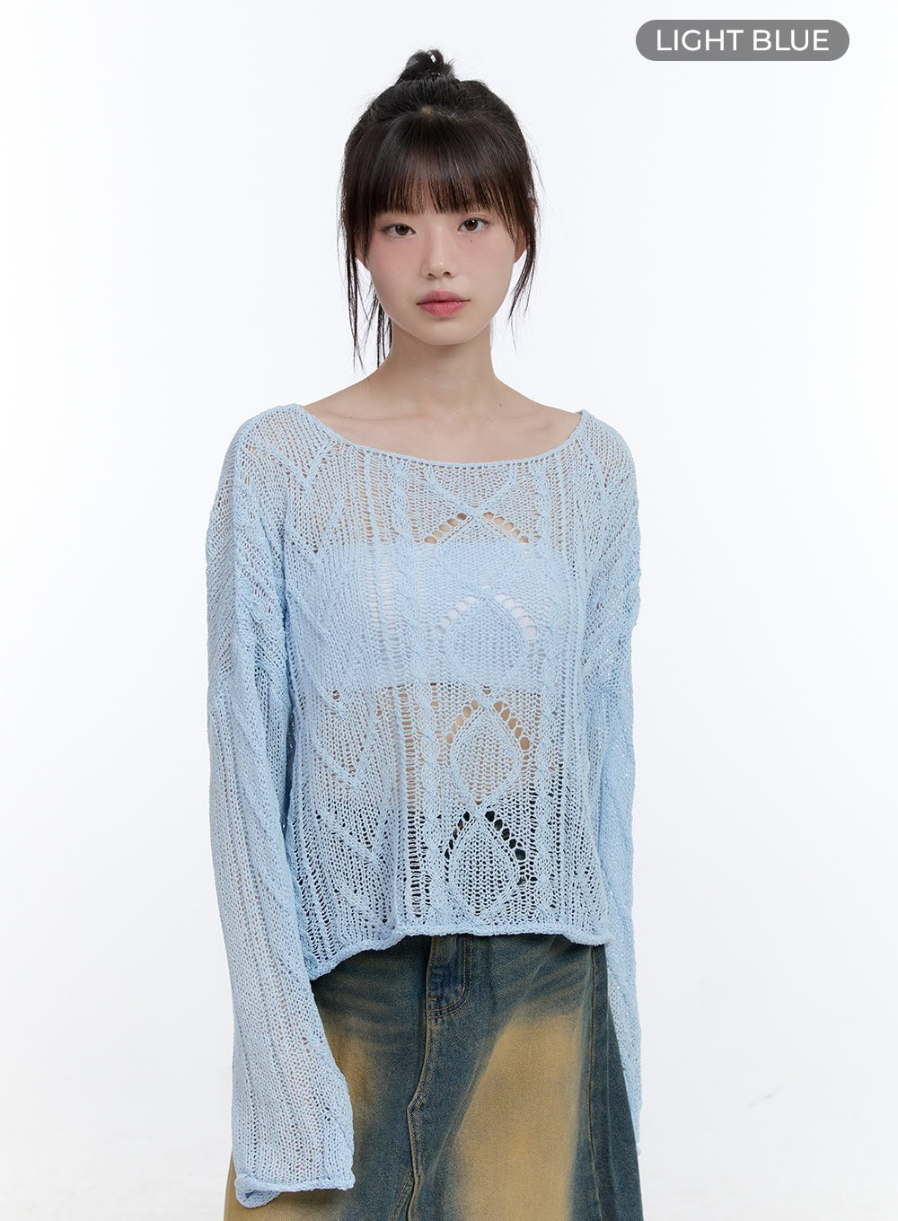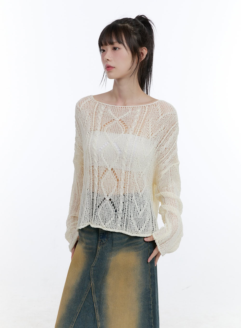 See-Through Knit Boat Neck Sweater CG413