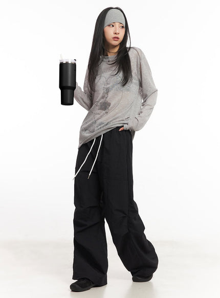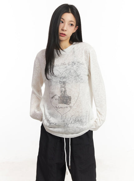 Sheer Art Graphic Long-Sleeve Top CA504