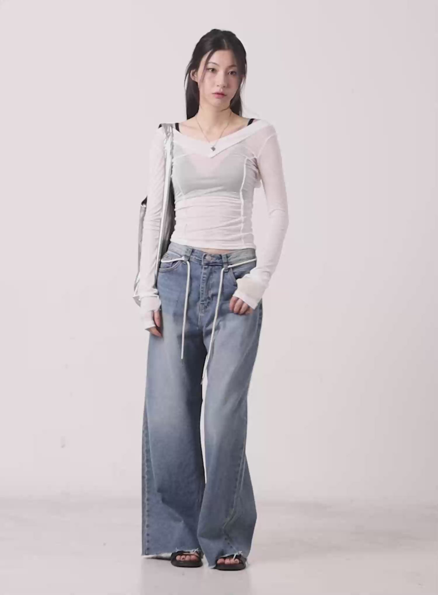 Sheer Back-Slit Long-Sleeve Tee CU530
