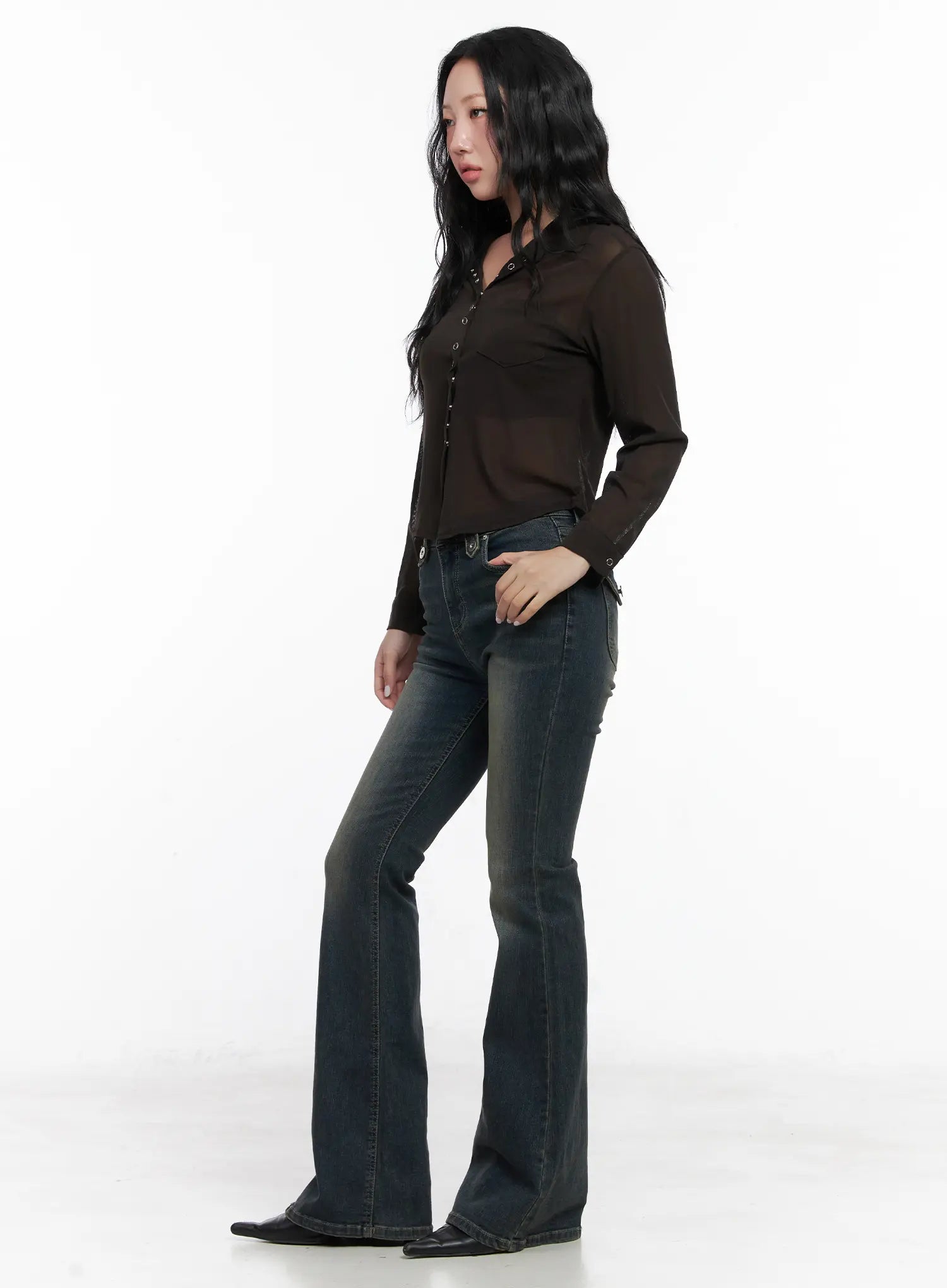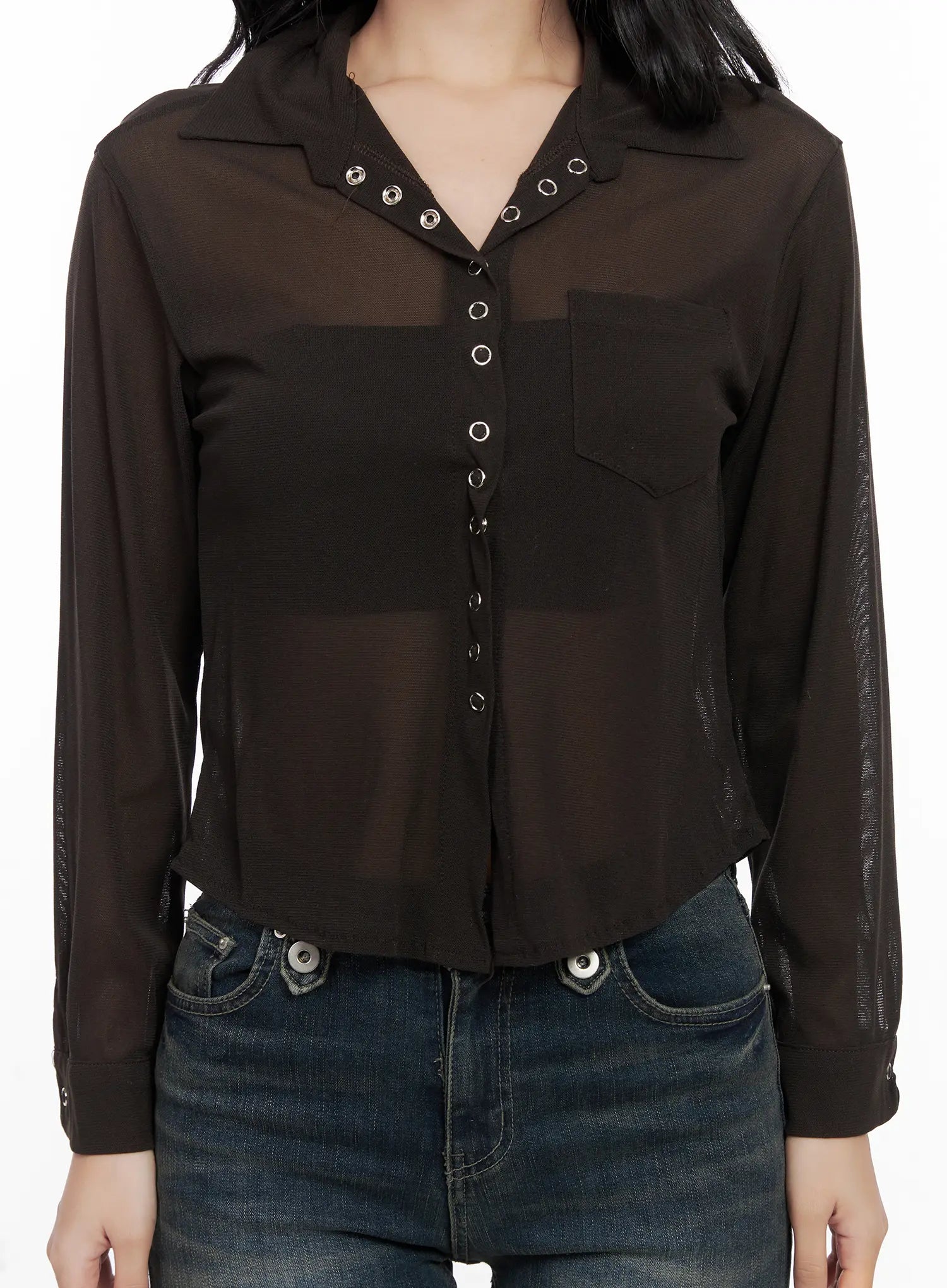 Sheer Button-Up Collar Blouse CN514