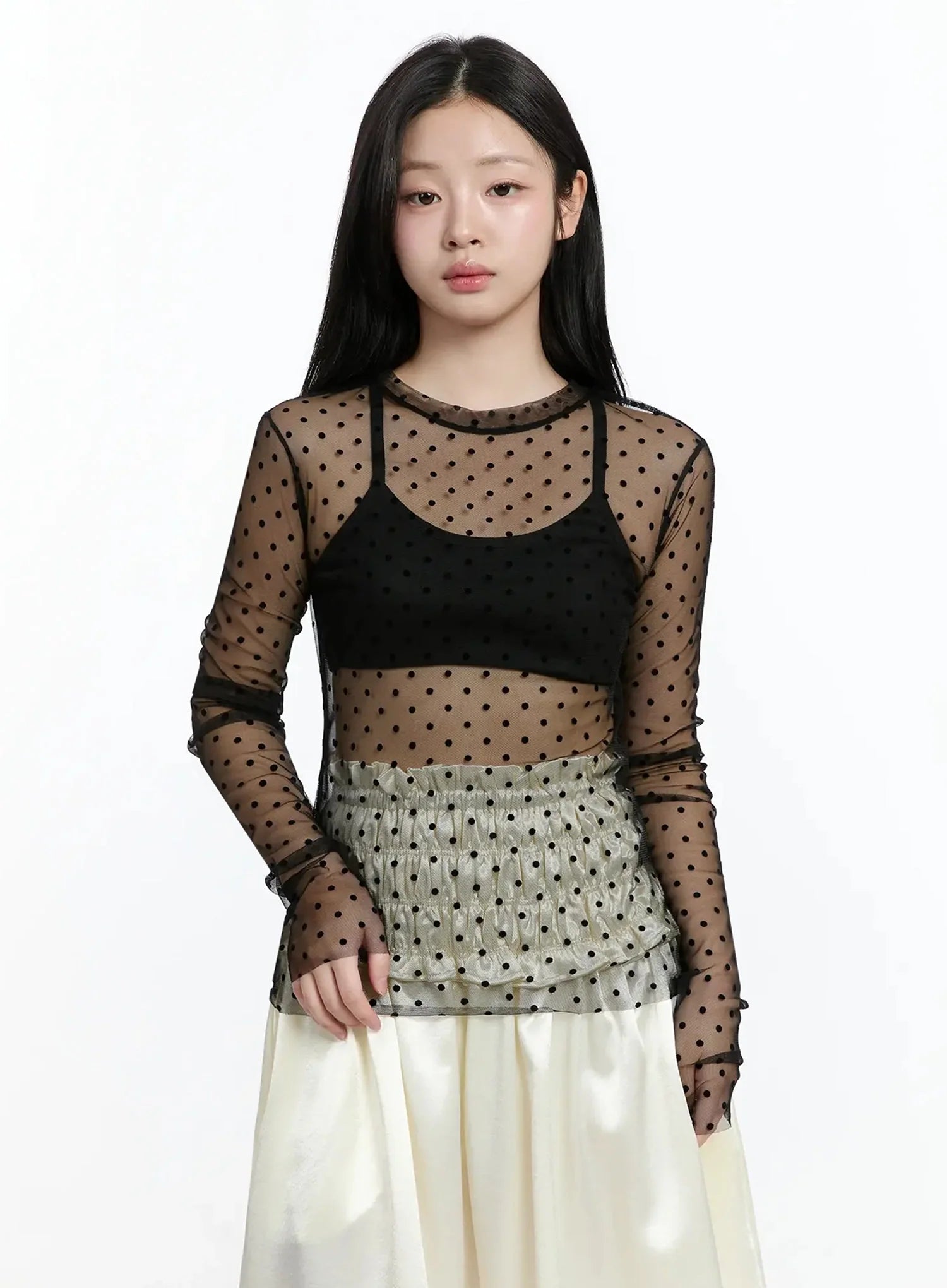 Sheer Polka Dot Long Sleeve Top IM519