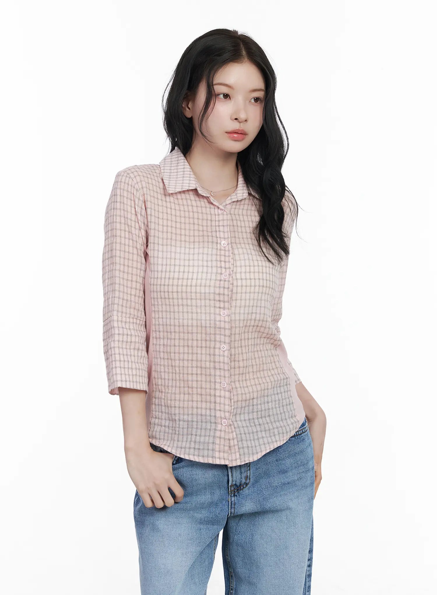 Slim Fit Checkered 3/4 Sleeve Shirt CA510