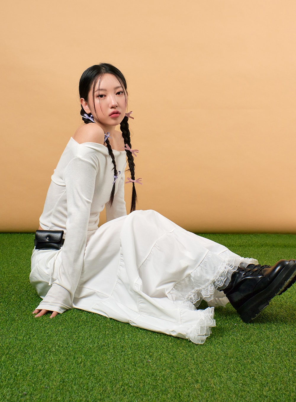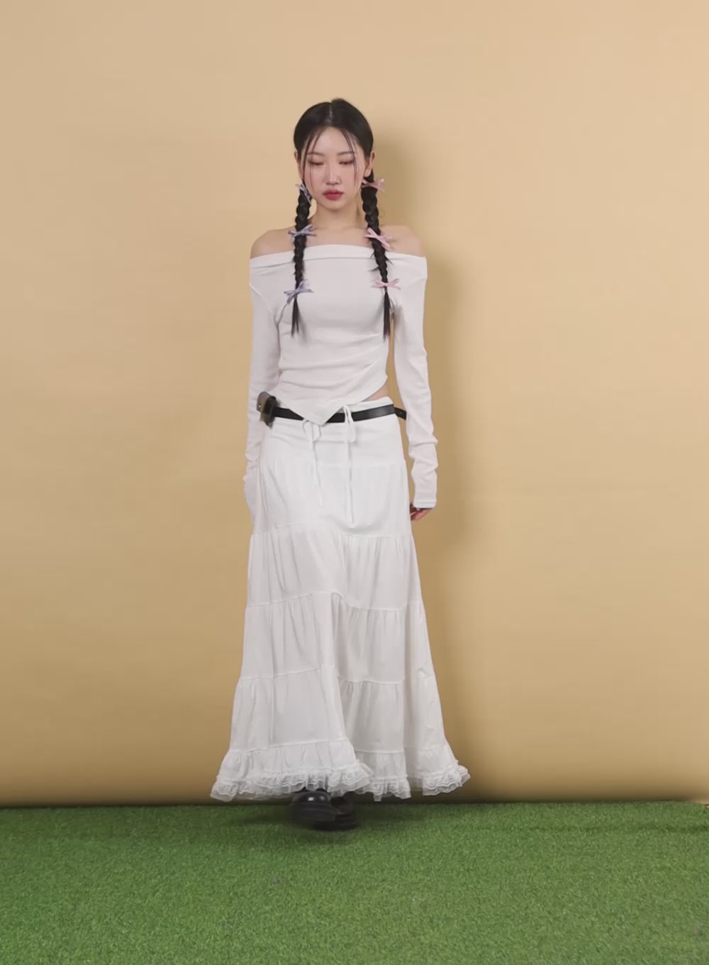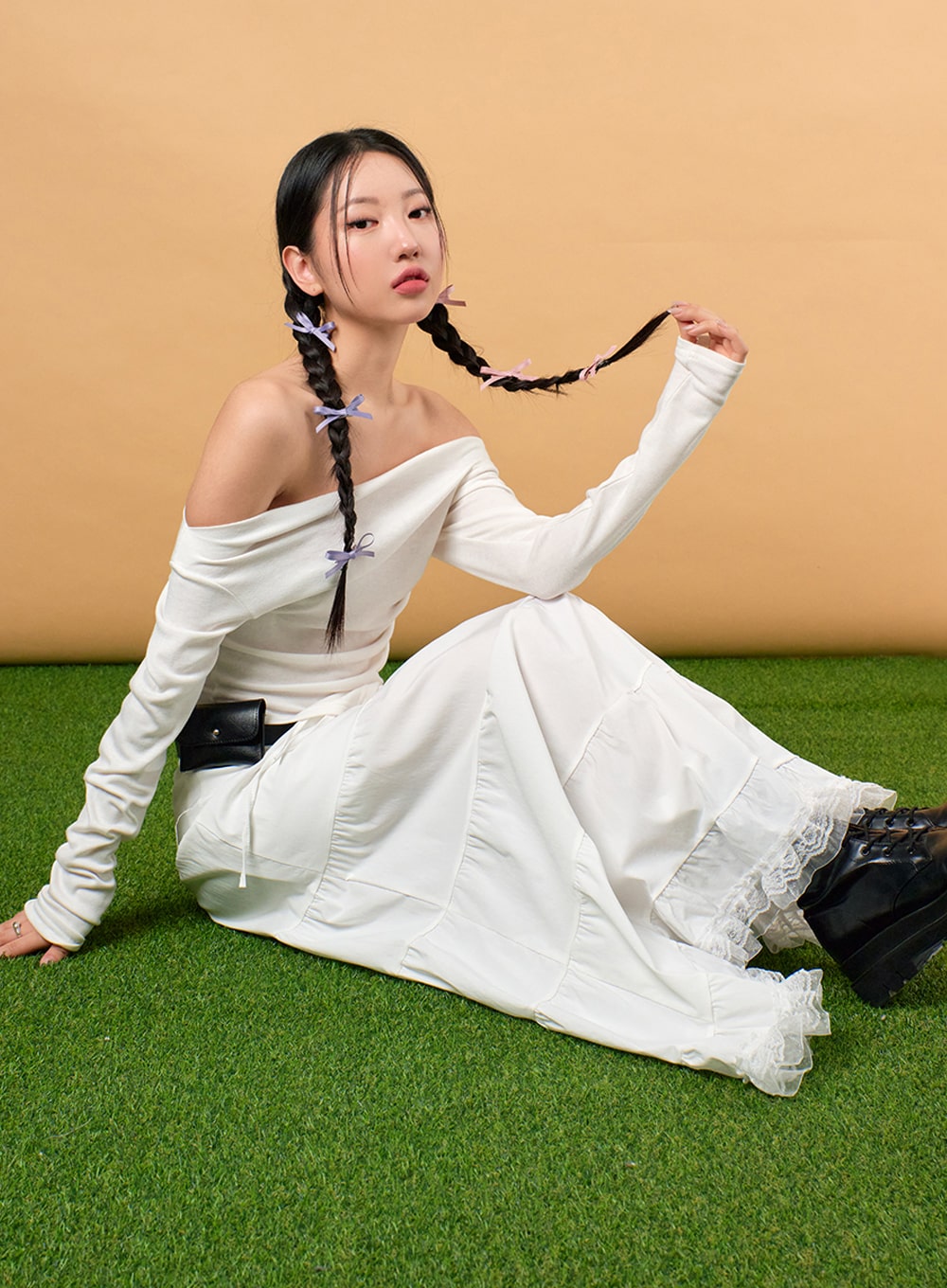 Solid Off-Shoulder Long Sleeve Top IJ430