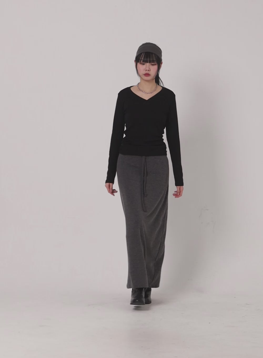 Solid V-Neck Long Sleeve IF402