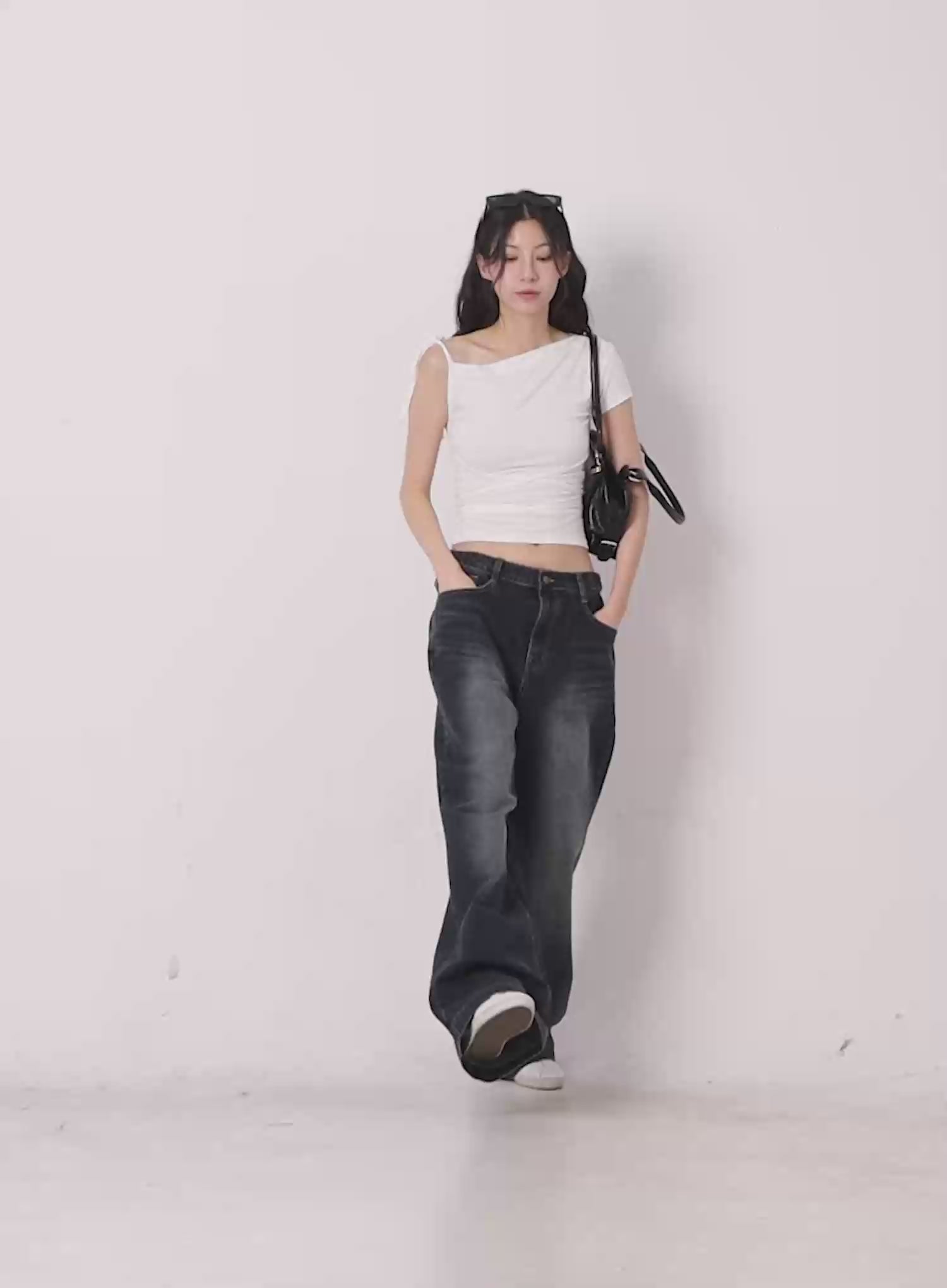 Soyoung Washed Adjustable Wide-Leg Jeans IG508
