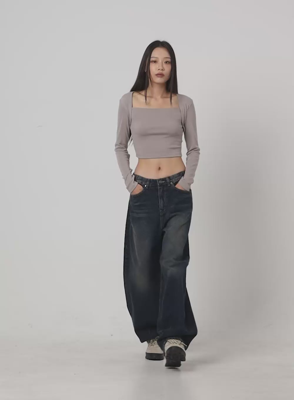 Square Neck Bolero-Style Slim Fit Crop Top IS427