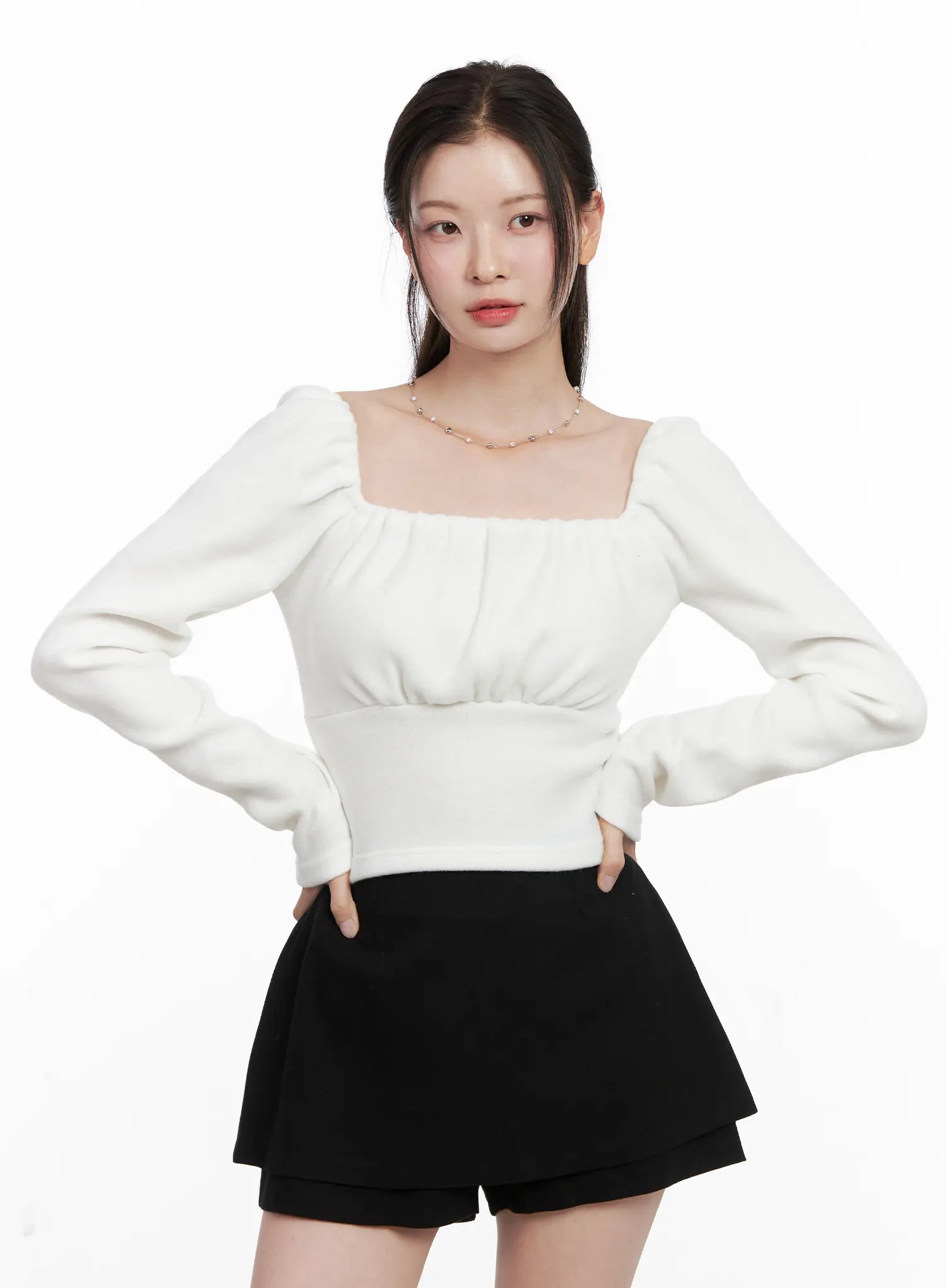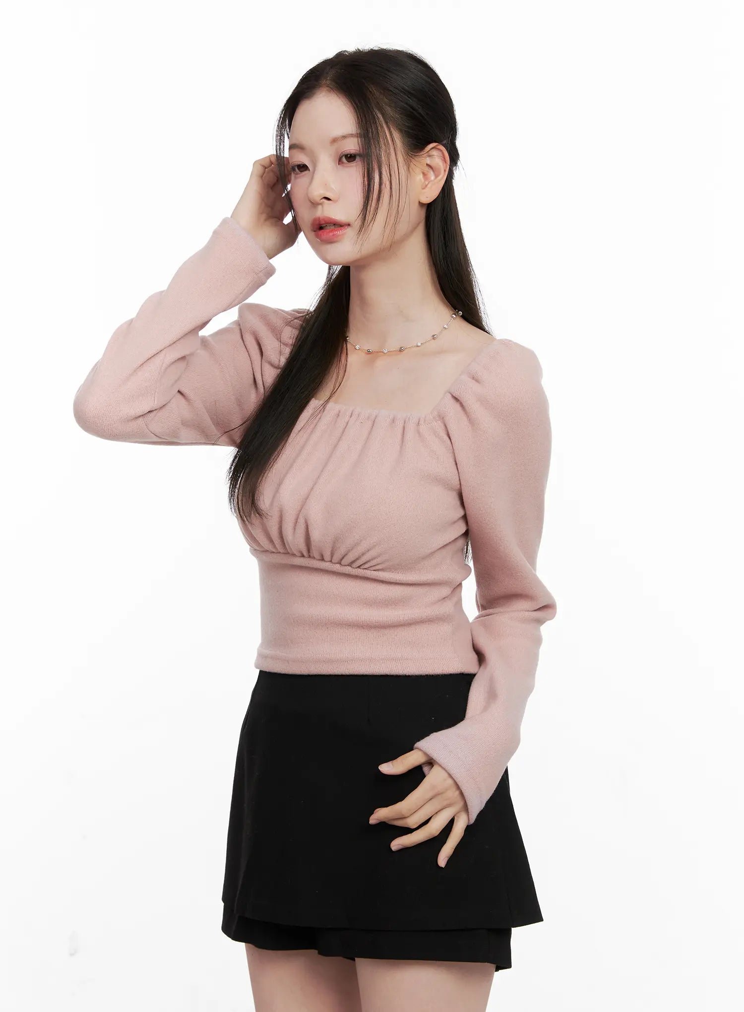 Square Neck Shirred Long Sleeve Top CN504