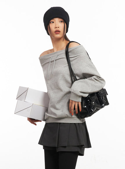 Stringed Off-Shoulder Sweatshirt IA504