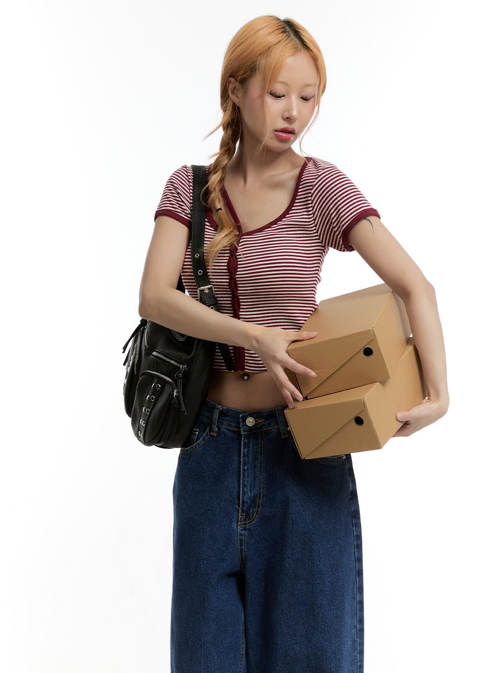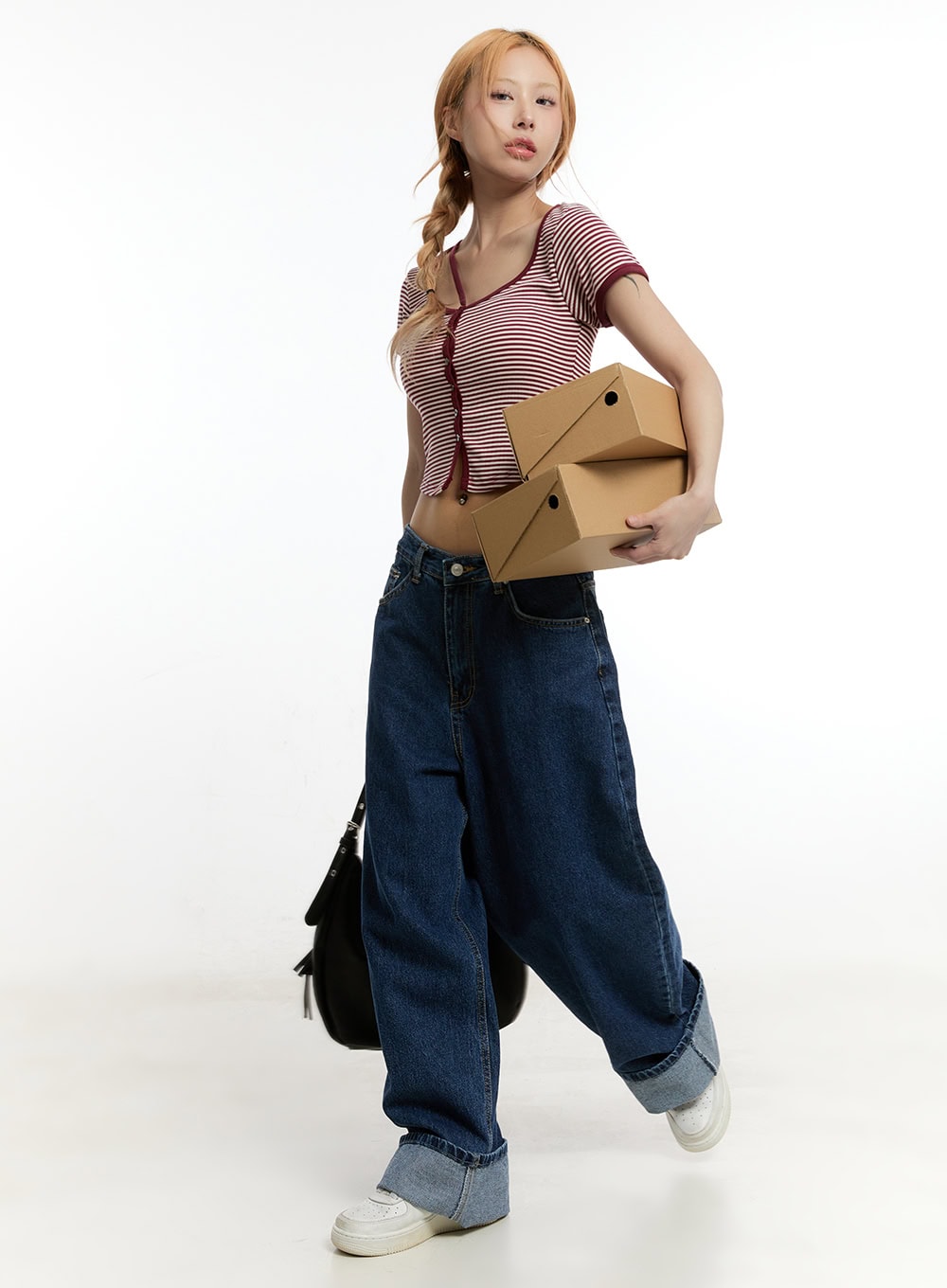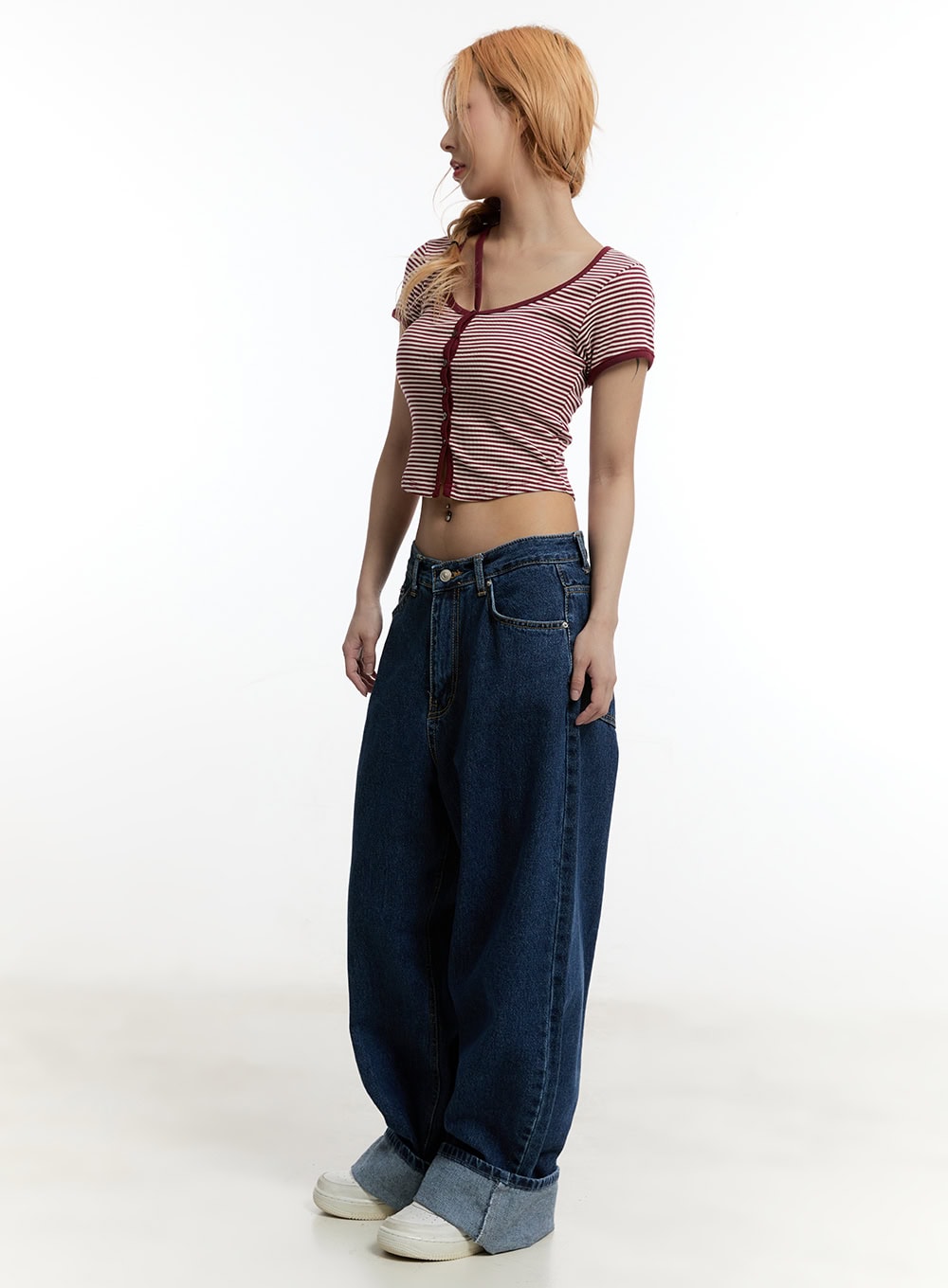Stripe Buttoned Crop Top CY501