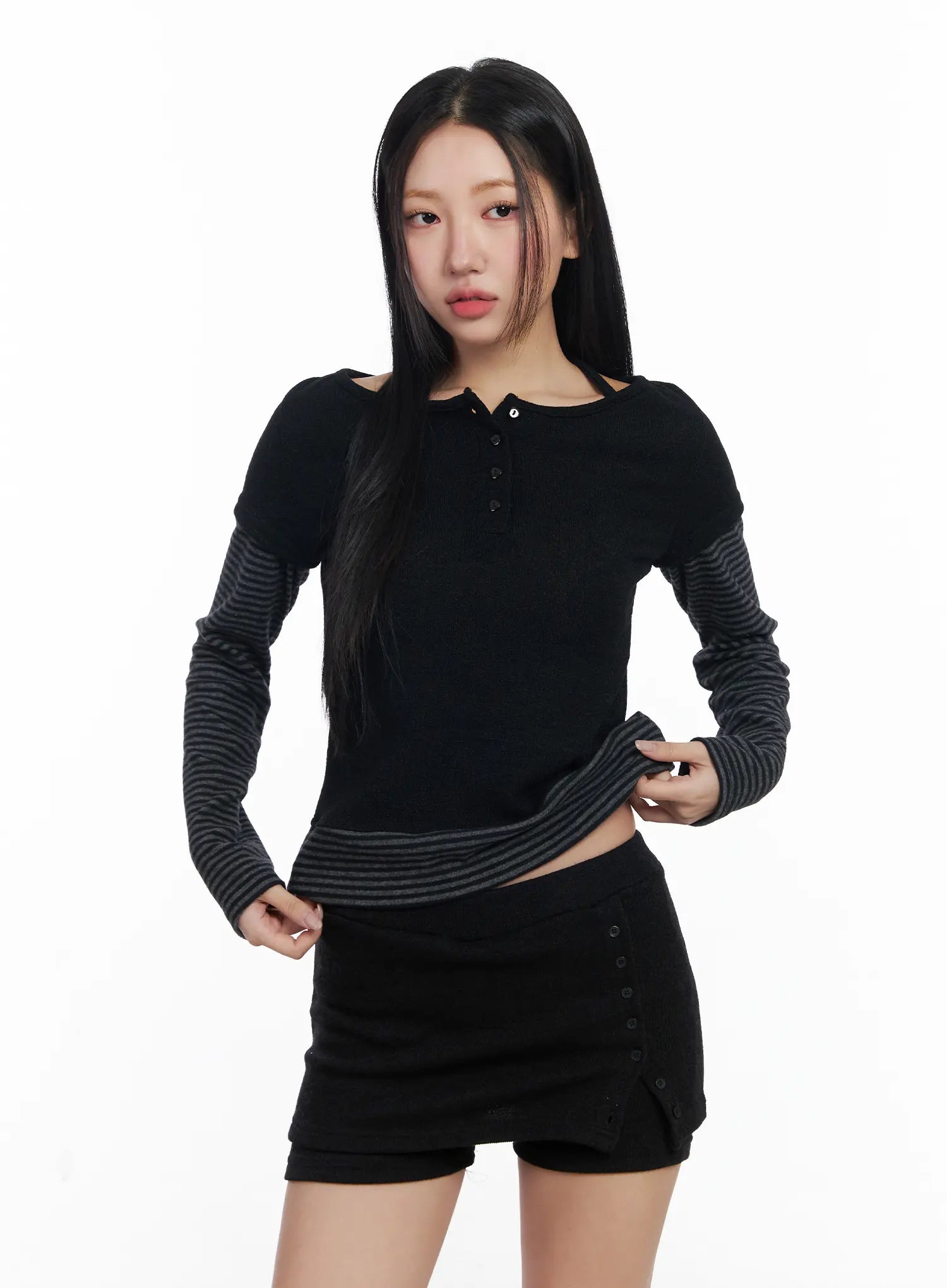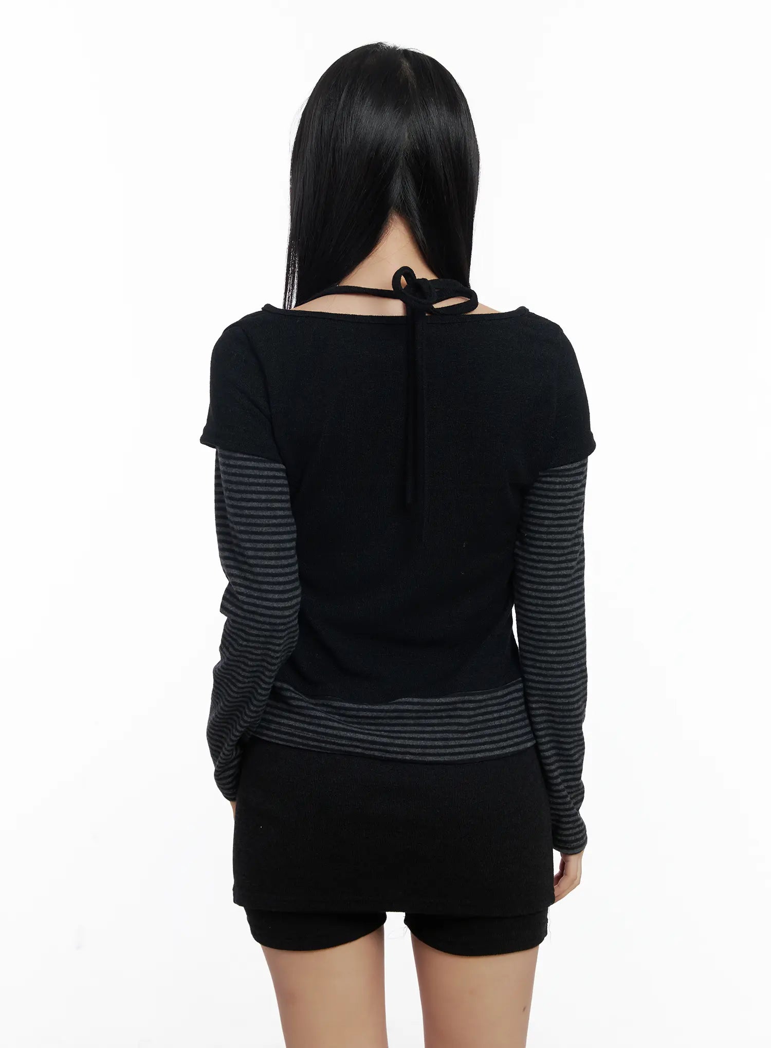 Stripe Contrast Layered Long Sleeve Top CJ514